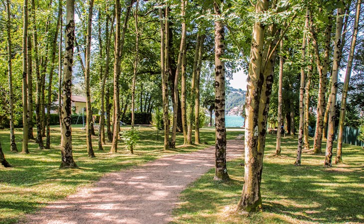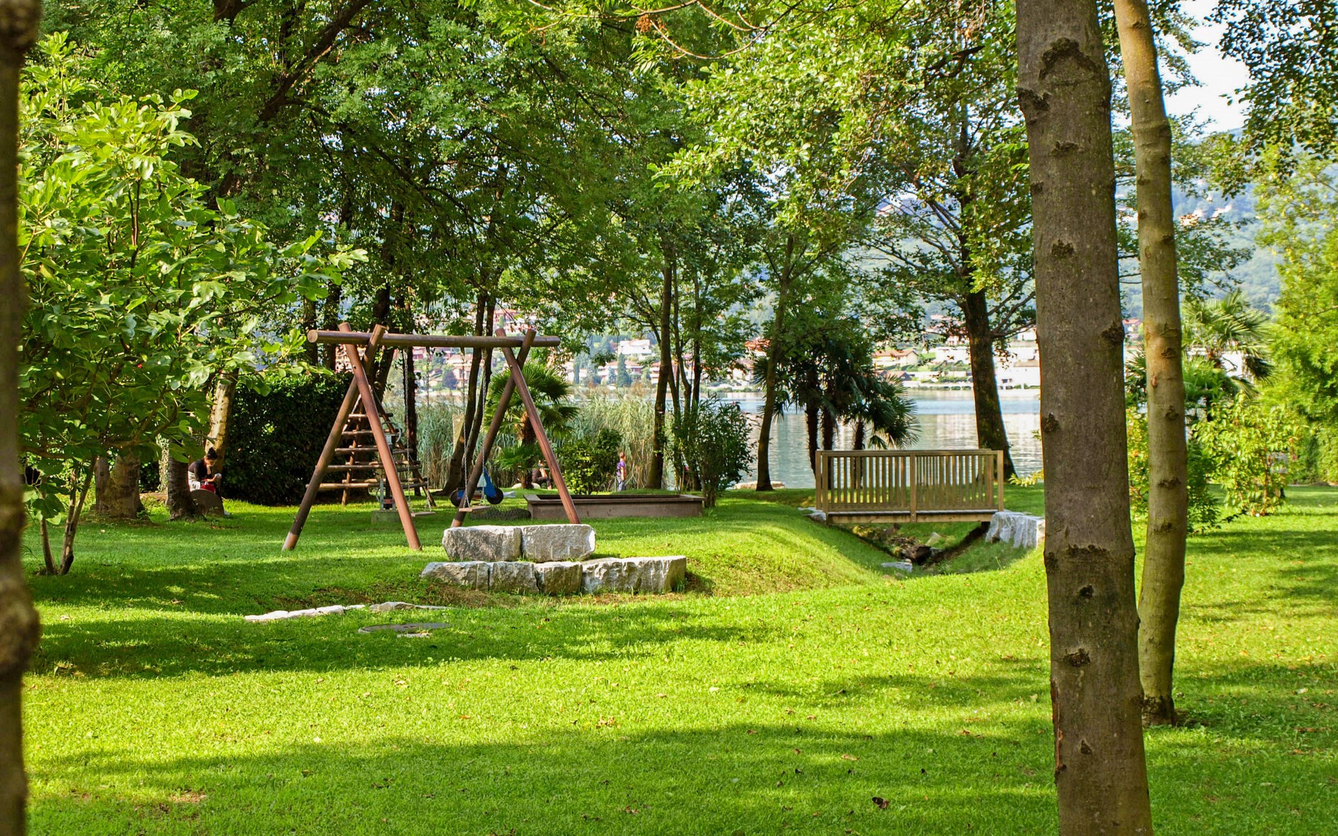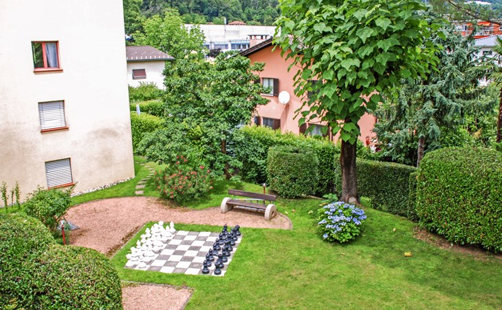 Caslano 8 km from Lugano: Residence "Parcolago (Utoring)", surrounded by trees. In the resort, 1 km from the centre, in a quiet, sunny position, 50 m from the lake, road to cross. For shared use: park, lawn for sunbathing. Table tennis. In the house: restaurant, central heating system, washing machine (extra), tumble dryer (for shared use, extra). Motor access to the house. Parking, communal covered parking at the house. Shop 700 m, restaurant 10 m, 15 minute walk to the centre, lake Lago di Lugano. Golf course 3 km, tennis 500 m, minigolf 3 km, walking paths from the house 10 m. Nearby attractions: Mercato di Ponte Tresa (IT), Mercato di Luino (IT), Zoo, Magliaso, Swissminmiatur, Melide, Schokoladenfabrik, Caslano, Outlet Foxtown, Mendrisio. Well-known lakes can easily be reached: Lago di Como, Lago Maggiore. Hiking paths: Monte di Calsano, Alto Malcantone, Monte Lema - Monte Tamaro. The holiday residence has direct access to the lake and is only separated from the lake by a street. Playground and garden chess. Comfortably and modernly furnished apartments. Depending on the apartment, 1 indoor or outdoor parking space is included in the rental price (note: garage entrance is only 1.80 m high!).