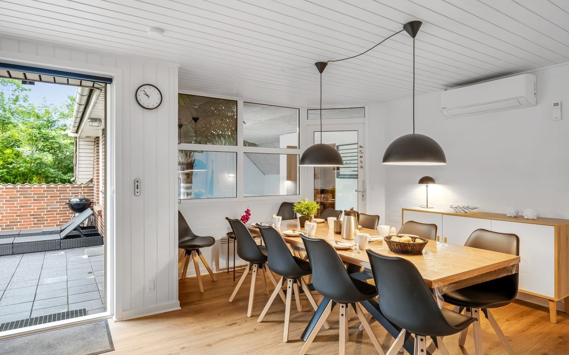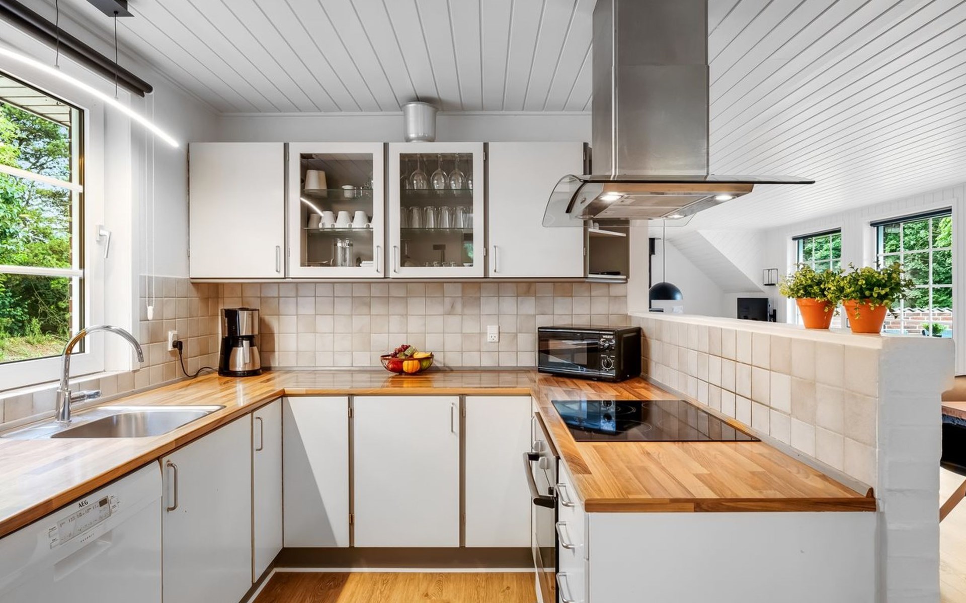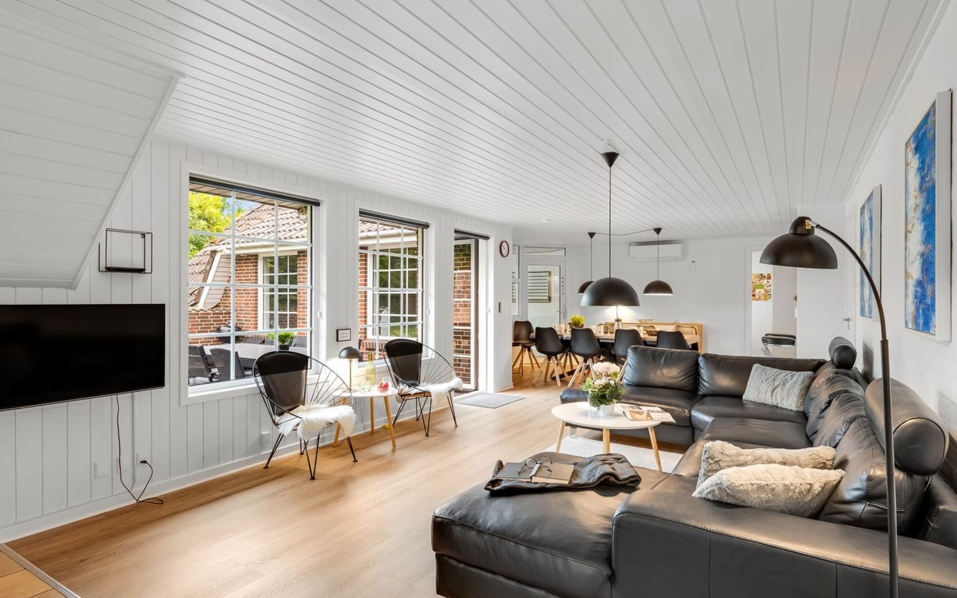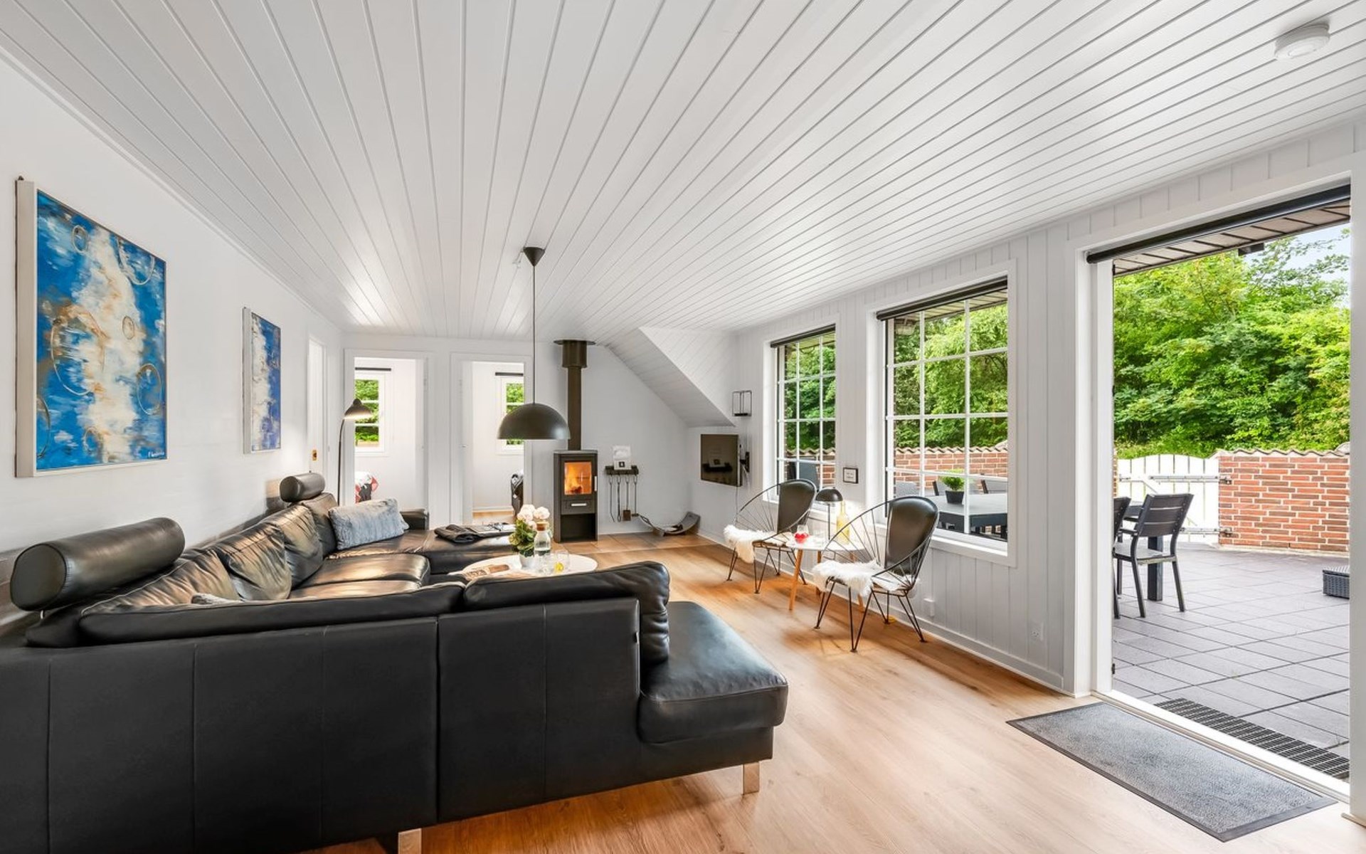 Single-family house, built in 1992. 10.5 km from the sea. Private: natural state property 1'567 m2, indoor pool (4 x 5 m, 2'3.6 m2, depth 130 - 130 cm). Terrace (50 m2), fireplace, children's playground (swing). In the house: sauna, washing machine, tumble dryer. Parking at the house. Carport. E-charging station. Grocery 500 m. The owner does not accept any youth groups.