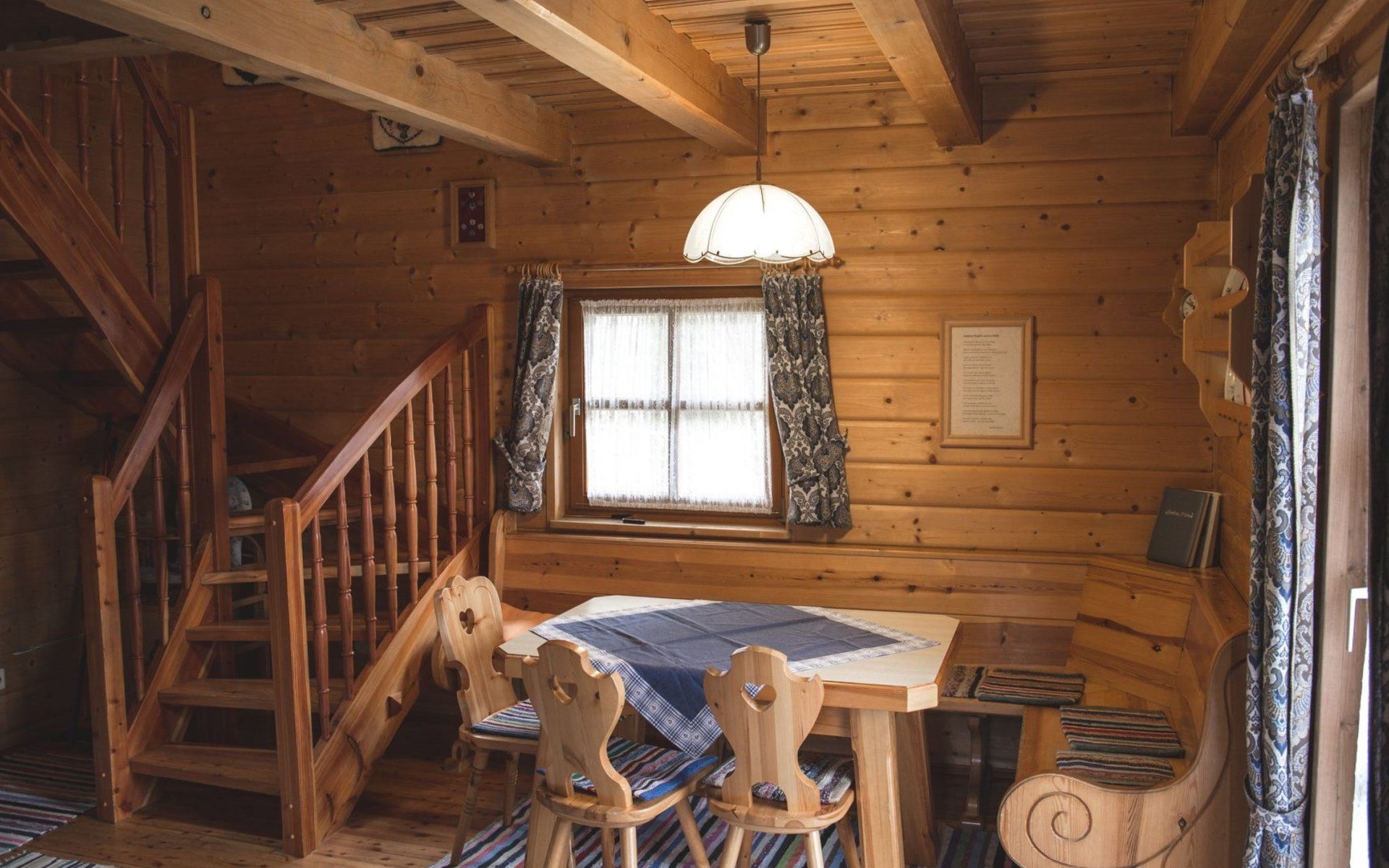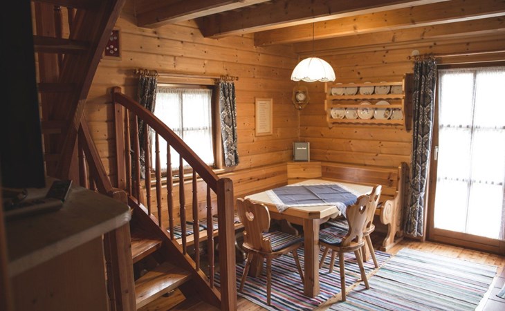 The Stoakogl hut is a stylish wooden hut on the edge of a quiet hut settlement. It offers space for 6 people. The hut is furnished with: