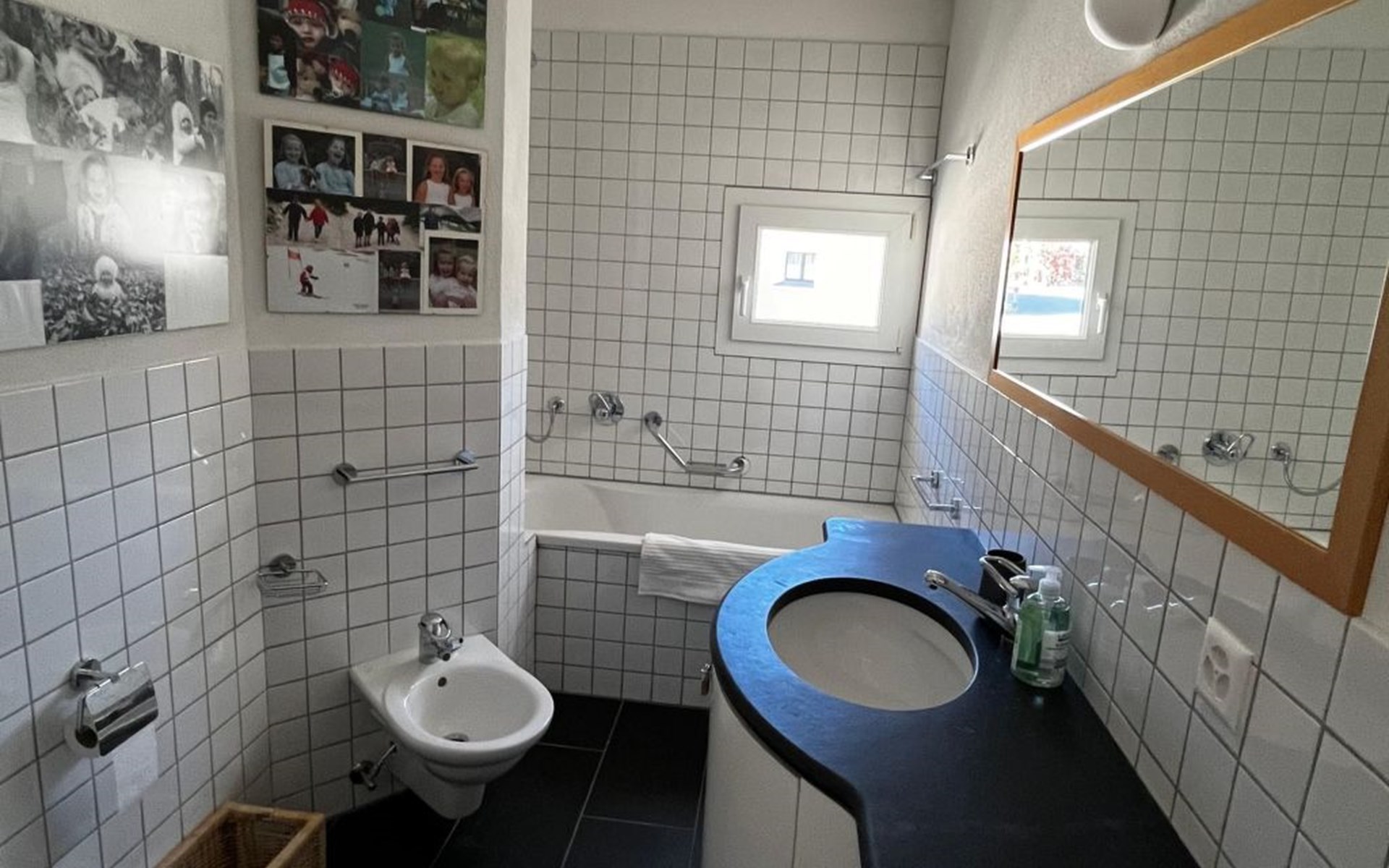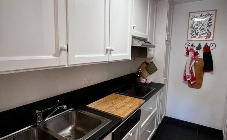 Inside, the home boasts four well-appointed bedrooms and three bathrooms, ensuring ample space and privacy for all guests. Comfort is paramount, with underfloor heating available throughout the residence, creating a warm and inviting atmosphere. The living space is enhanced by modern amenities including a smart TV, an induction hob, a capsule coffee machine, and a dishwasher. Bathrooms are equipped with both a shower and a bath tub with a shower to cater to different preferences, while a washing machine and clothes dryer are available for communal use in the building, ensuring all the comforts of home are at your fingertips.