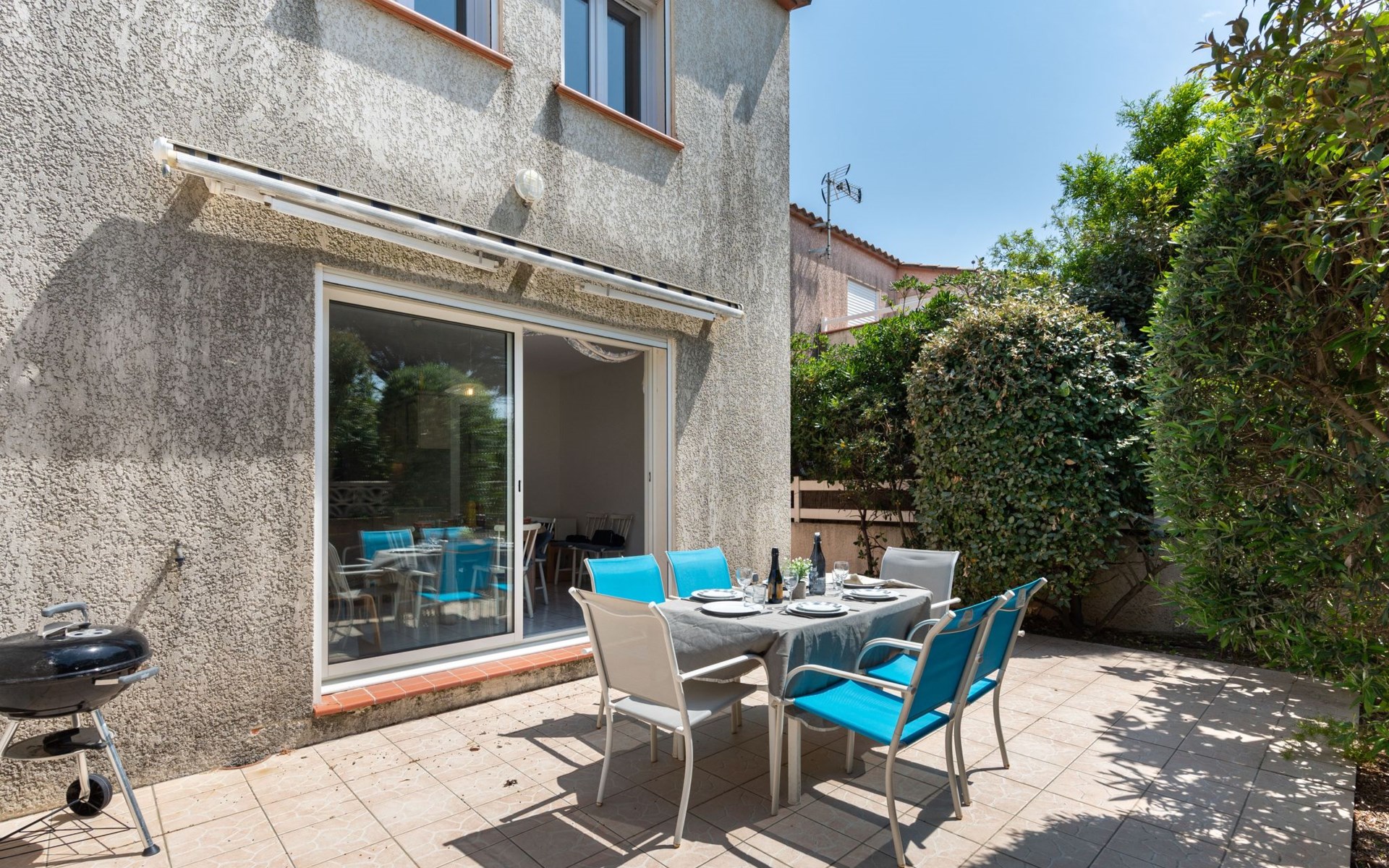Canet Plage: Terraced house "Villa Cassin", 2 storeys. In the district of Canet sud, in a quiet position in the residential district, 100 m from the sea, 100 m from the beach. Shop, grocery, supermarket 300 m, shopping centre 8 km, restaurant, bar 300 m, bakery 300 m, bus stop "Canet Sud" 100 m, railway station "Perpignan" 12 km, sandy beach 100 m, park "Aqualand St Cyprien" 10 km, diving center 18 km, outdoor swimming pool 3 km, indoor swimming pool 3 km, lake Etang de Canet 1 km. Sports harbour 5 km, golf course (18 hole) 8 km, sailing school 5 km, minigolf 3 km. Nearby attractions: Perpignan 12 km, Collioure 25 km, Banyuls 37 km, Espagne 35 km, Andorre 180 km, Barcelone 200 km. Well-known lakes can easily be reached: Lac de Villeneuve de La Raho 19 km, Lac de St Jean Pla de Corts 39 km, Gorges du Gouleyrous 42 km. Hiking paths: Abbaye de St Martin du Canigou 70 km, Pic du Canigou 77 km, Lac des Bouillouses 105 km.