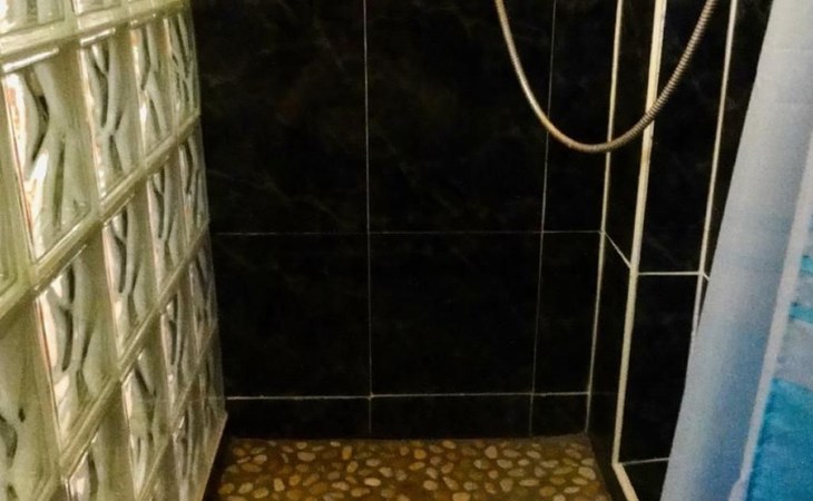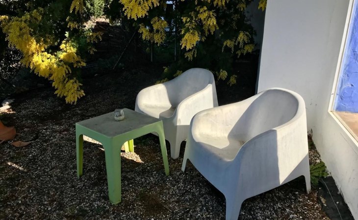 The swimming pool is located below the terrace, which is safe for children. You have priority for swimming. We only use the pool when there's no-one around.