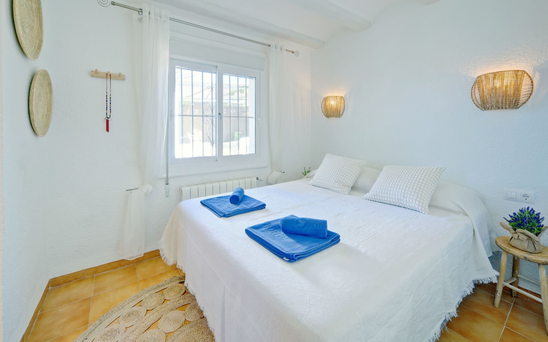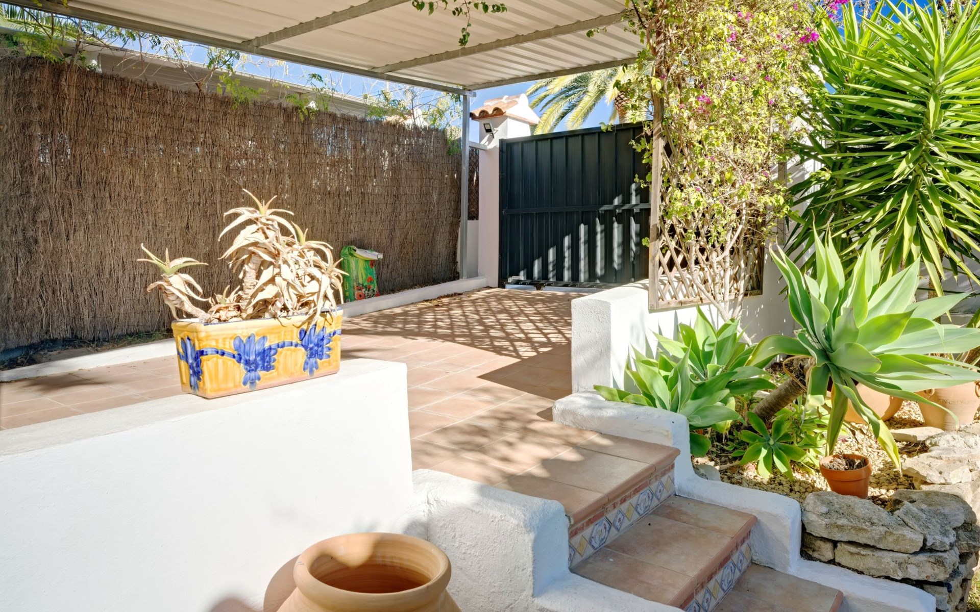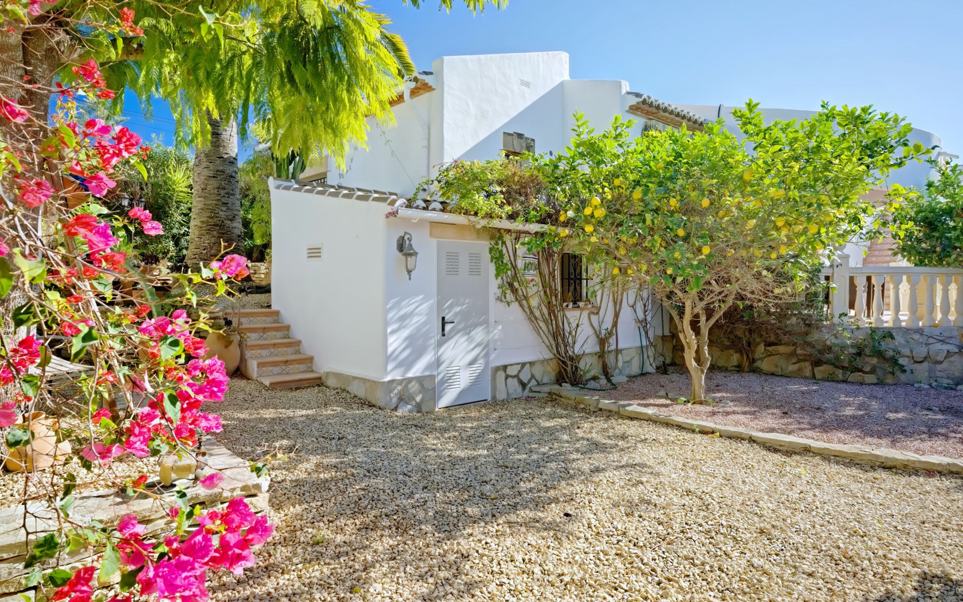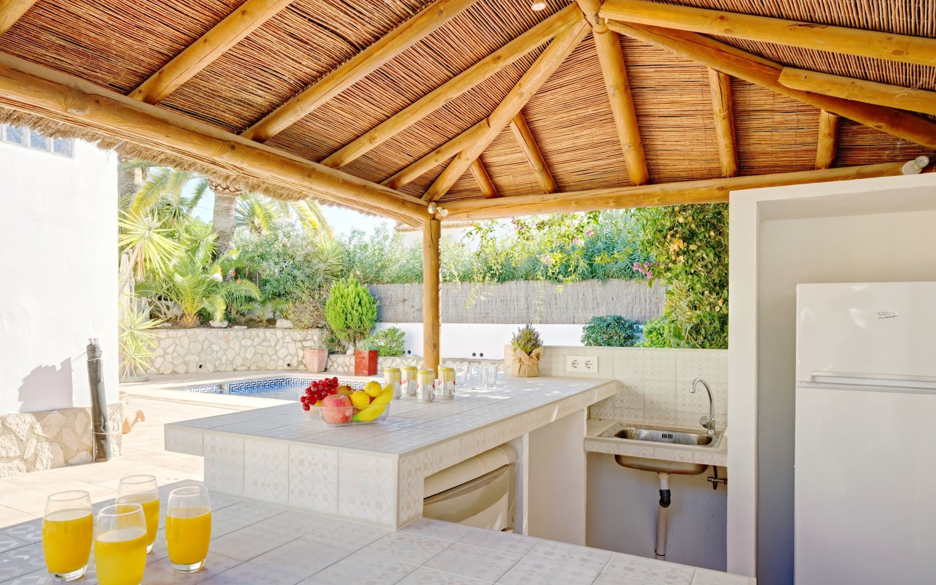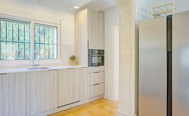 Very large, very beautiful, comfortable house "El Rinco de la Felicidad". In the district of Pinosol, in a quiet, sunny position, 2.4 km from the sea, 2.4 km from the beach. Private: swimming pool angular (8 x 4 m, depth 40 - 250 cm, seasonal availability: 01.Jan. - 31.Dec.) with internal staircase. Pergola, garden furniture, barbecue, roofed, parking. Supermarket 1.4 km, restaurant 350 m, bar 400 m, café 450 m, bus stop "Parada antiguo Mas y Mas" 1.8 km, sandy beach "El Arenal" 2.2 km, rocky beach "Cala Blanca" 3 km. Sports harbour 2.6 km, surf school 2.5 km, sailing school 2.6 km, tennis 2.5 km. The owner does not accept any youth groups.