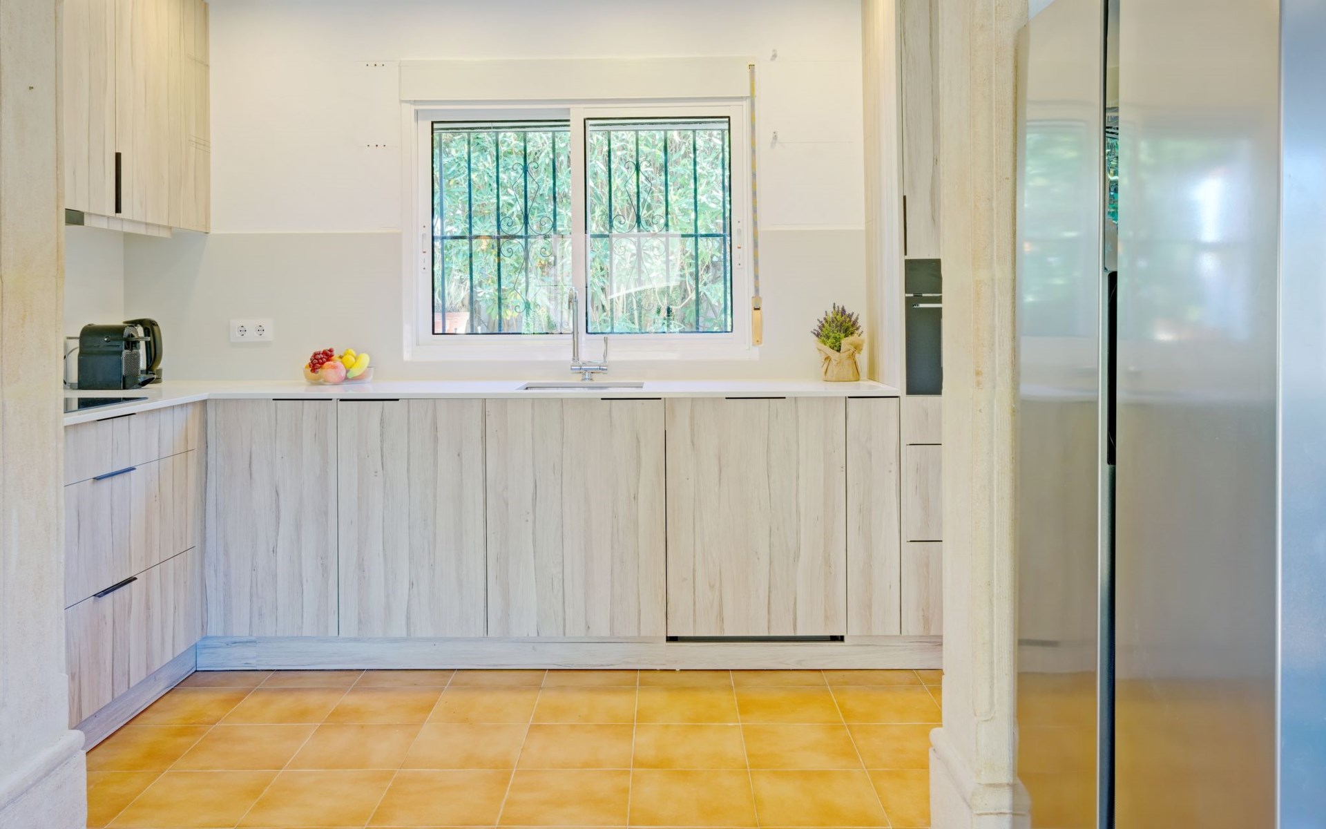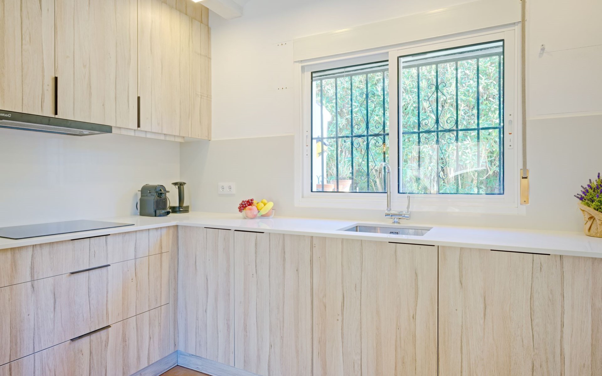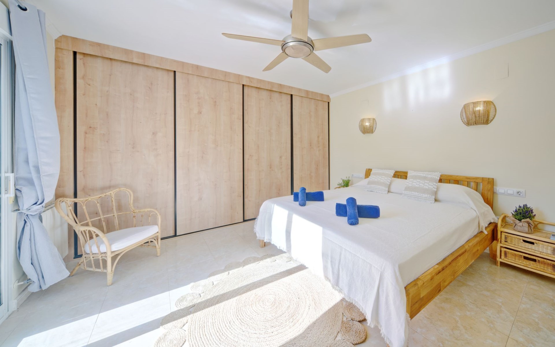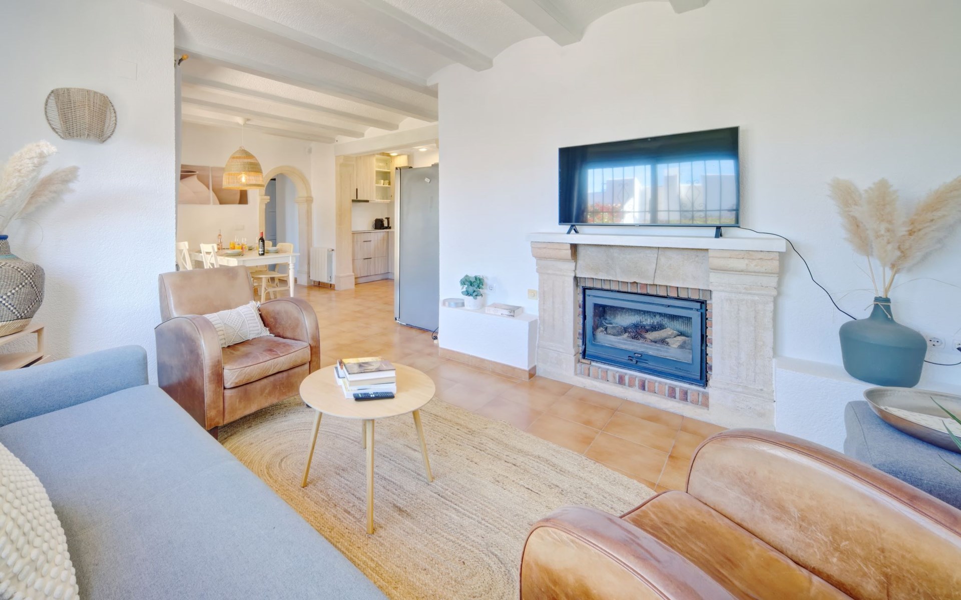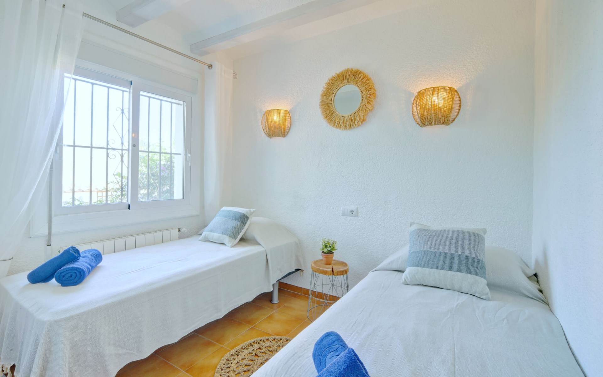 Very large, very beautiful, comfortable house "El Rinco de la Felicidad". In the district of Pinosol, in a quiet, sunny position, 2.4 km from the sea, 2.4 km from the beach. Private: swimming pool angular (8 x 4 m, depth 40 - 250 cm, seasonal availability: 01.Jan. - 31.Dec.) with internal staircase. Pergola, garden furniture, barbecue, roofed, parking. Supermarket 1.4 km, restaurant 350 m, bar 400 m, café 450 m, bus stop "Parada antiguo Mas y Mas" 1.8 km, sandy beach "El Arenal" 2.2 km, rocky beach "Cala Blanca" 3 km. Sports harbour 2.6 km, surf school 2.5 km, sailing school 2.6 km, tennis 2.5 km. The owner does not accept any youth groups.