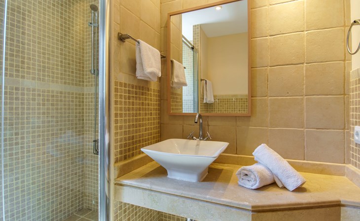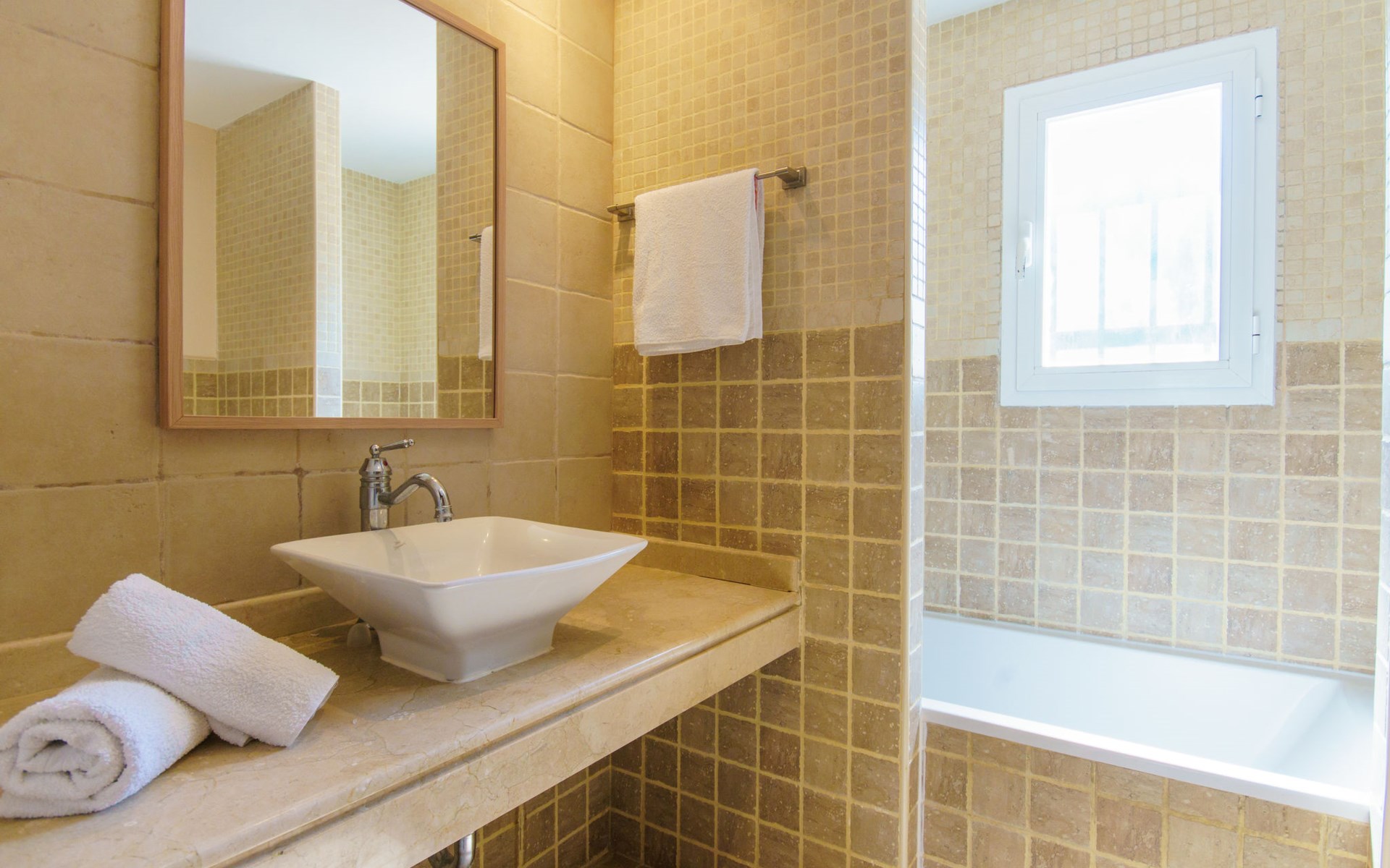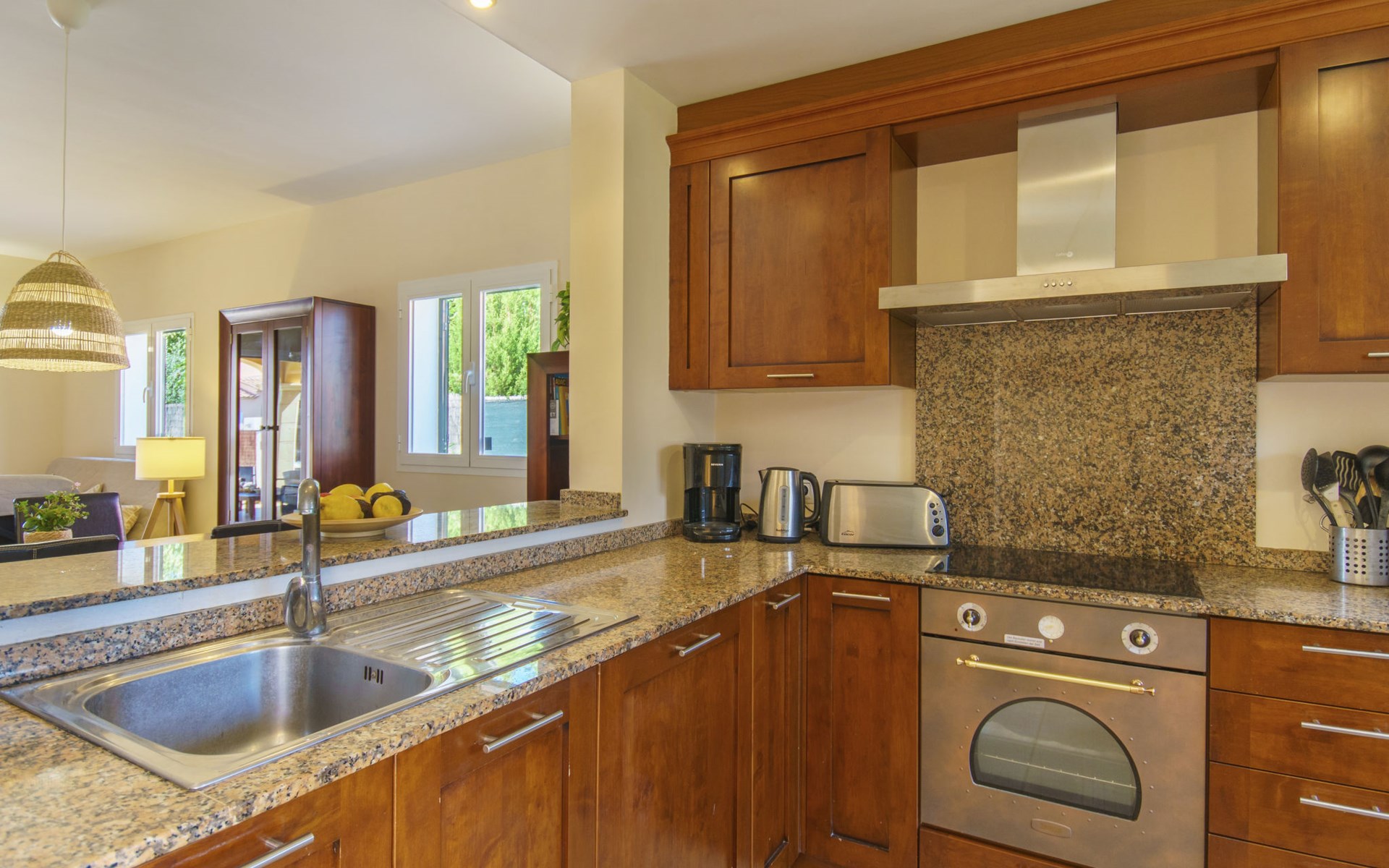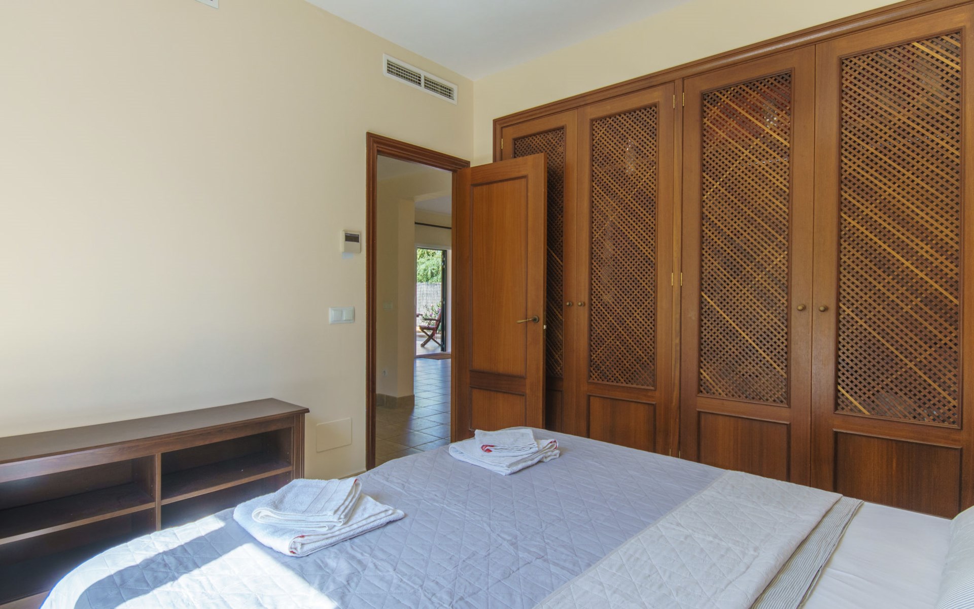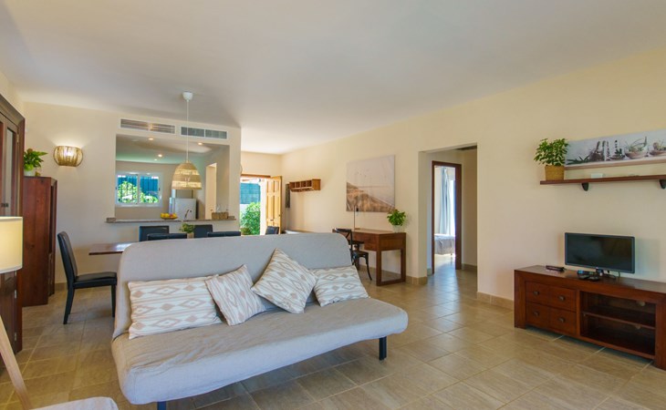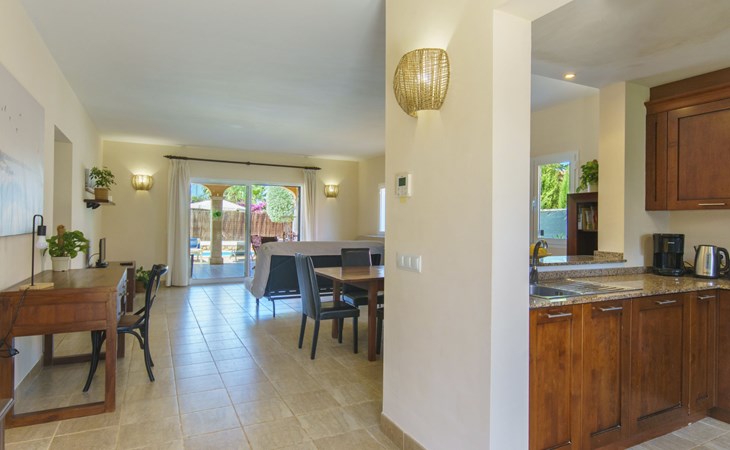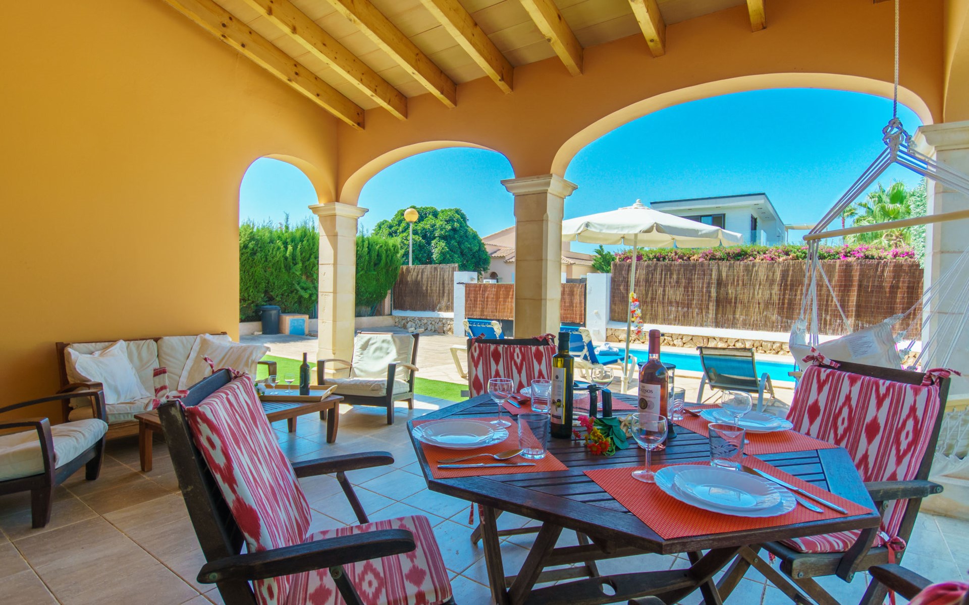 Dalt Sa Rapita 1 km from Sa Ràpita: Beautiful, cosy house "Frijoles", renovated in 2022. In the district of Dalt Sa Rapita 1 km from the centre of Sa Rápita, 12 km from the centre of Campos, 44 km from the centre of Palma, in the residential district, 1 km from the edge of the forest, 1.5 km from the sea, 1 km from the beach, south facing position. Private: property 500 m2 (fenced), swimming pool angular (5 x 2 m, seasonal availability: 01.Jan. - 31.Dec.). Outdoor shower, pool maintenance by the owner/gardener. In the house: air conditioning. Shop 1 km, grocery 1 km, supermarket 3 km, shopping centre 12 km, restaurant 1 m, bar 1 km, bakery 1 km, café 1 km, 10 minute walk to the centre, bus stop "Miramar 1 (13004)" 1.4 km, railway station "Estación de Manacor" 38 km, ferry "Palma" 44 km, sandy beach "Es Trenc" 2 km. Sports harbour 1 km, marina 44 km, golf course (18 hole) 20 km, surf school 2 km, sailing school 2 km, tennis 1 km, sports centre 12 km, walking paths from the house 2 km. Nearby attractions: Rafa Nadal Acadeny 38 km, Playa d'es Trenc 5 km, Coves dels Hams 47 km, Calo des Moro 24 km. Please note: car recommended. Suitable for families, suitable for seniors. The owner does not accept any groups. The owner does not accept any youth groups. Airfield 35 km from the property.