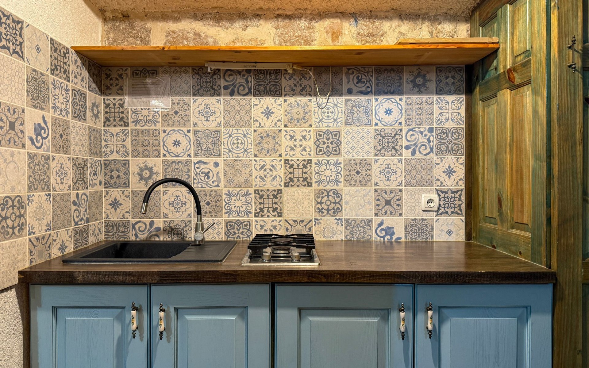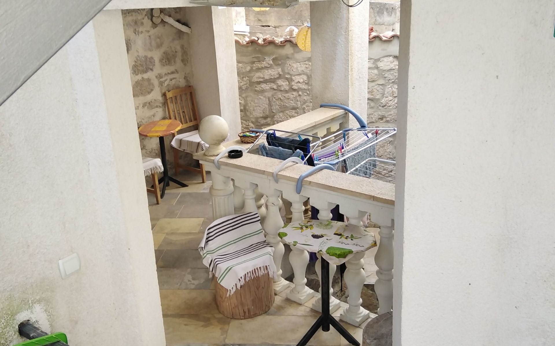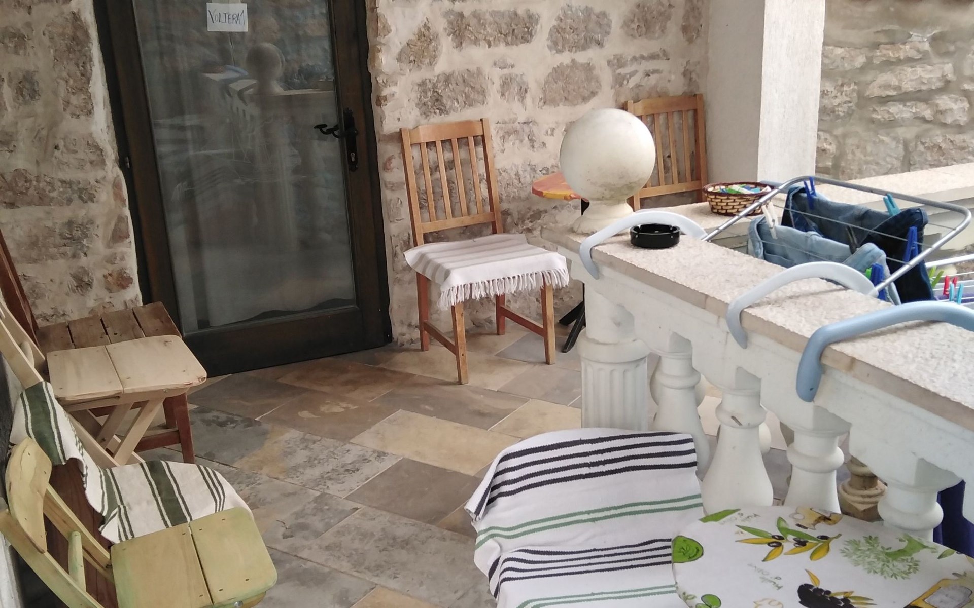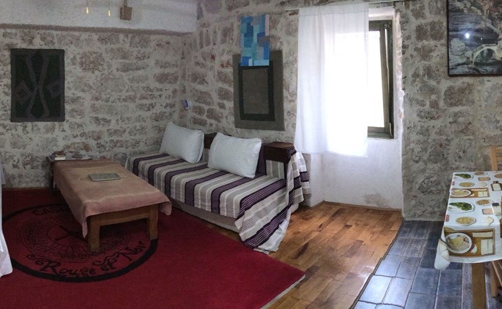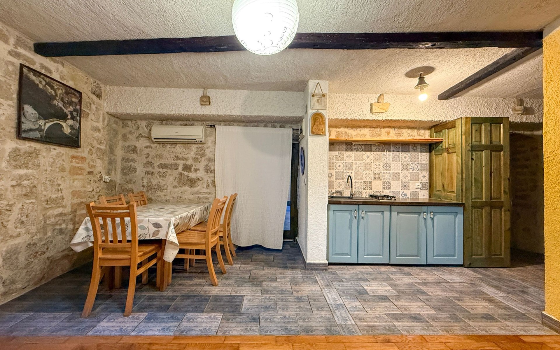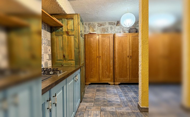 The outside area of the flat offers an inviting terrace at the entrance, which is an ideal setting for relaxing mornings or balmy evenings. In the absence of a balcony, the traditional design and shaded terrace prove that ancient wisdom in terms of construction and climate relief still holds its value today, especially during the summer heatwaves.