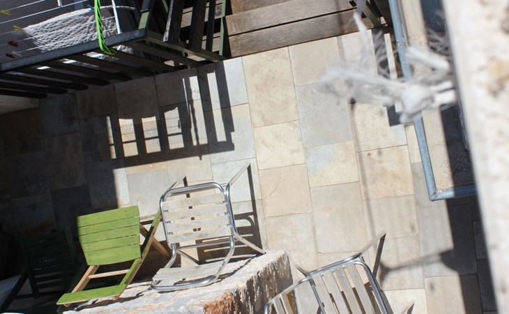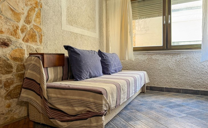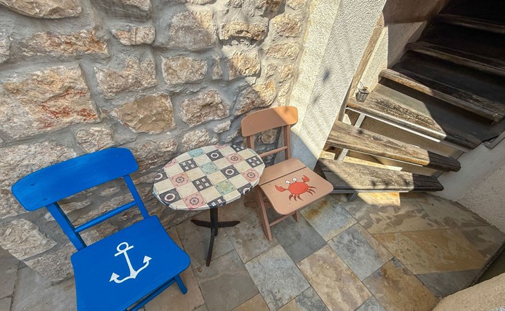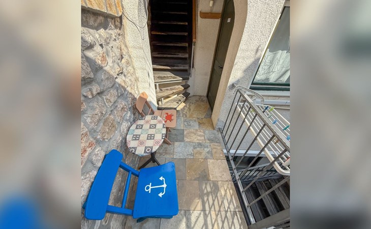 The studio dispenses with a balcony in favour of a characteristic terrace at the entrance - a tribute to the traditional architecture of the house. This terrace not only offers a welcome refreshment during the summer heat, but also a cosy retreat that invites you to linger.