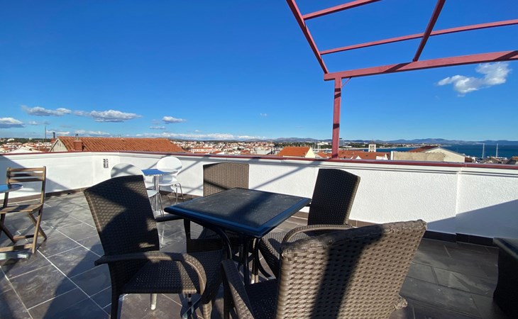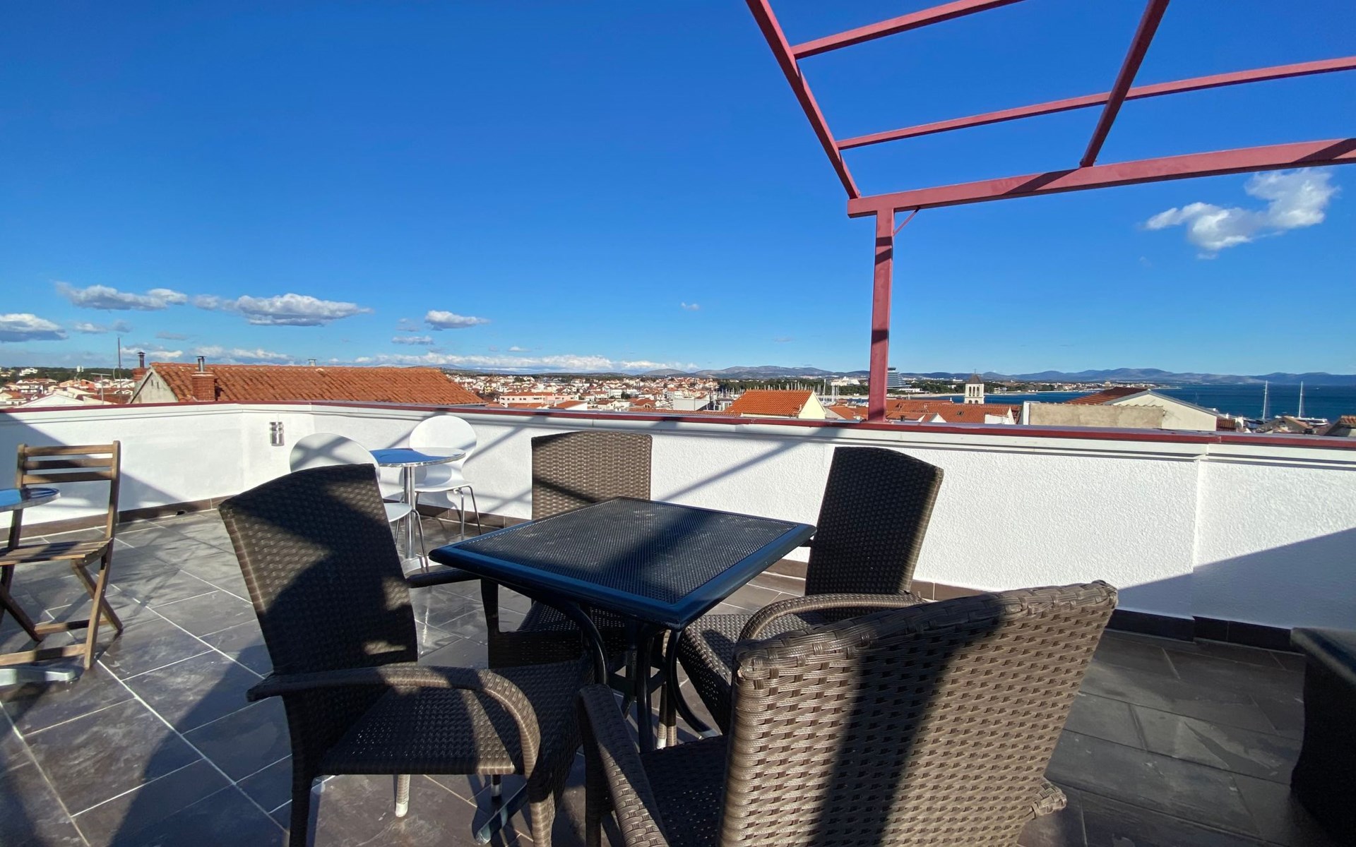 The outdoor area not only impresses with its spacious roof terrace, but also with its traditional architecture, which offers guests a shady spot to cool off during the summer heat. It is the perfect place to unwind and enjoy Mediterranean life to the full. Guests often praise how pleasant it is to relax from the heat either by the sea or in this shady haven.