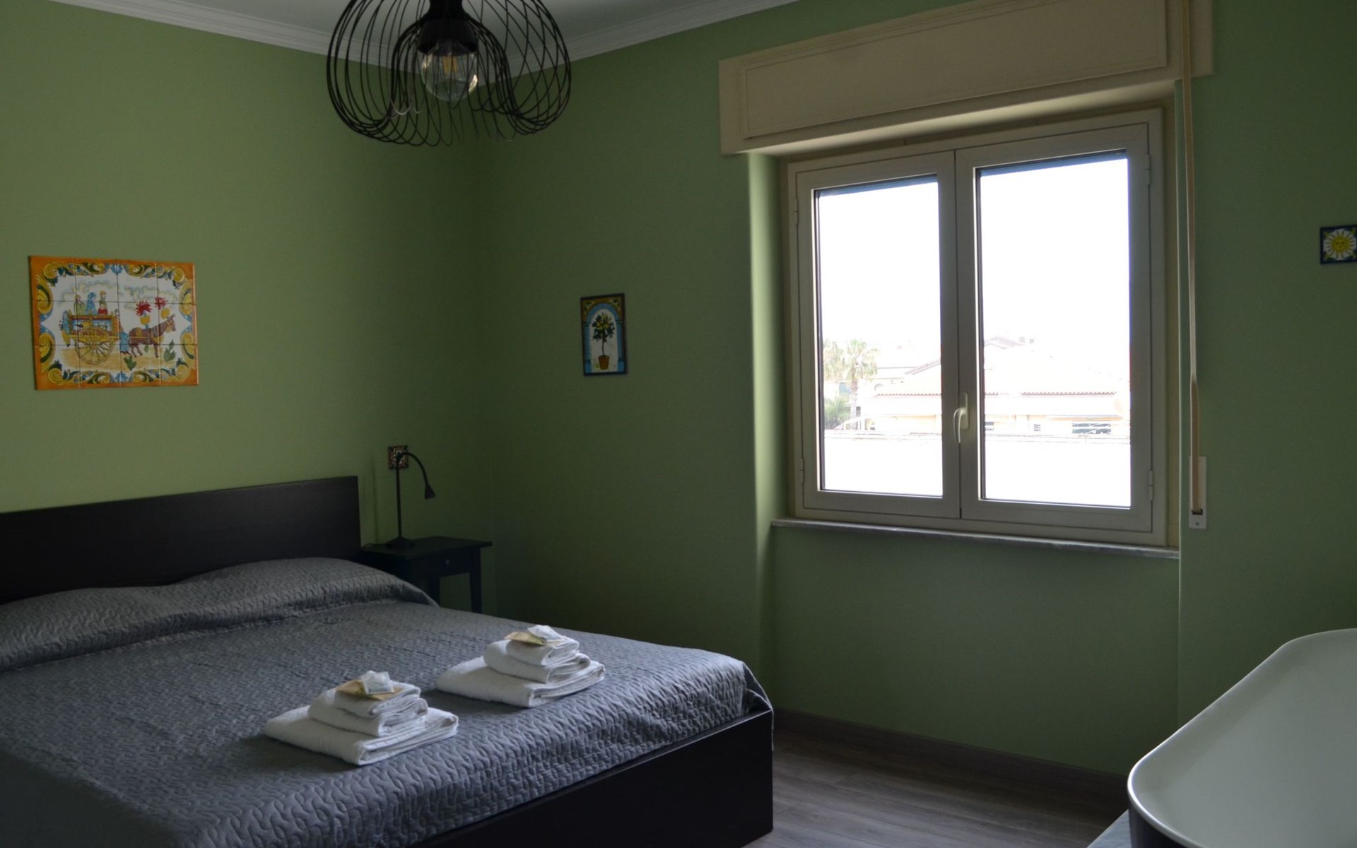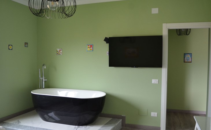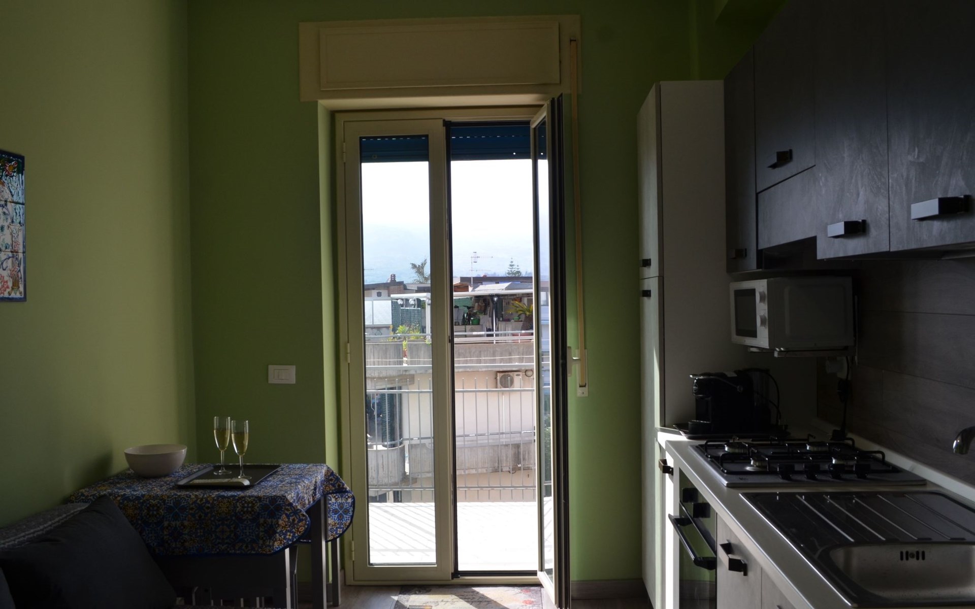 Outside, a private balcony becomes the perfect place to admire Mount Etna while enjoying breakfast or to relax after a day spent exploring the local wonders. This outdoor space offers a unique opportunity to connect with the Sicilian landscape, where the blue of the sea merges with the green of the surrounding nature.