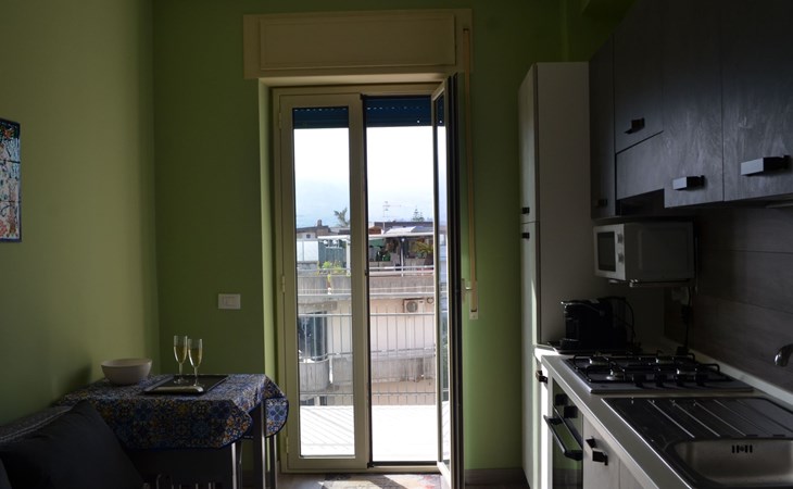 Internally, Suite Etna is distinguished by its elegance and functionality. On the third floor of a building facing the sea (no lift), guests are welcomed into a refined environment that includes a living area with a fully equipped kitchen, a comfortable sofa bed (140x190) ideal for resting, an air-conditioned bedroom with a large king-size bed (180x200), and a modern bathroom with shower. Comforts such as free Wi-Fi, air conditioning, smartTV 50", a washing machine, and a variety of kitchen utensils guarantee a pleasant and carefree stay.