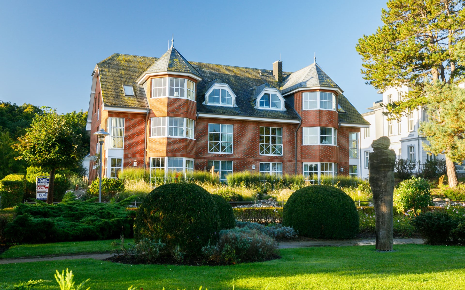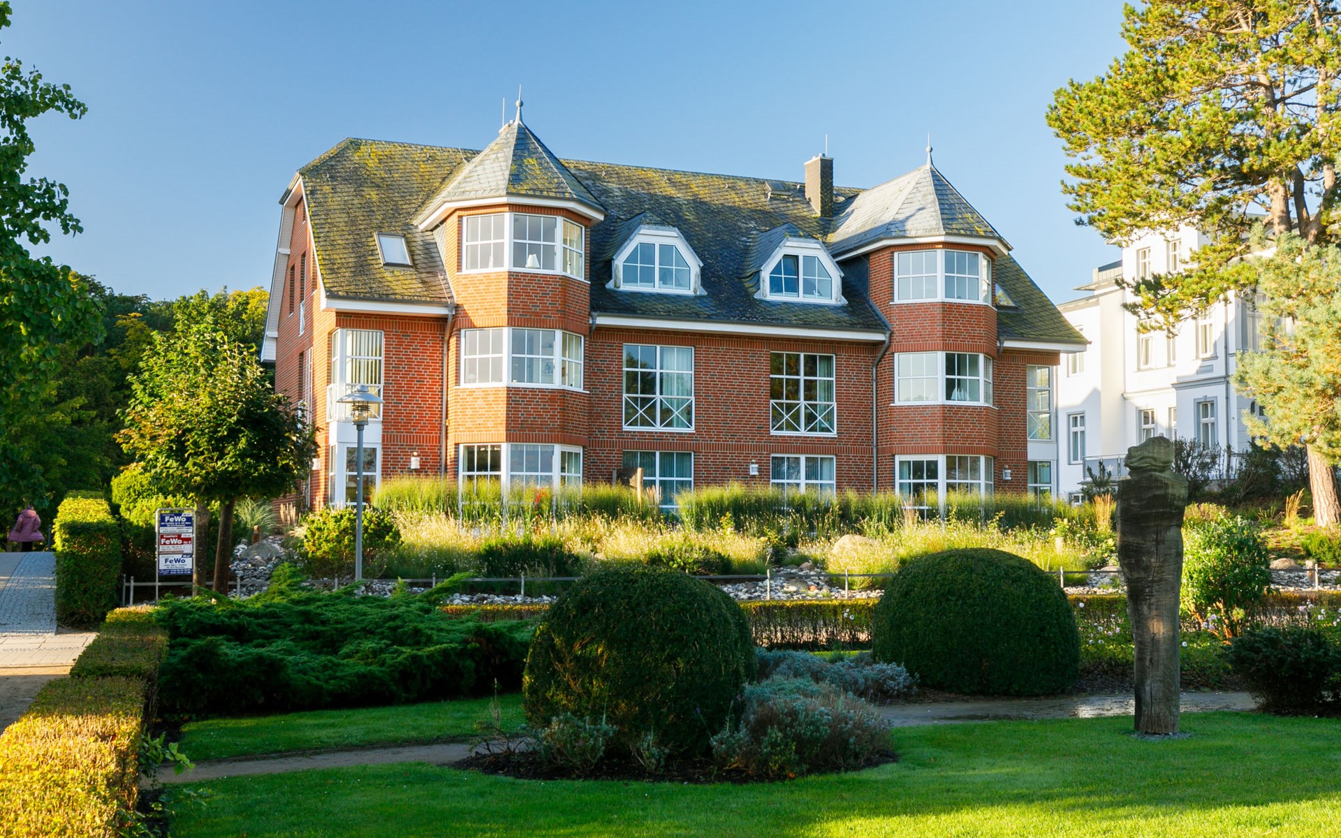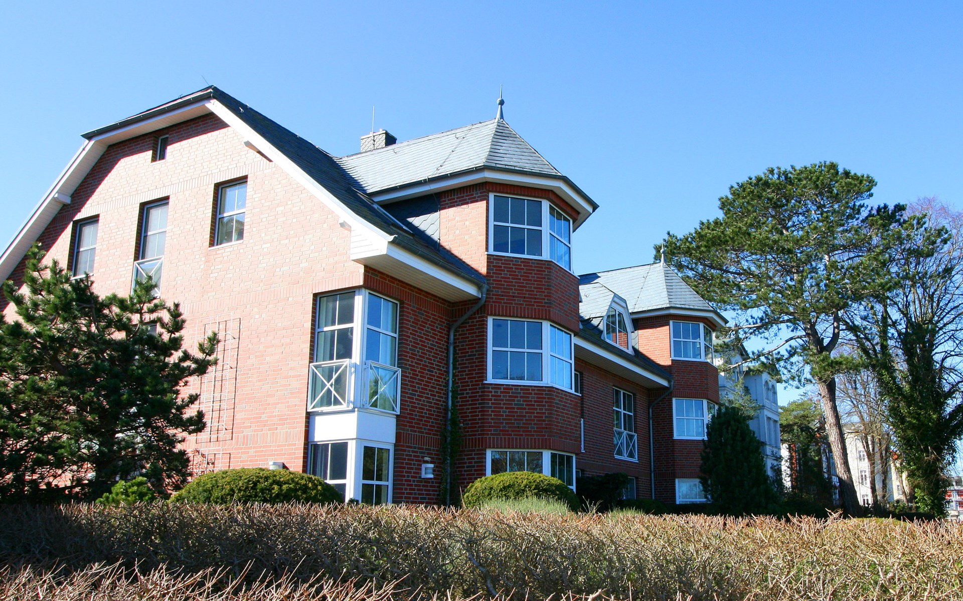 Apartment block "Waterkant", 2 storeys. In the resort Zinnowitz, 50 m from the sea, 50 m from the beach, direct access to the beach. For shared use: property (fenced). In the house: central heating system. Narrow motor access to 30 m from the grounds. Parking on the premises. Parking space or garage only for small to medium-sized cars. Supermarket 550 m, restaurant 40 m, bakery, café 290 m, bus stop 350 m, railway station 1.4 km, sandy beach 50 m, thermal baths "Bernsteintherme" 850 m. Marina 2.3 km, golf course (18 hole) 25 km, surf school, tennis 400 m, minigolf 850 m.