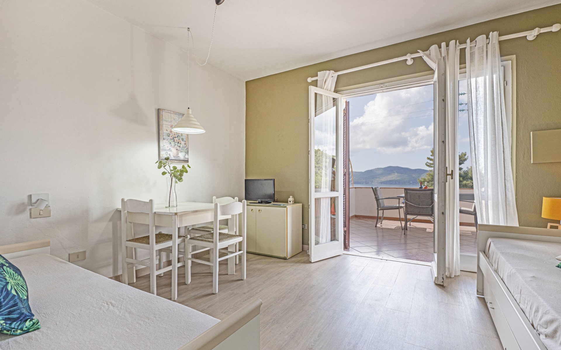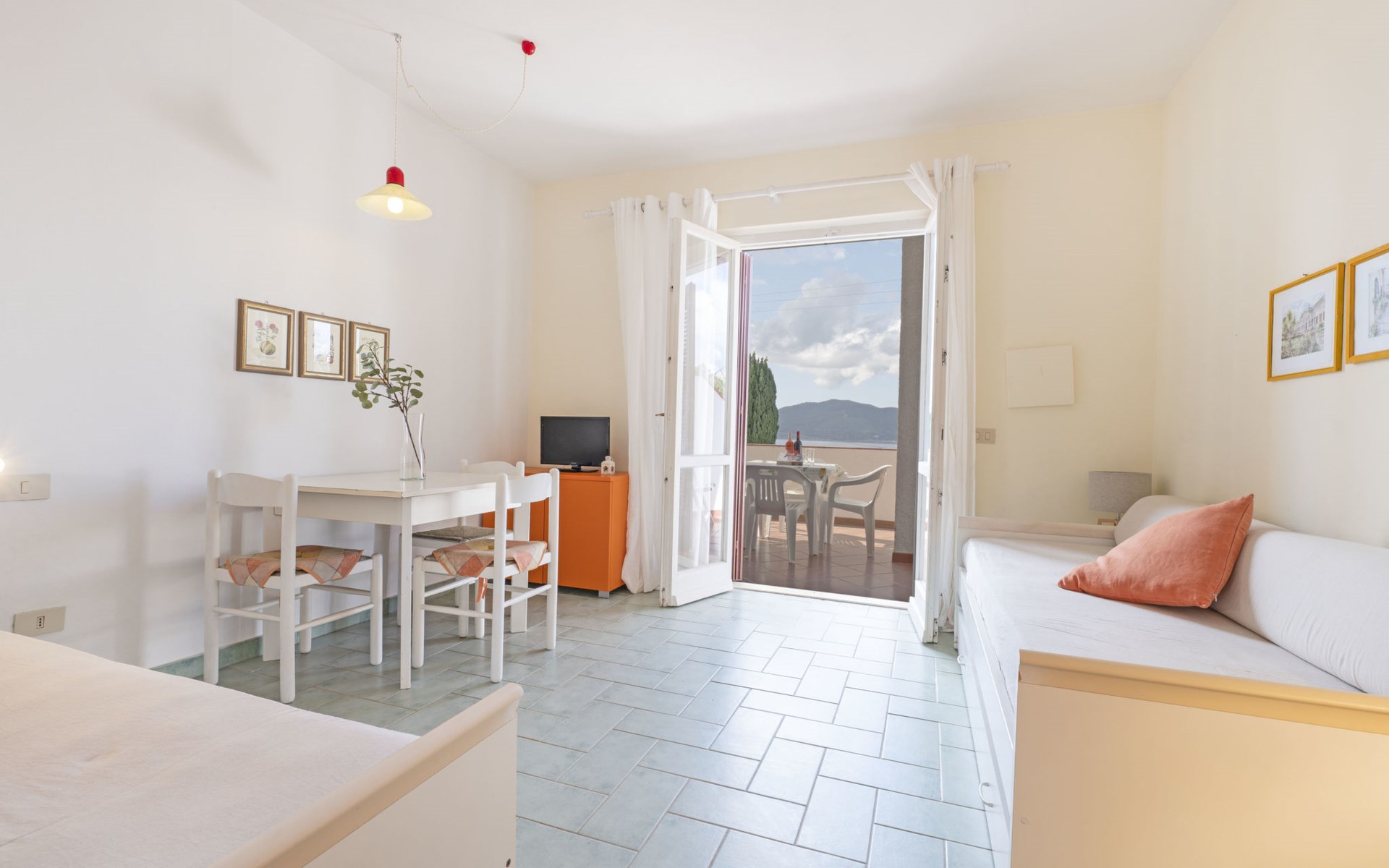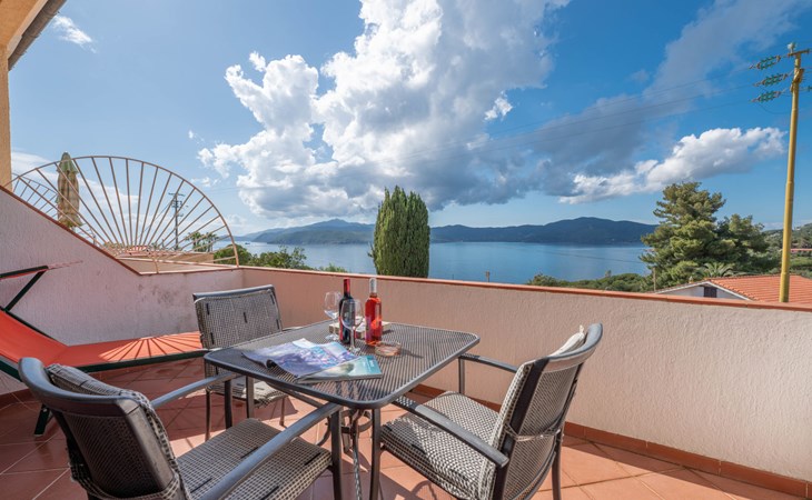 Small residence "Turistica", surrounded by trees and fields. 2 houses in the residence. 12 apartments in the residence. In the district of Morcone 2 km from the centre of Capoliveri, in a quiet, sunny position on a slope, 400 m from the sea, 400 m from the beach, direct access to the beach. For shared use: garden (not fenced) with trees, natural garden, meadow, courtyard. Outdoor shower, patio, garden furniture, barbecue. In the complex: WiFi, washing machine (for shared use, extra). Motor access (150 m via unmade road). Parking on the premises. Supermarket 2 km, bus stop 1.7 km, ferry "Portoferraio" 16 km, sandy beach "Morcone" 500 m pebble beach "Madonna delle Grazie" 1 km. Nearby attractions: Porto Azzurro 7 km, Lacona 13 km. Please note: the photograph shows a typical example. Wi-Fi by the reception. Beach via a steep path with steps.