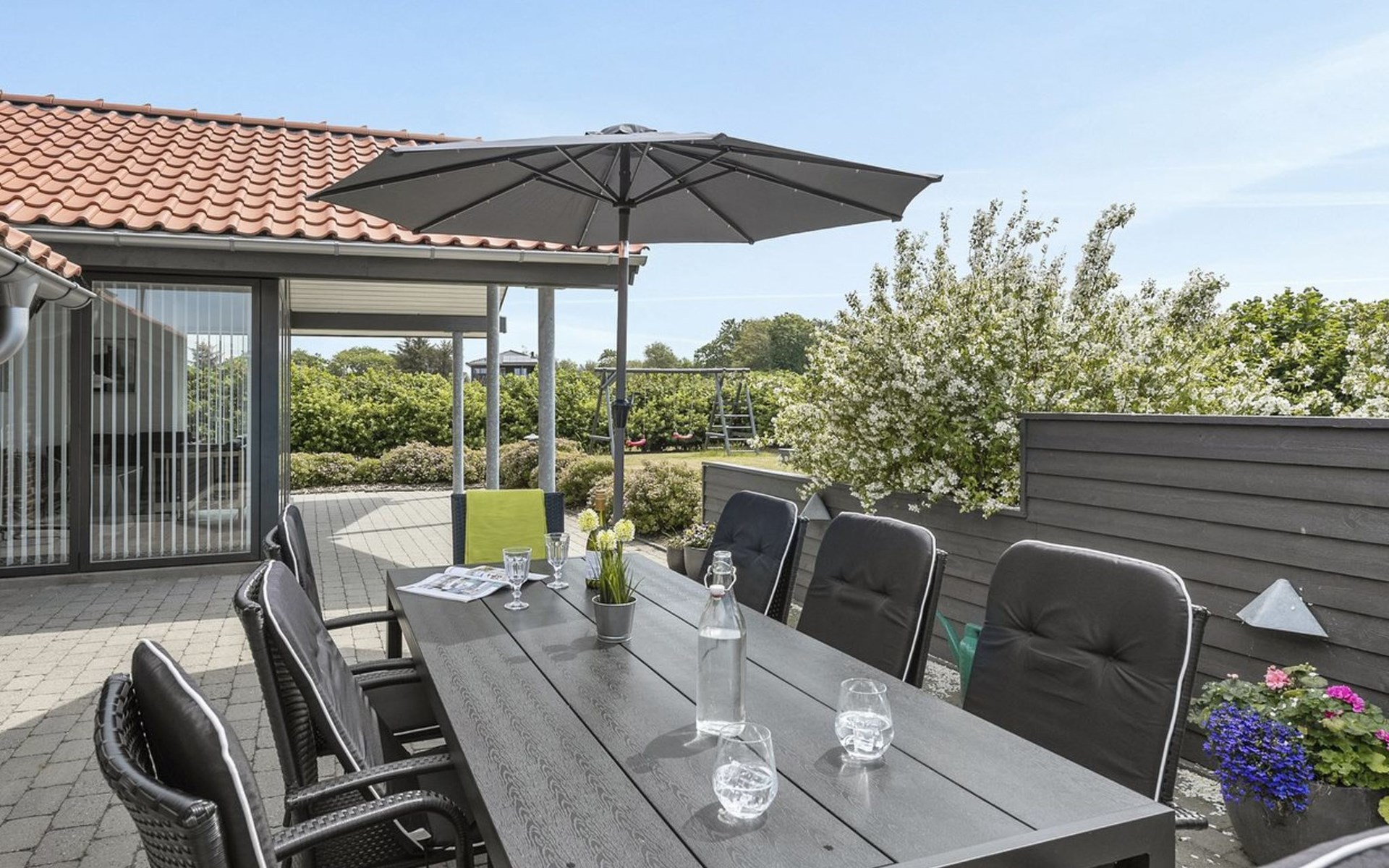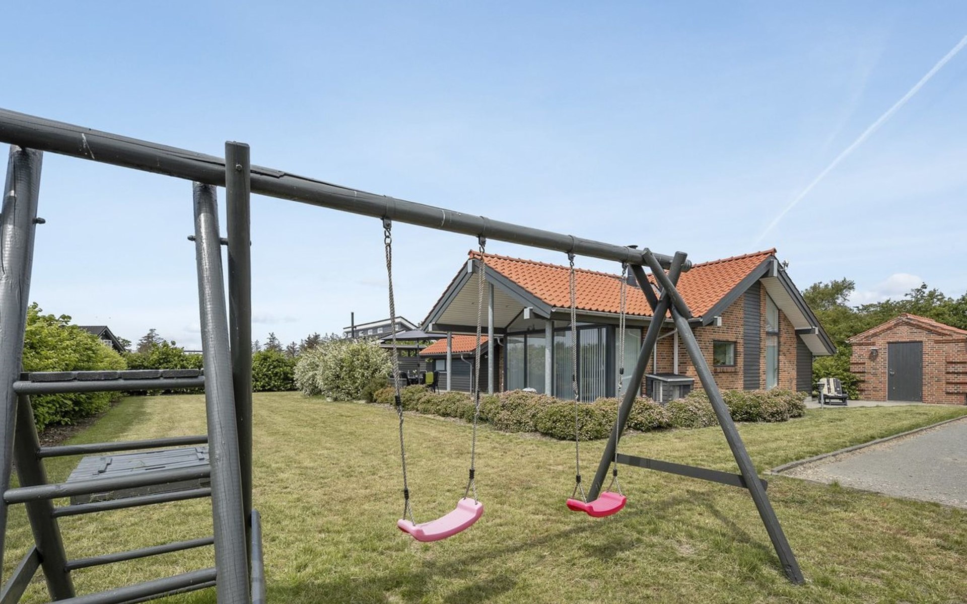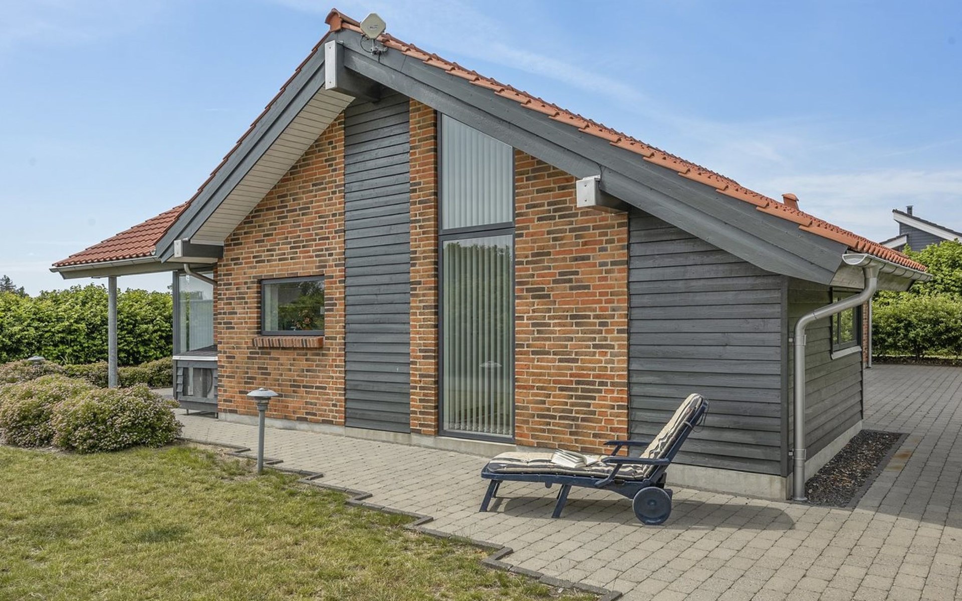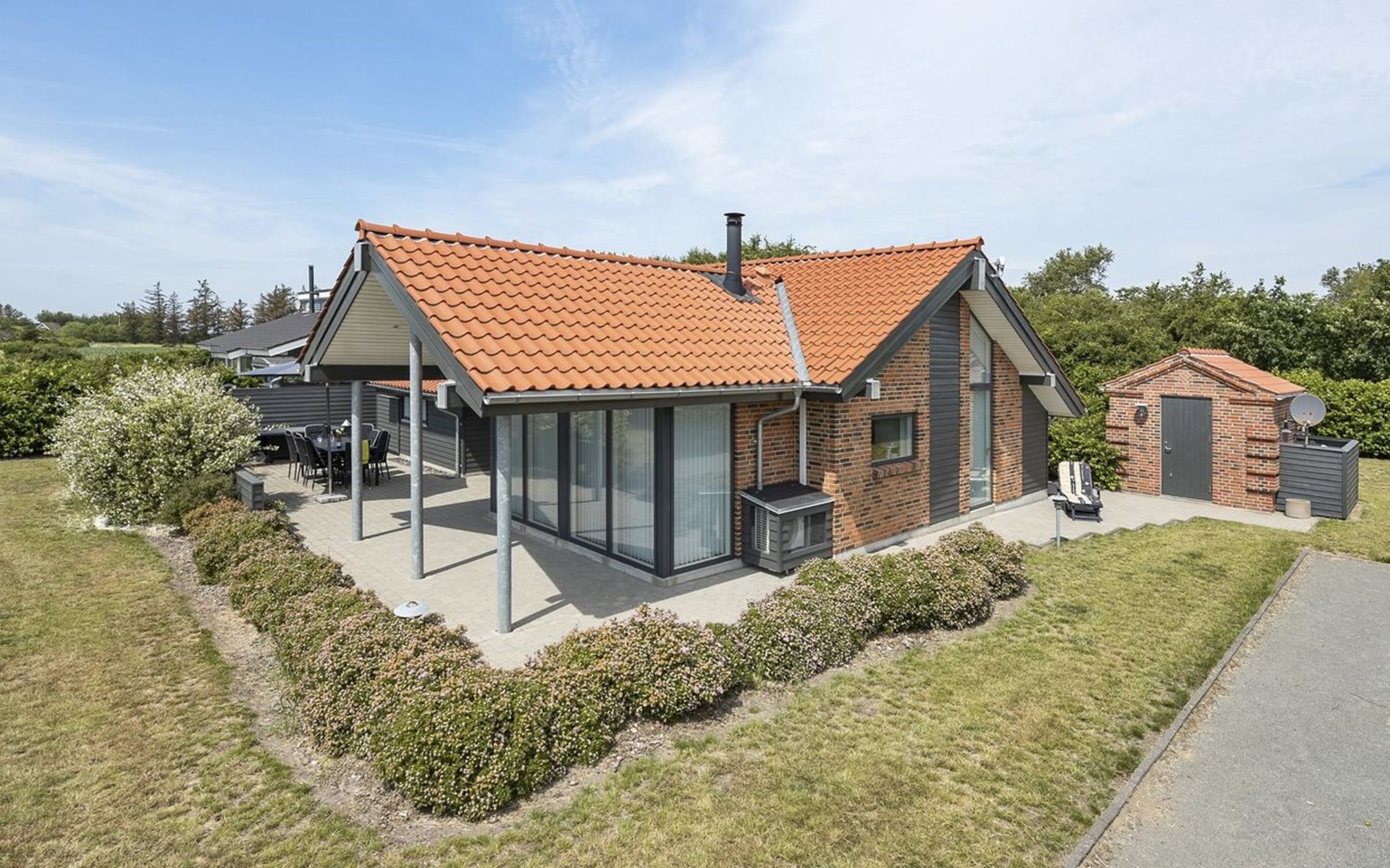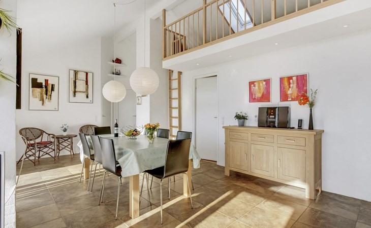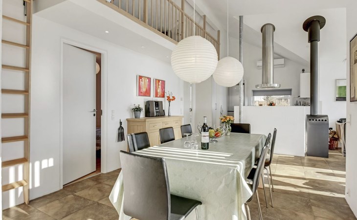 Single-family house, built in 2007. 20 km from the sea. Private: natural state property 1'100 m2. Terrace (80 m2), children's playground (swing). In the house: sauna, washing machine, tumble dryer. Parking at the house. Grocery 500 m. Golf course 8 km. The owner does not accept any youth groups.