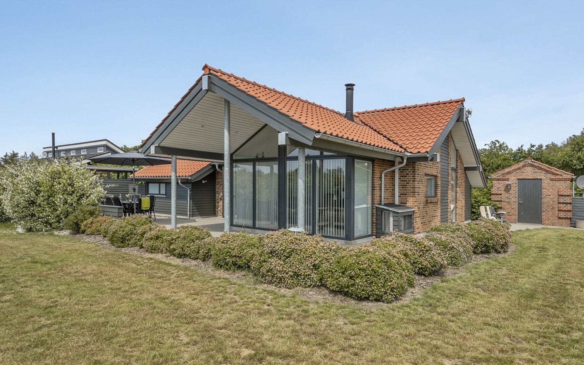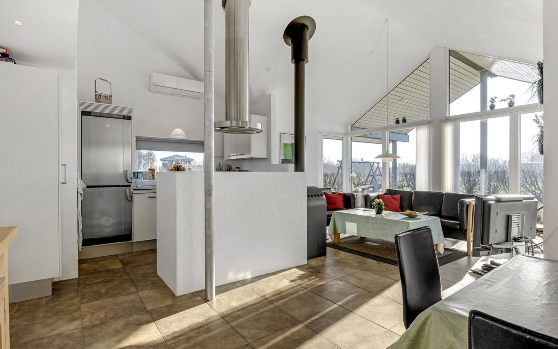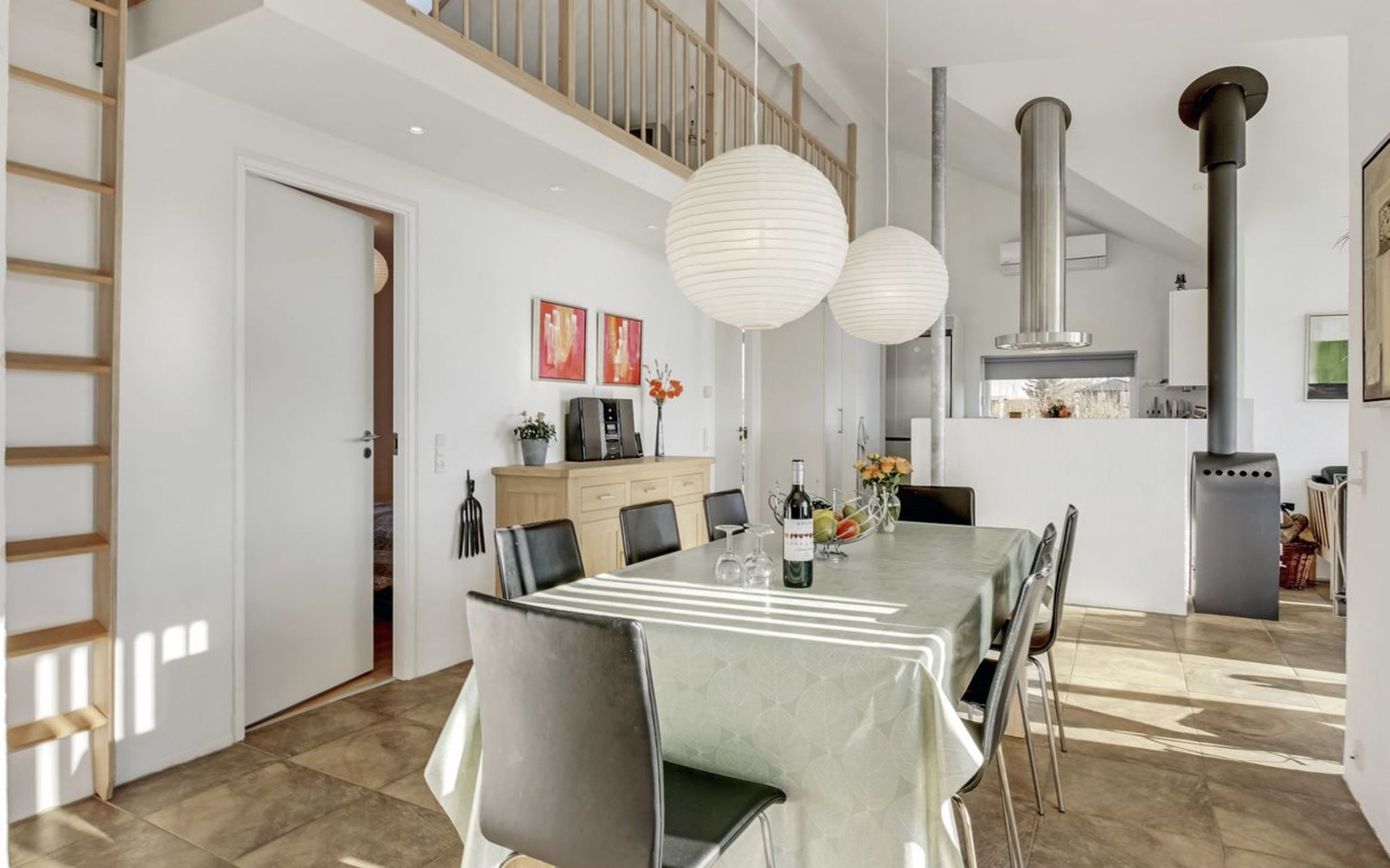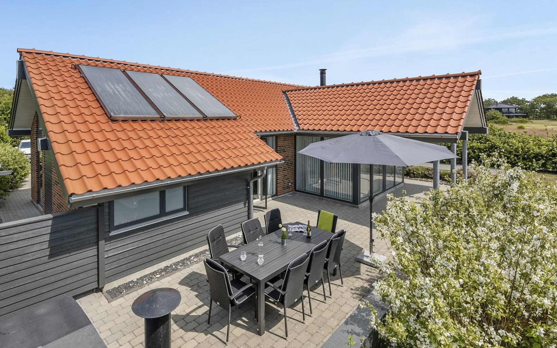 Single-family house, built in 2007. 20 km from the sea. Private: natural state property 1'100 m2. Terrace (80 m2), children's playground (swing). In the house: sauna, washing machine, tumble dryer. Parking at the house. Grocery 500 m. Golf course 8 km. The owner does not accept any youth groups.