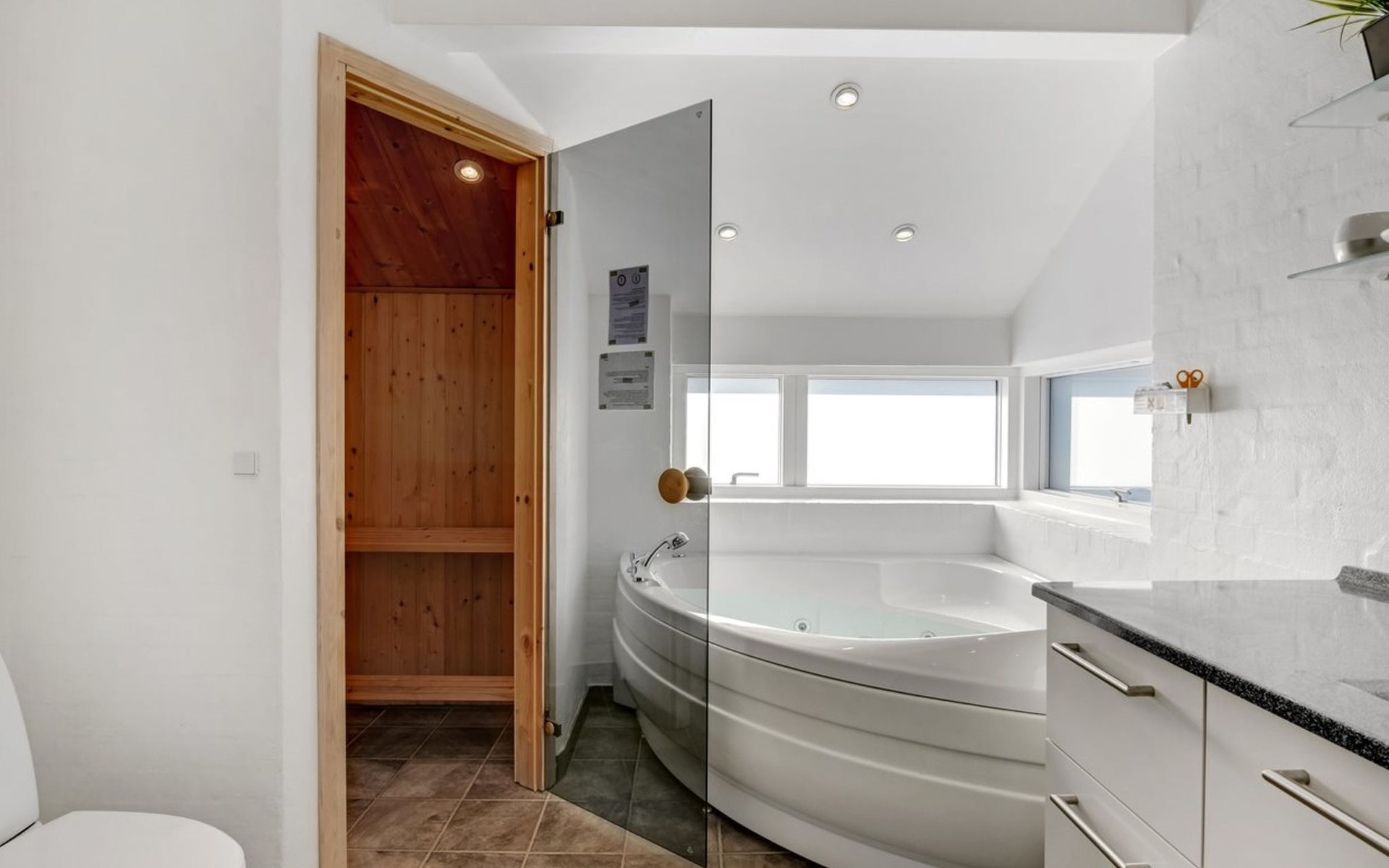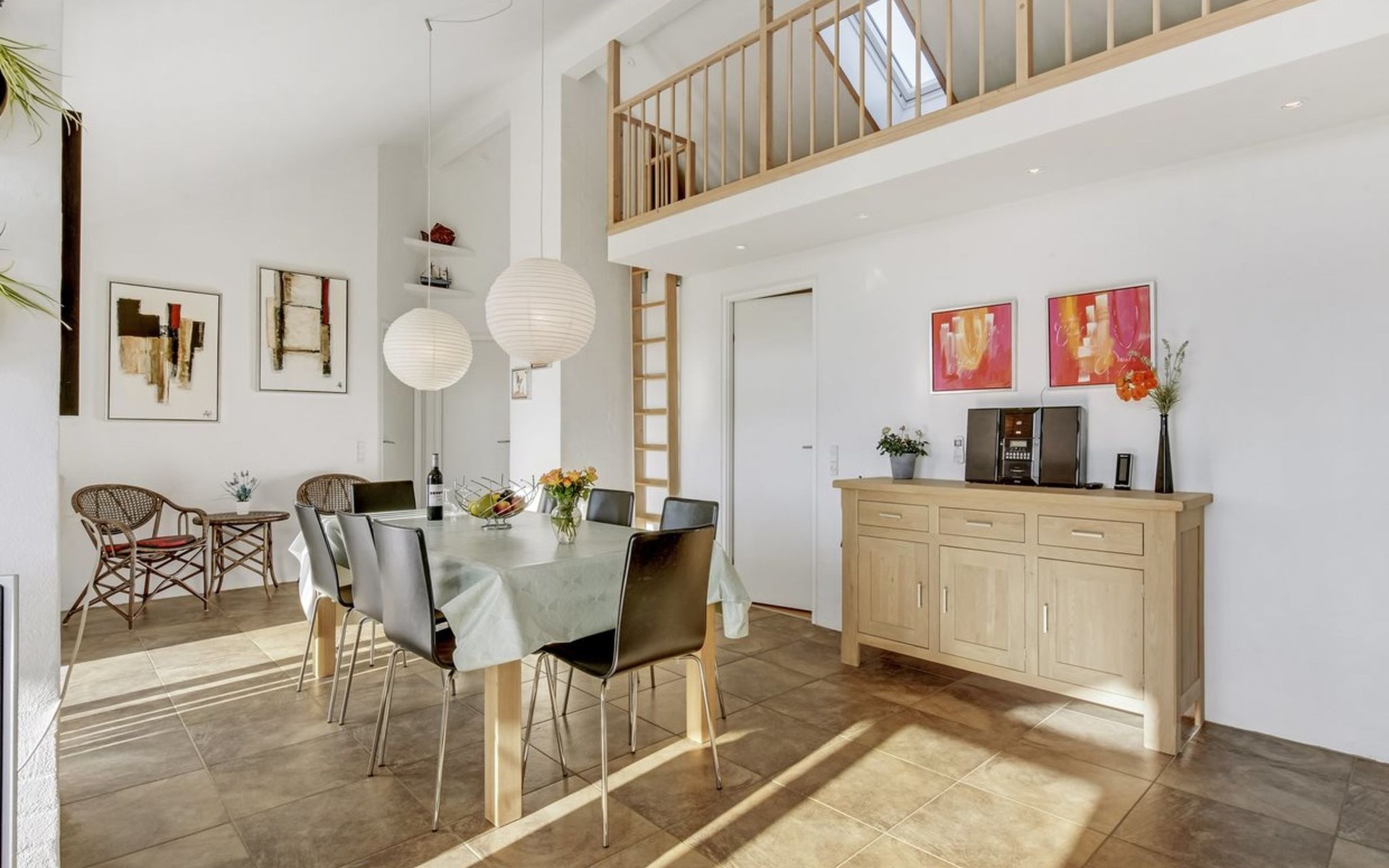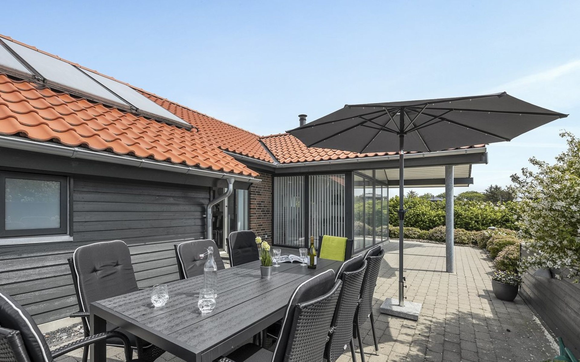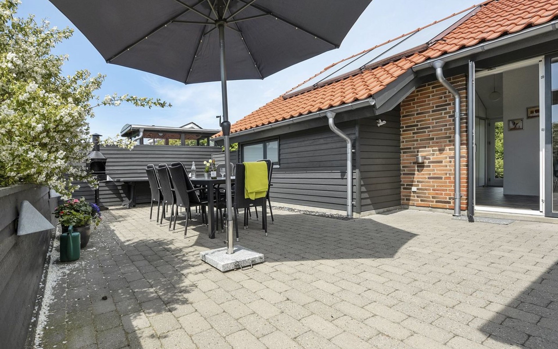 Single-family house, built in 2007. 20 km from the sea. Private: natural state property 1'100 m2. Terrace (80 m2), children's playground (swing). In the house: sauna, washing machine, tumble dryer. Parking at the house. Grocery 500 m. Golf course 8 km. The owner does not accept any youth groups.