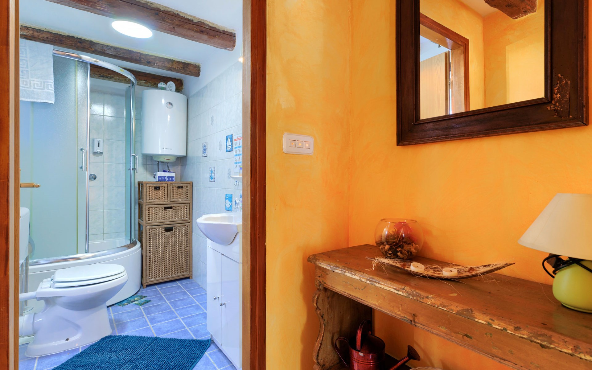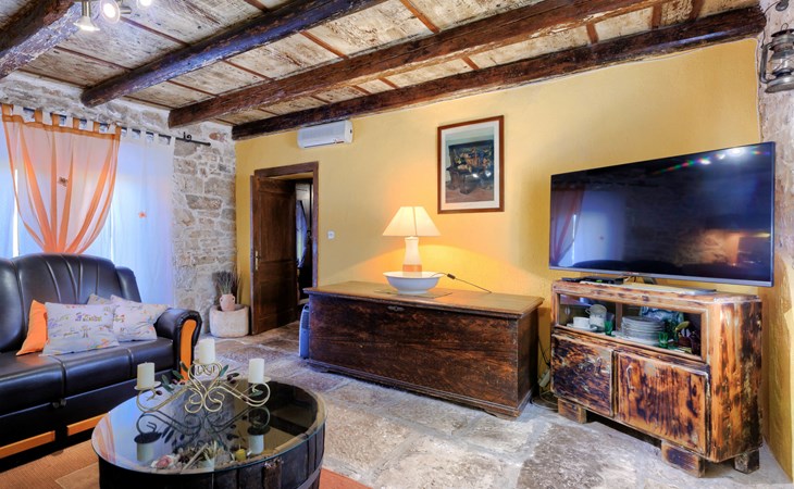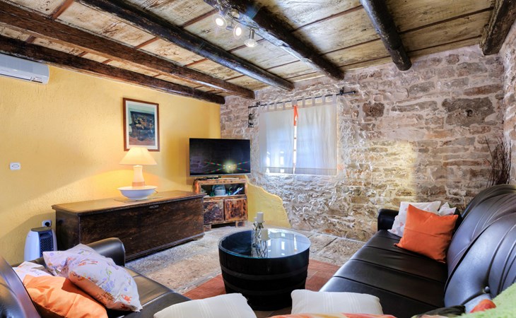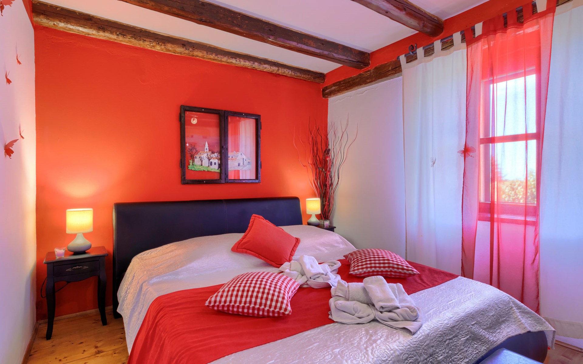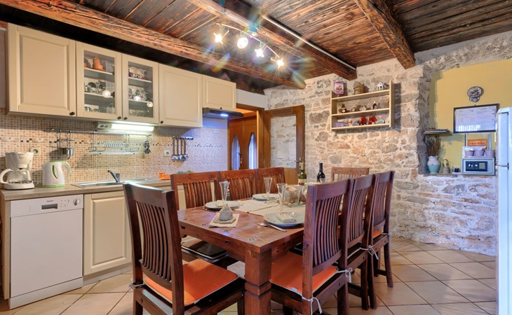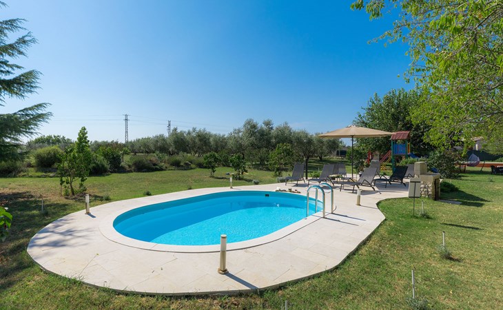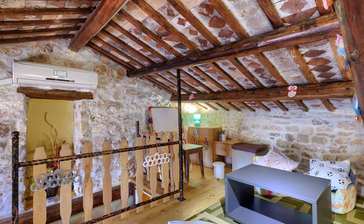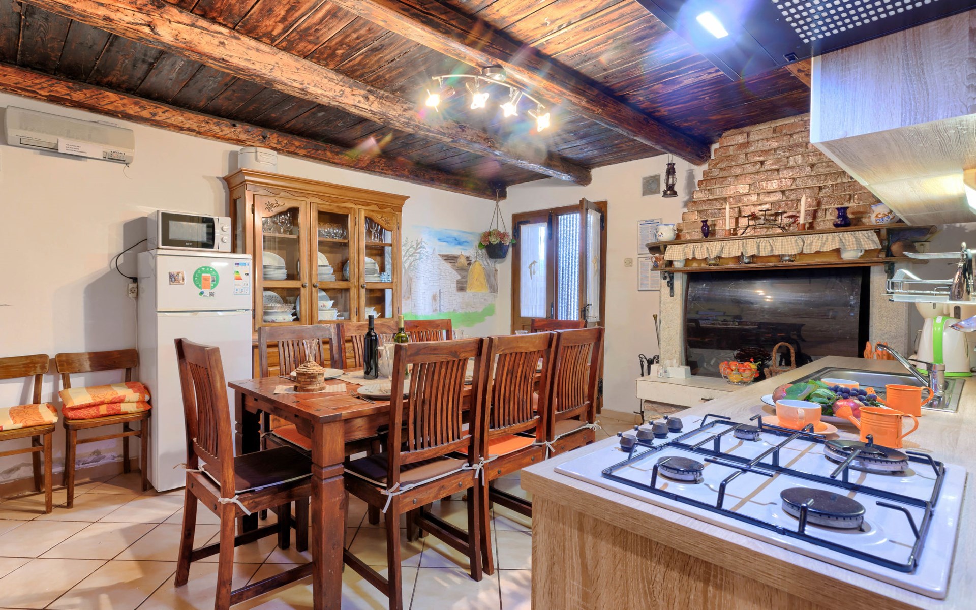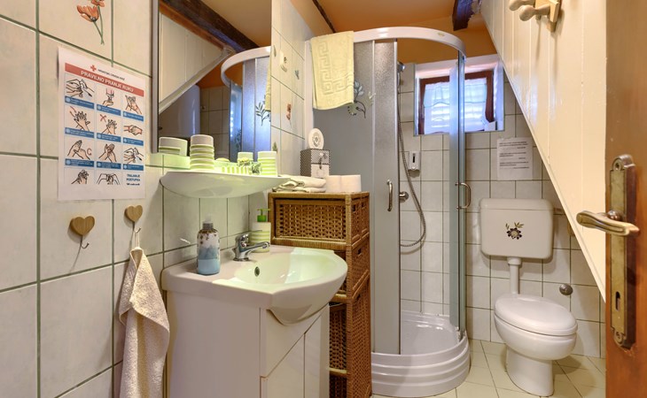 Semi-detached house "Bozac", 3 storeys, surrounded by meadows and fields. In the hamlet Guran 3 km from the centre of Vodnjan, 10 km from the sea. For shared use: property 2'000 m2, trees, meadow, swimming pool heated (8 x 5 m, seasonal availability: 01.May. - 01.Jun.). (swing, sandbox). Private: swimming pool (6 x 4 m, depth 130 cm, seasonal availability: 01.May. - 14.Oct.). Outdoor shower, terrace (16 m2), garden furniture, barbecue. In the house: internet access, washing machine. Available: bicycles (3) (extra). Breakfast and half board possible (extra). Parking (for 2 cars) on the premises. Supermarket 3 km, bus stop 3.2 km, pebble beach 10 km. The owner does not accept any youth groups. Local sale of farm products.