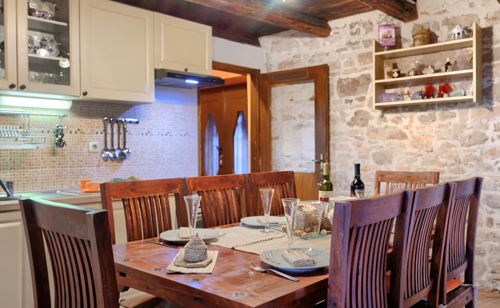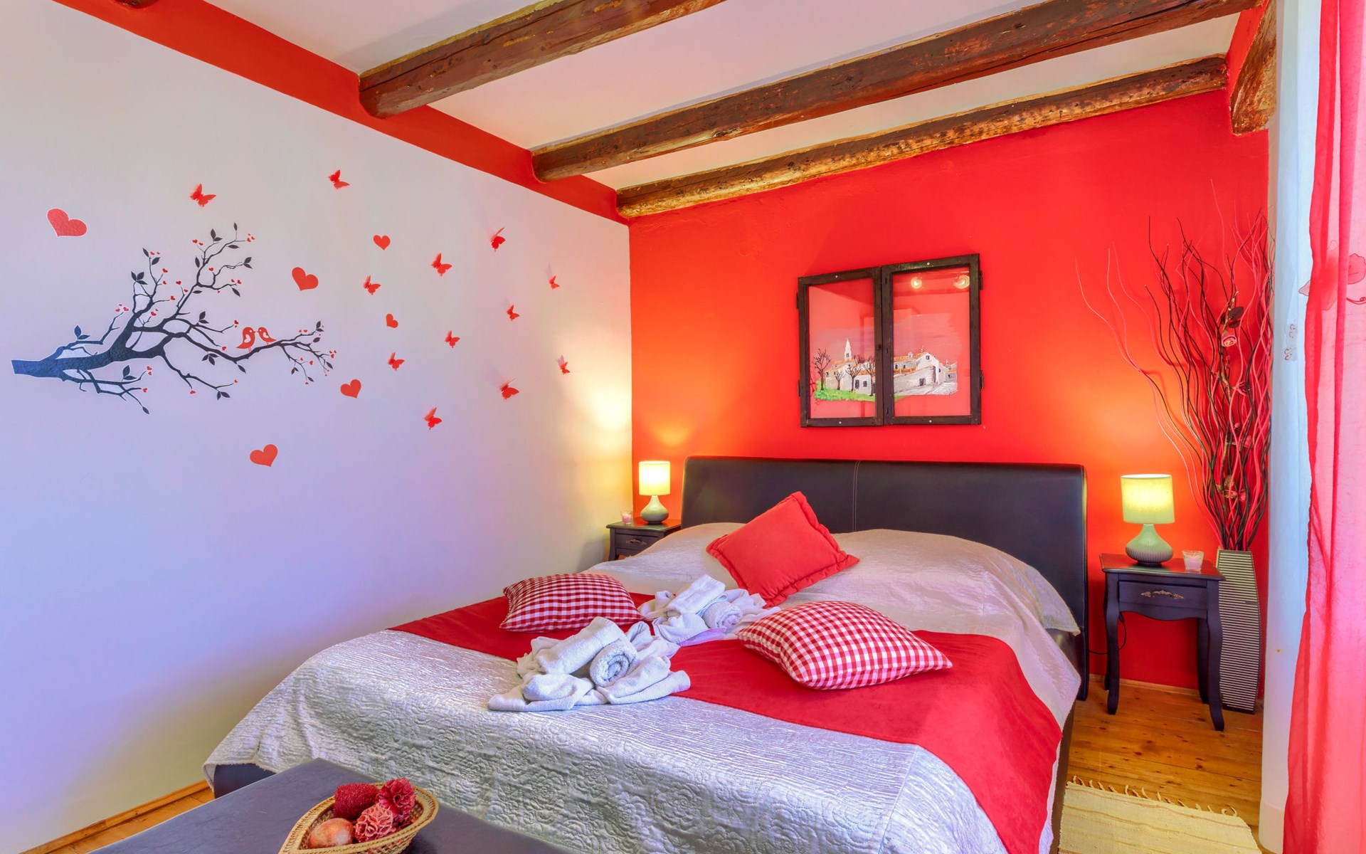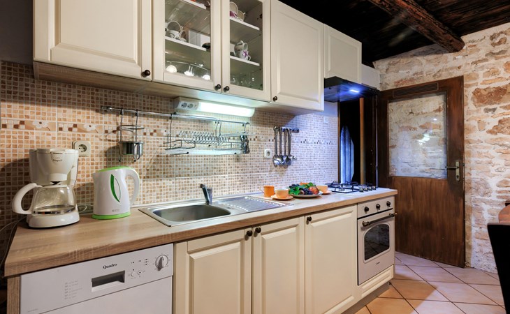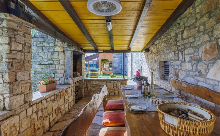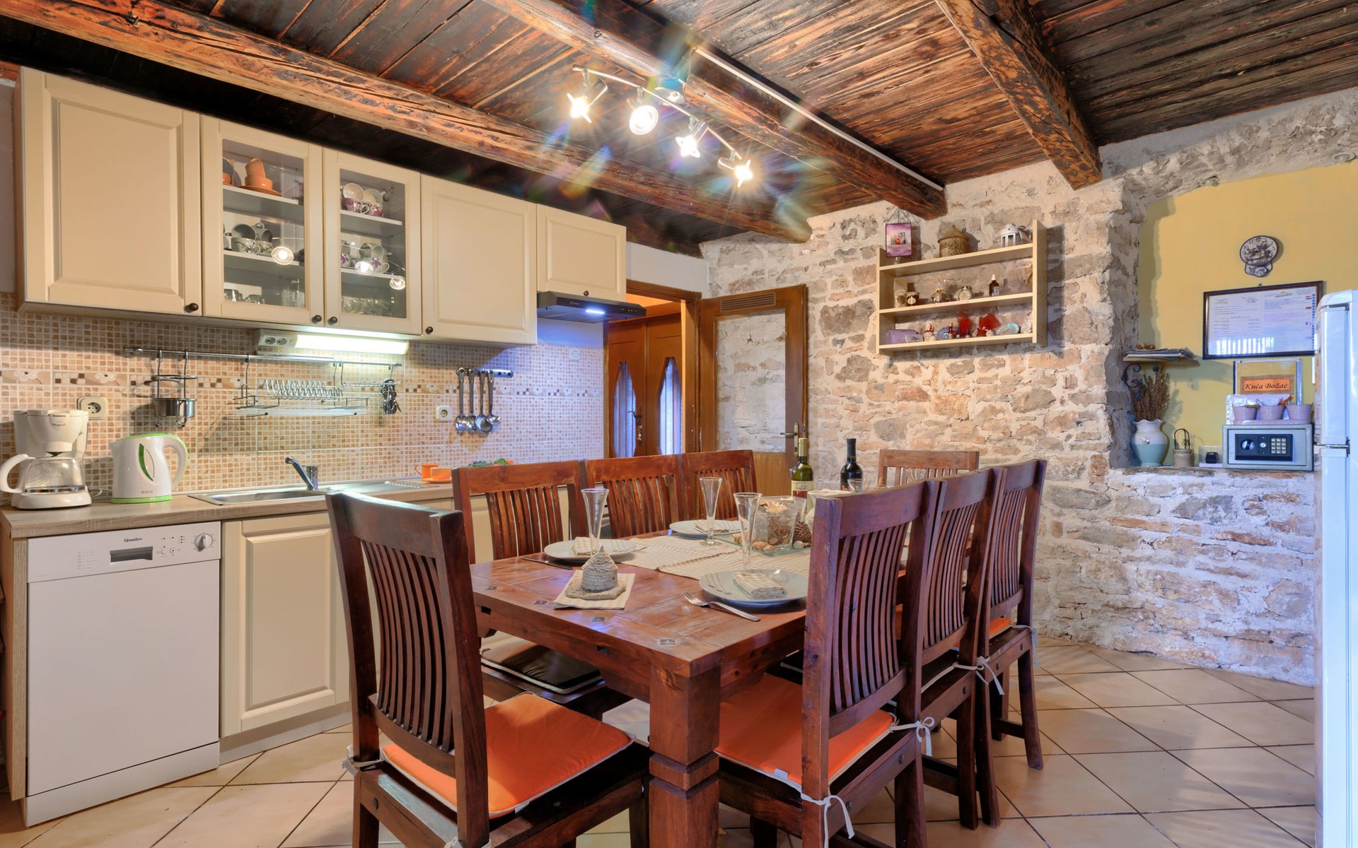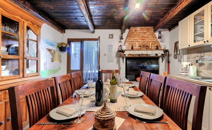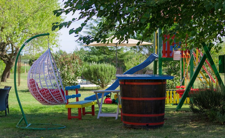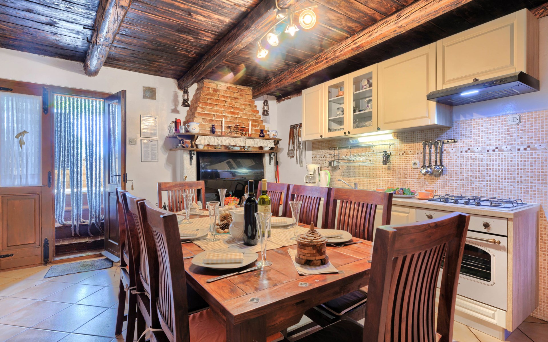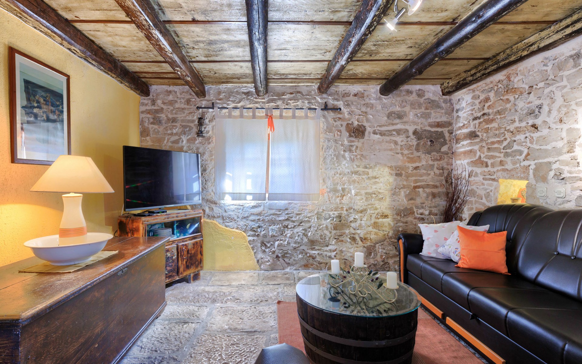 Semi-detached house "Bozac", 3 storeys, surrounded by meadows and fields. In the hamlet Guran 3 km from the centre of Vodnjan, 10 km from the sea. For shared use: property 2'000 m2, trees, meadow, swimming pool heated (8 x 5 m, seasonal availability: 01.May. - 01.Jun.). (swing, sandbox). Private: swimming pool (6 x 4 m, depth 130 cm, seasonal availability: 01.May. - 14.Oct.). Outdoor shower, terrace (16 m2), garden furniture, barbecue. In the house: internet access, washing machine. Available: bicycles (3) (extra). Breakfast and half board possible (extra). Parking (for 2 cars) on the premises. Supermarket 3 km, bus stop 3.2 km, pebble beach 10 km. The owner does not accept any youth groups. Local sale of farm products.