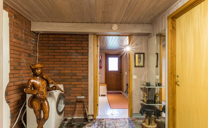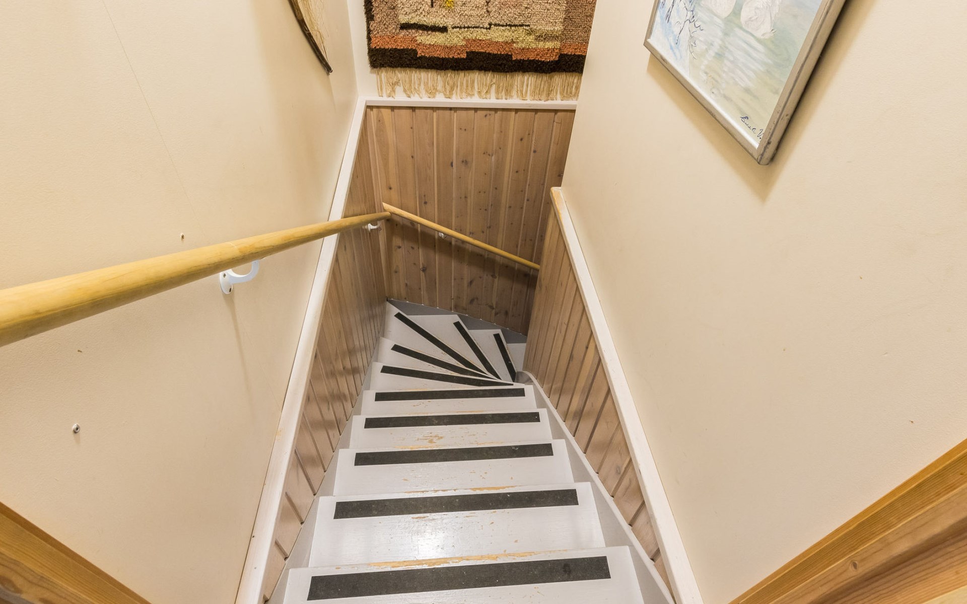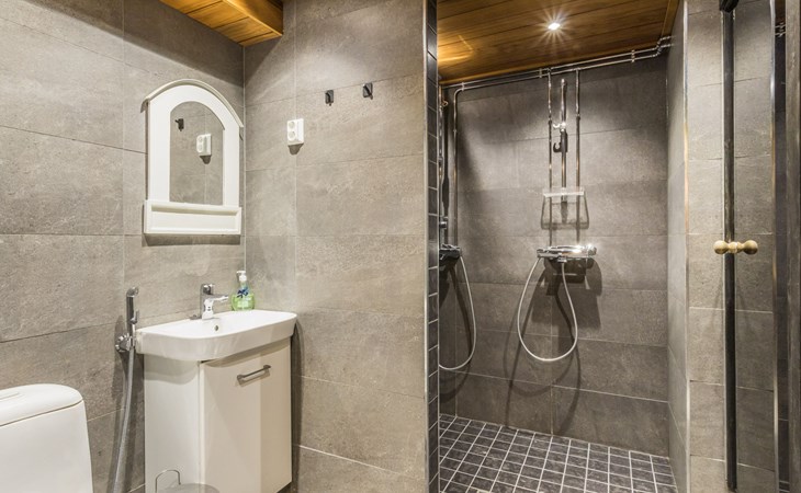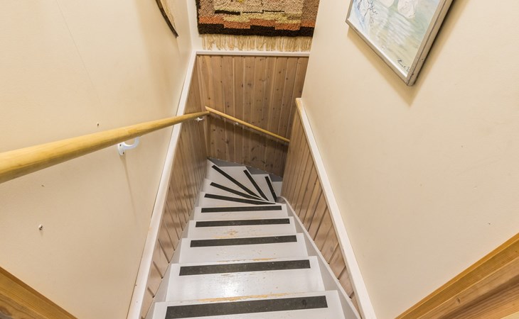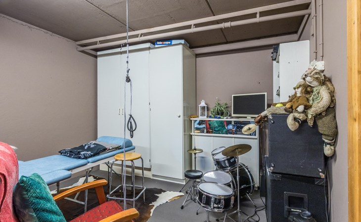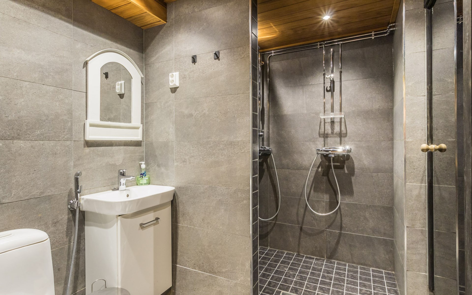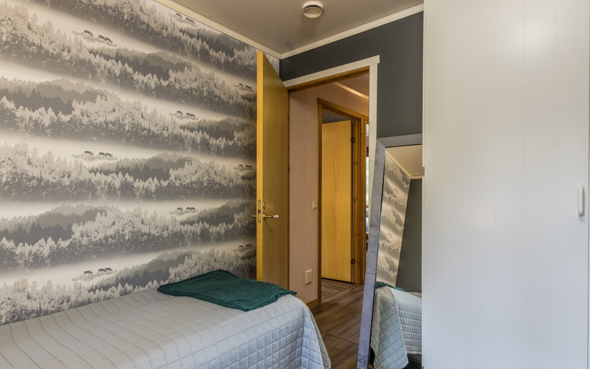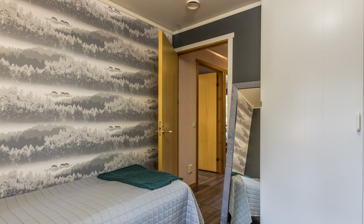 The ground floor offers bedroom with two single beds a cozy living area with a fireplace, a sauna with an electric stove, a shower, and a separate toilet. The bathroom and sauna were renovated in January 2020, and the bedrooms were updated in 2022.
