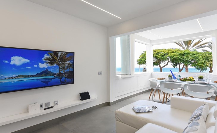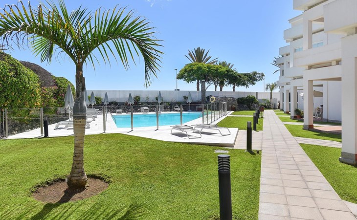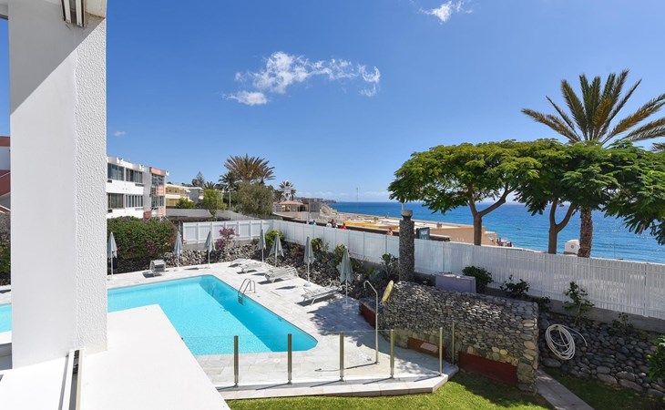 Modern, cosy apartment block "Aida 206". In the centre of Playa del Inglés, in a central, sunny position, 50 m from the sea, 50 m from the beach. For shared use: swimming pool heated (seasonal availability: 01.Nov. - 31.May.). Outdoor shower. In the house: air conditioning. Stepped path to the house. Public parking on the road. Shop, grocery, supermarket, restaurant 200 m, bus stop "AV de España" 1 km. The owner does not accept any youth groups. Please note: airfield 15 km from the property. Neighbourhood highly sensitive to noise. Quietness and good behaviour expected.