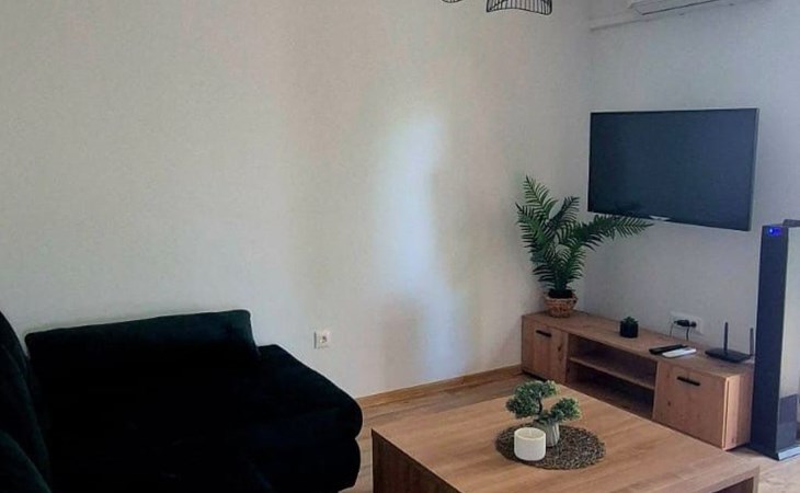 The apartment has 62 m² and consists of a spacious living room, an equipped kitchen, two bedrooms, and a bathroom. The living room is modern and comfortable, featuring a large sofa and a smart TV with Netflix, allowing guests to relax with their favorite content. WiFi and air conditioning are available in the apartment.