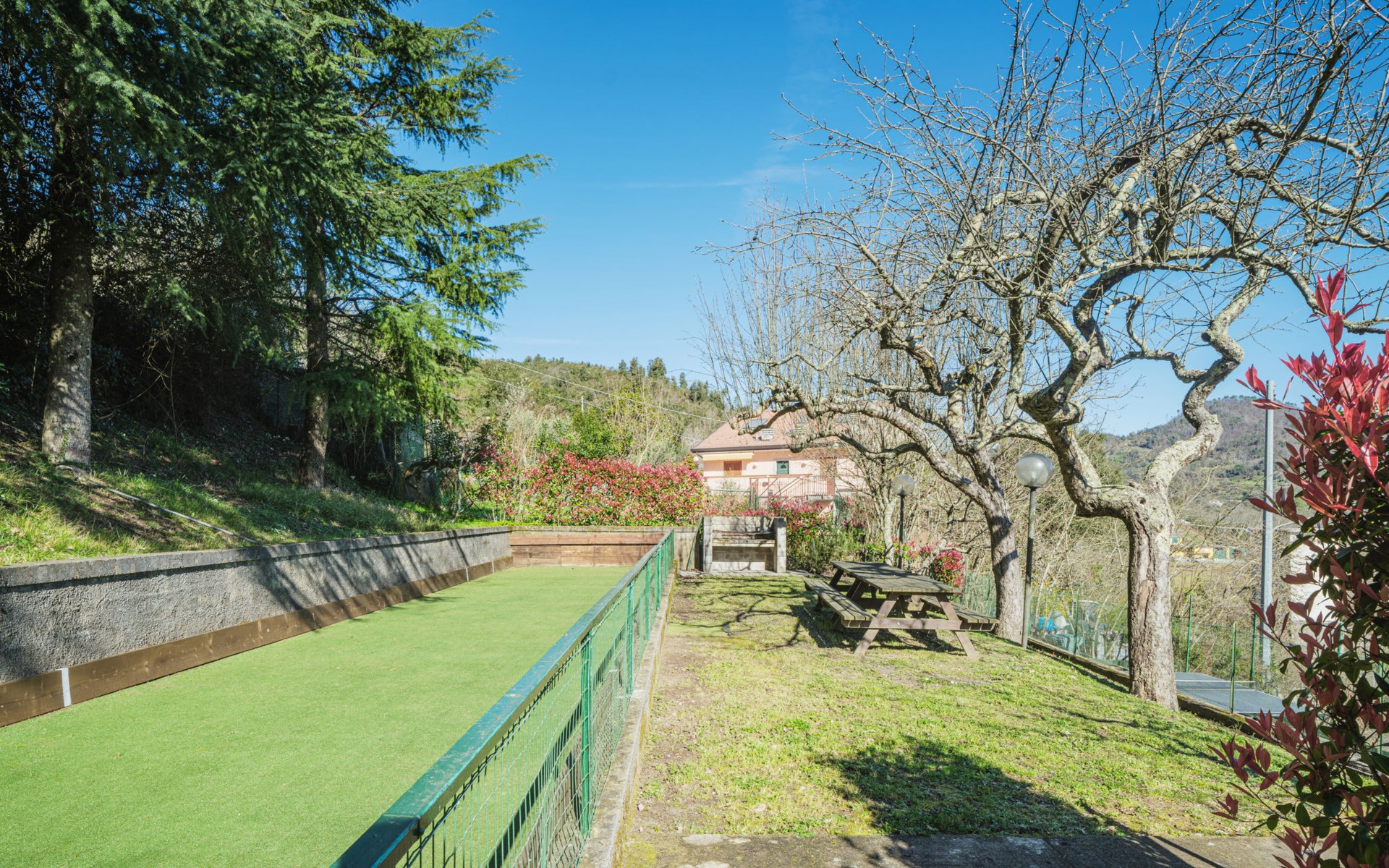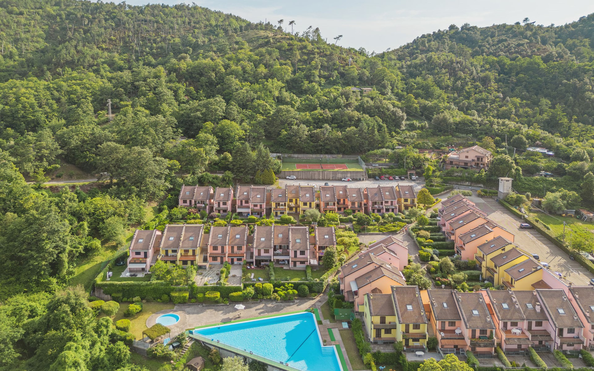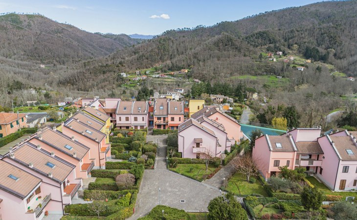 Large residence "Villaggio 5 Terre", 460 m a.s.l., surrounded by trees. In the hamlet Puin 6 km from the centre of Pignone, 11 km from the centre of Levanto, 22 km from the centre of La Spezia, in a quiet, elevated position, 9 km from the sea, 9 km from the beach. For shared use: park (fenced), swimming pool angular (400 m2, depth 170 - 220 cm, seasonal availability: 15.Jun. - 15.Sep. pool opening hours: 09:30-19:30). Children's pool, outdoor shower, tennis, table tennis, boccia, barbecue house, children's playground, pool maintenance by the owner/gardener. In the house: central heating system, heating to be paid on the spot (22.Mar. - 31.Oct.), heating available only from 01.Nov. - 21.Mar.. Parking on the premises. Grocery 6 km, supermarket 6 km, shopping centre 22 km, restaurant, bus stop 100 m, railway station "Monterosso / Levanto" 10 km, sandy beach 9 km. Nearby attractions: Monterosso al Mare 9 km, Vernazza 10 km, Corniglia 13 km, Santa Margherita 72 km, Levanto 26 km, Riomaggiore 31 km. Hiking paths: Parco Nazionale delle Cinque Terre. Please note: car recommended. Suitable for families. The owner does not accept any youth groups. Neighbourhood highly sensitive to noise. Quietness and good behaviour expected. Obligation to wear bathing caps.