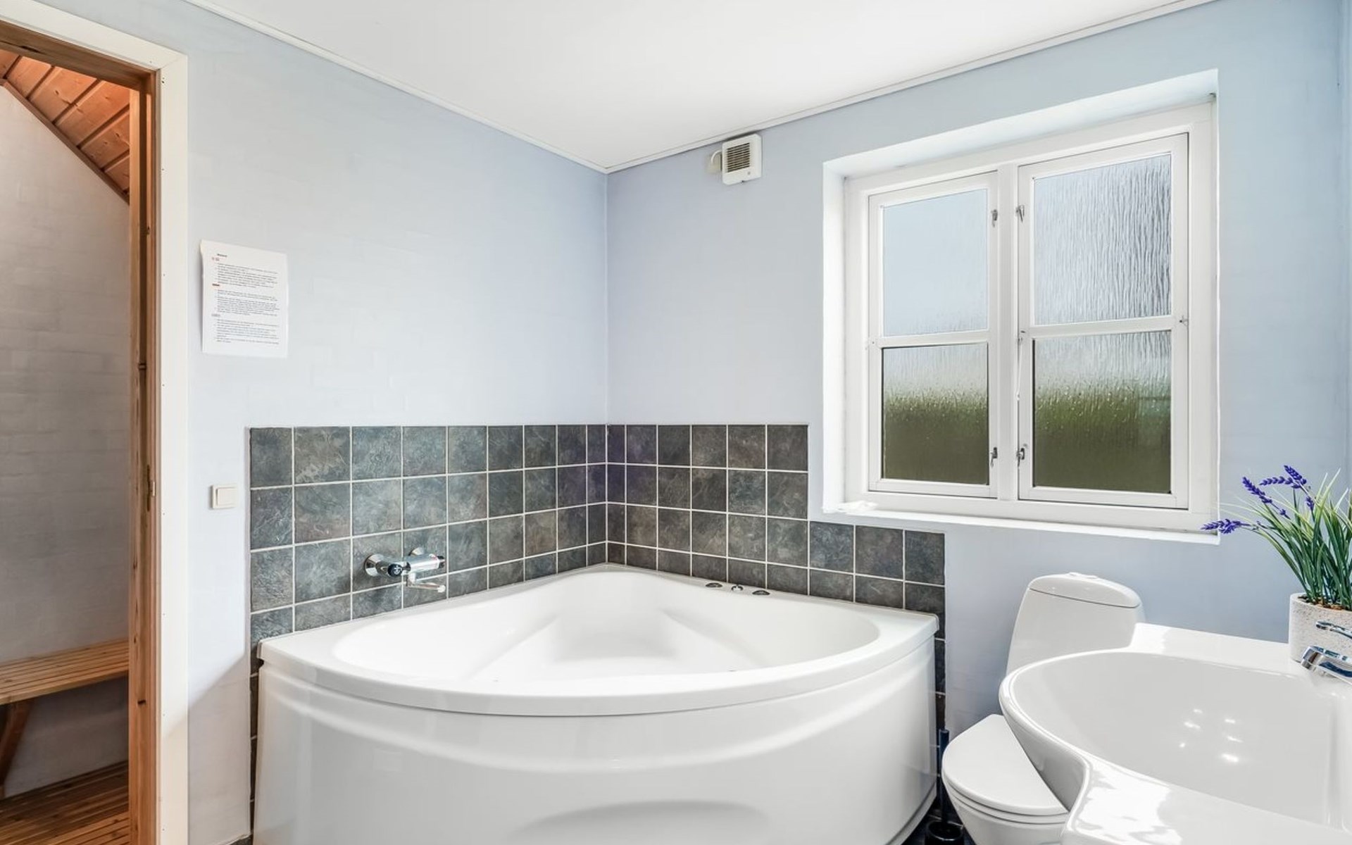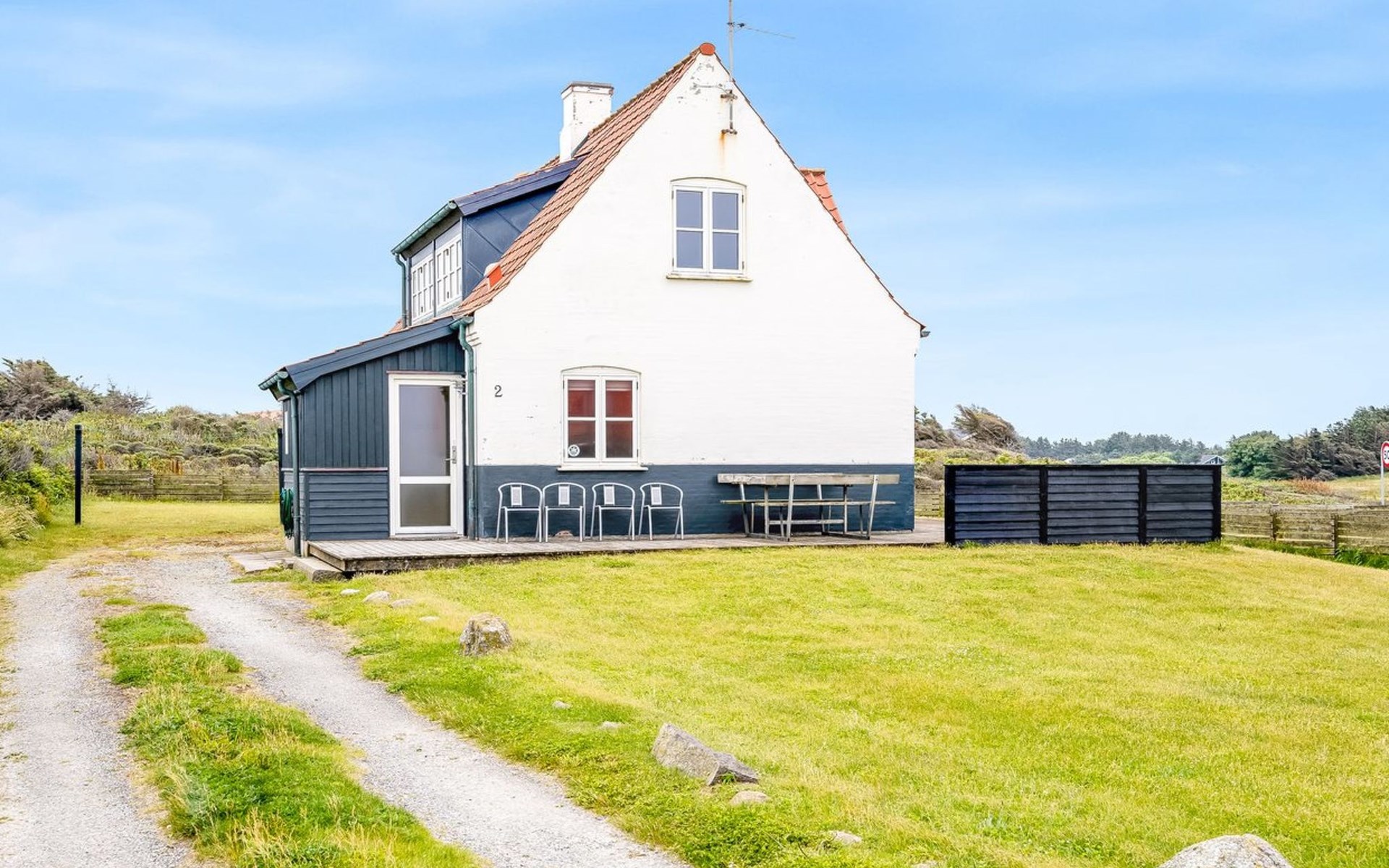 Single-family house, built in 2004. 60 m from the sea. Private: property 870 m2, well-kept garden. Terrace (30 m2). In the house: sauna, washing machine, tumble dryer. Parking at the house. Grocery 6 km. The owner does not accept any youth groups.