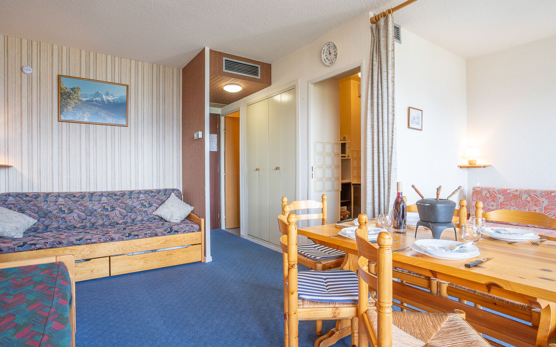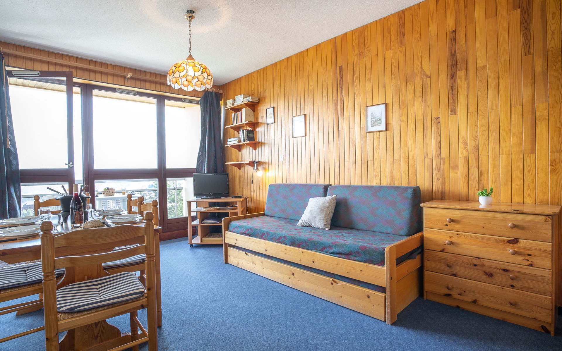 ATTENTION: The keys of the accommodation of Toussuire are handed over at the Interhome du Corbier office 4 km away. For arrivals by bus, please contact us 48h in advance to organize your key delivery. Extra charge service possible 30 €. Small apartment house "Cote Louve", 3 storeys. Above La Toussuire, in an elevated position, 400 m from the skiing area, south facing position. In the house: lift, storage room for skis. In Winter: please take snow chains. Parking. Shop 350 m, grocery 150 m, restaurant, bar 300 m, bus stop 350 m, railway station "St Jean de Maurienne" 15 km. Chair lift 150 m, slopes 450 m, ski bus stop 50 m. Please note: ski bus (free of charge). The keys‘ handover takes place by the agency INTERHOME DU CORBIER in LA STATION VOISINE, 4 km.