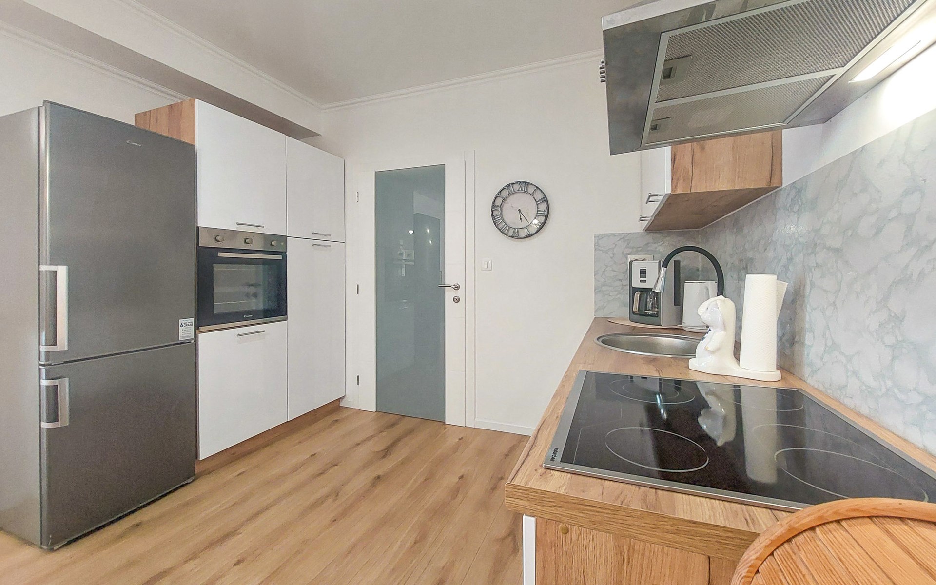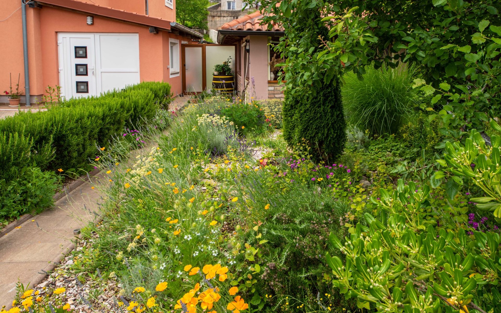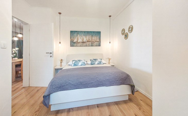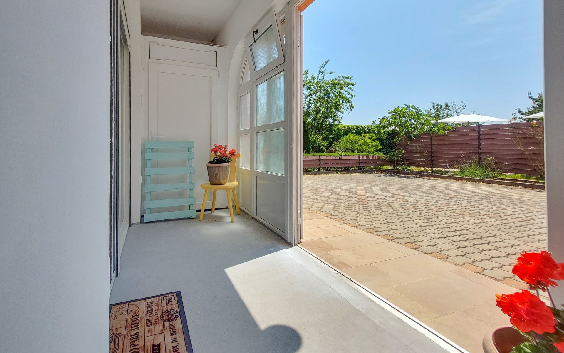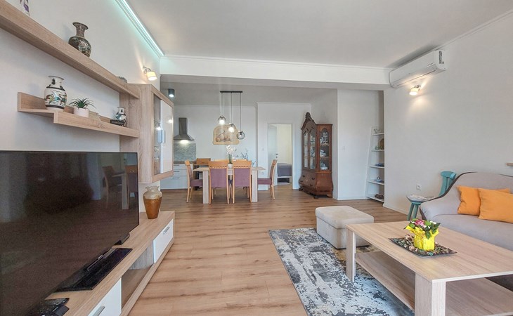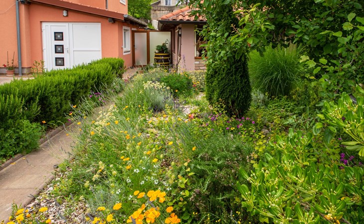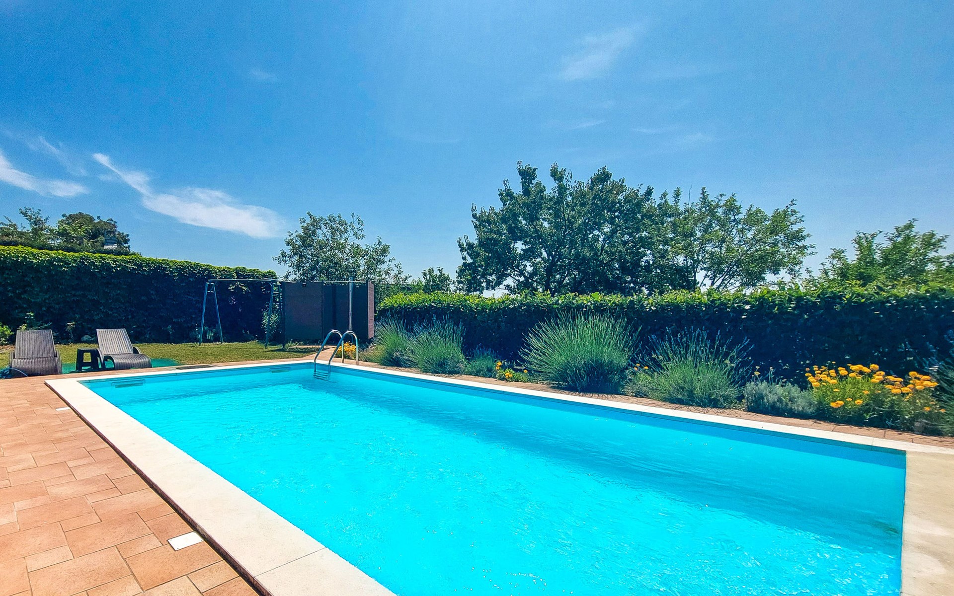 Kastav 6 km from Opatija: Comfortable 2-family house "Adrian". In the hamlet Krajevac 3 km from the centre of Viškovo, 3.3 km from the centre of Kastav, 9 km from the centre of Opatija, in a sunny position, 8 km from the sea. For shared use: property 2'000 m2 (fenced), well-kept garden with lawn 300 m2, flowers, swimming pool angular with privacy (8 x 4 m, depth 140 cm, seasonal availability: 15.May. - 20.Sep.). WC in the pool area, outdoor shower, poolhouse with fridge, table tennis, barbecue, children's playground (swing), pool maintenance by the owner/gardener. In the house: internet access. Parking at the house on the premises. Supermarket 3 km, shopping centre 3 km, restaurant 2.5 km, bakery 3 km, café 3 km, bus stop 500 m, pebble beach 8 km (small), public bathing area 10 km, concrete beach 8 km. Groups of teenagers on request only.