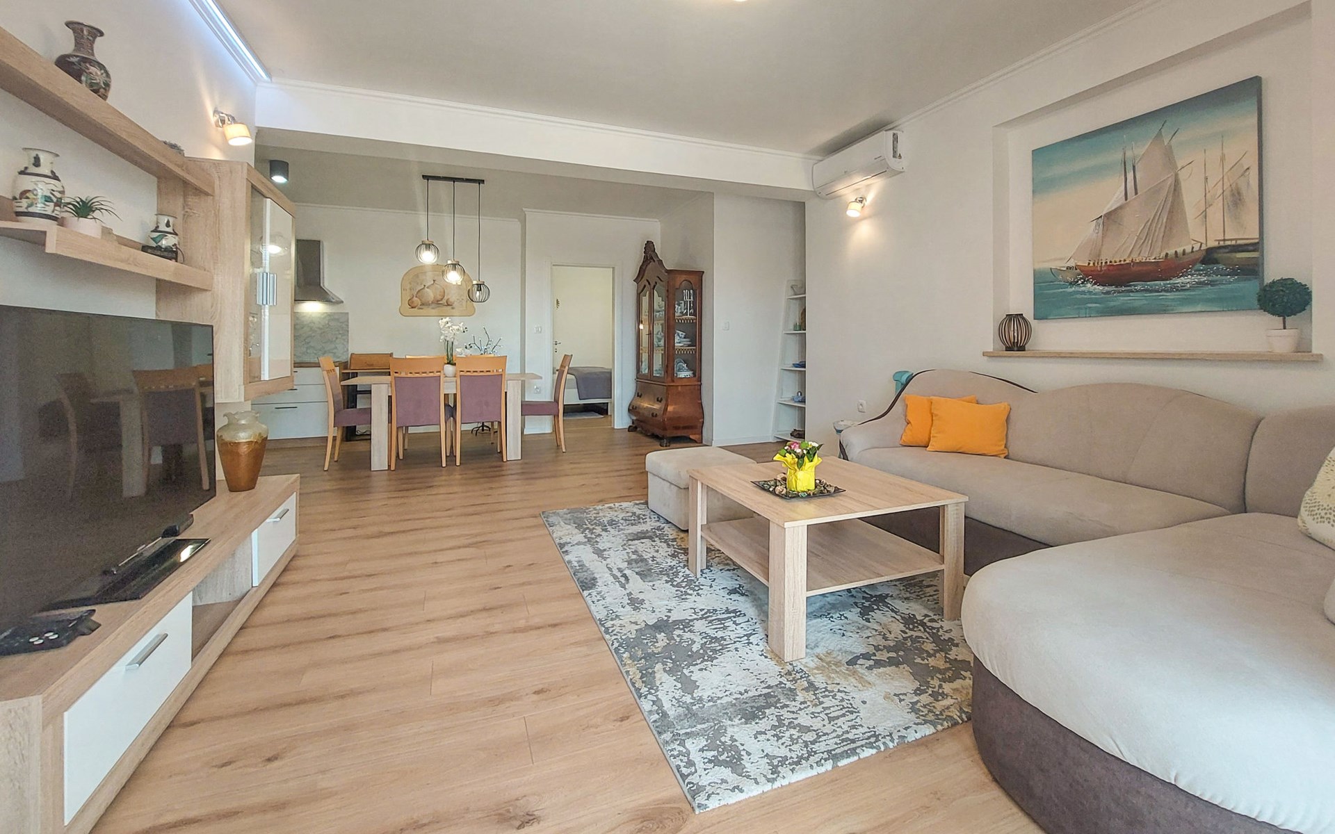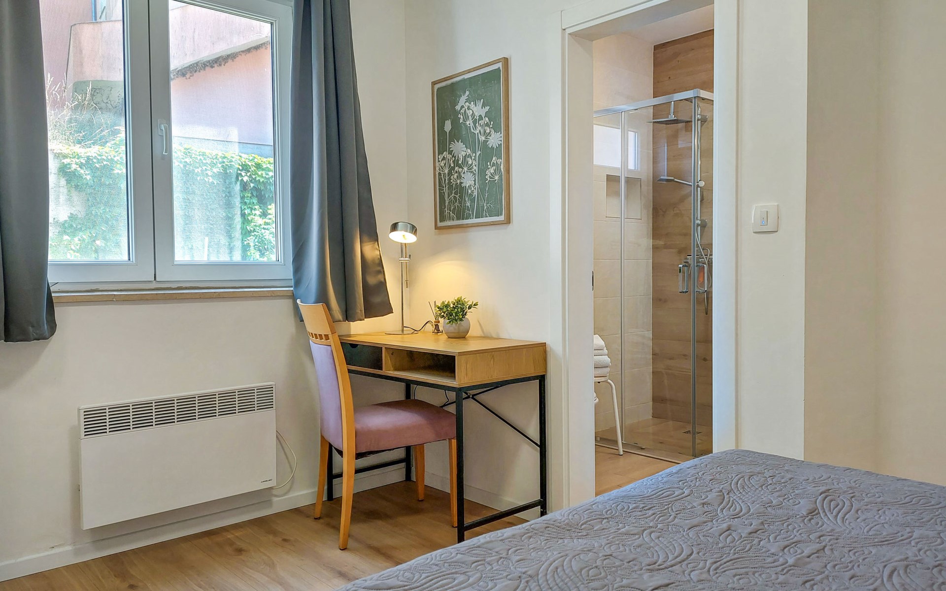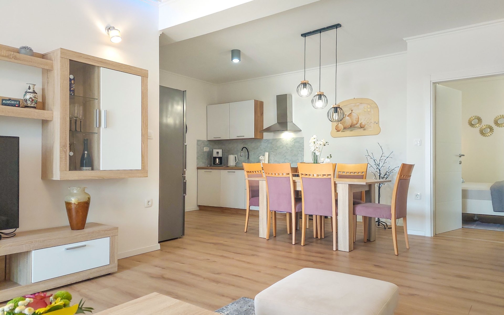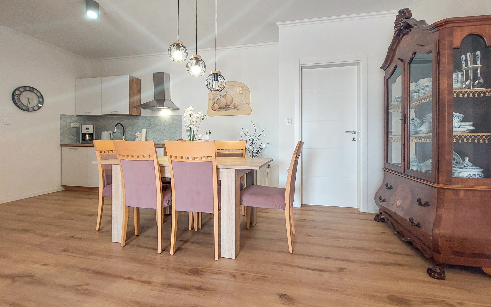 Kastav 6 km from Opatija: Comfortable 2-family house "Adrian". In the hamlet Krajevac 3 km from the centre of Viškovo, 3.3 km from the centre of Kastav, 9 km from the centre of Opatija, in a sunny position, 8 km from the sea. For shared use: property 2'000 m2 (fenced), well-kept garden with lawn 300 m2, flowers, swimming pool angular with privacy (8 x 4 m, depth 140 cm, seasonal availability: 15.May. - 20.Sep.). WC in the pool area, outdoor shower, poolhouse with fridge, table tennis, barbecue, children's playground (swing), pool maintenance by the owner/gardener. In the house: internet access. Parking at the house on the premises. Supermarket 3 km, shopping centre 3 km, restaurant 2.5 km, bakery 3 km, café 3 km, bus stop 500 m, pebble beach 8 km (small), public bathing area 10 km, concrete beach 8 km. Groups of teenagers on request only.