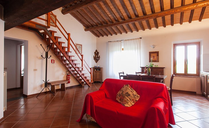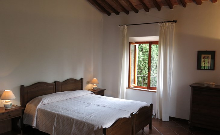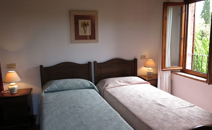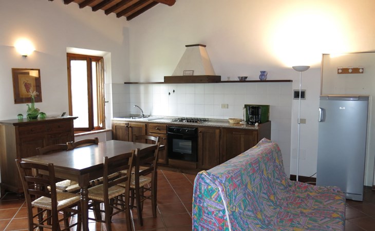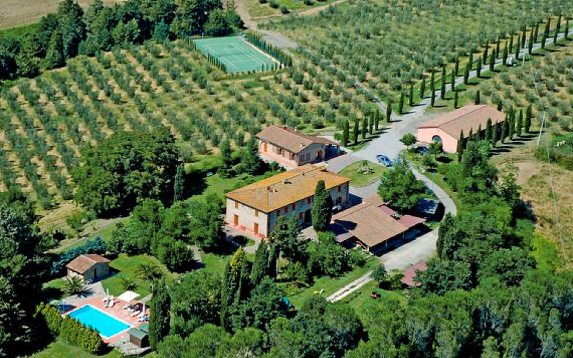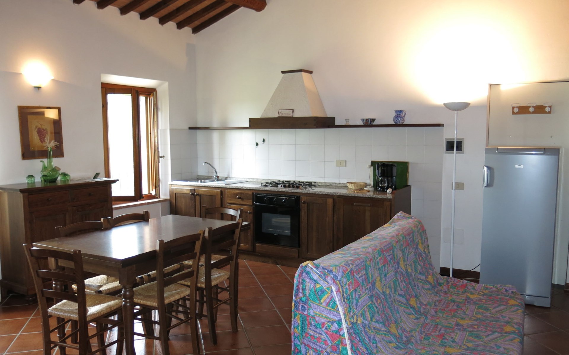 Agriturismo, 2 storeys. 7 houses in the residence. 9 apartments in the residence. 5 km from the centre of Peccioli, 15 km from the centre of Lajatico, in a quiet position on top of a hill, 50 km from the sea. For shared use: property 5 ha with trees, meadow, swimming pool (16 x 8 m, depth 140 cm, seasonal availability: 24.Apr. - 02.Oct.). Shower/WC in the pool area, outdoor shower, tennis (extra), garden furniture, children's playground. In the house: table tennis, table football, washing machine (for shared use, extra). 900 m long motor access (via unmade road). Roofed, parking on the premises. Shop 2.5 km, supermarket 5 km, bus stop 1 km, natural swimming pond 10 km. Riding stable 5 km, walking paths from the house 2 km. Nearby attractions: Volterra 30 km, Pisa 50 km. Hiking paths: Mountain Bike Le Serre 8 km, Bosco di Ortaglia 8 km. Local sale of farm products.