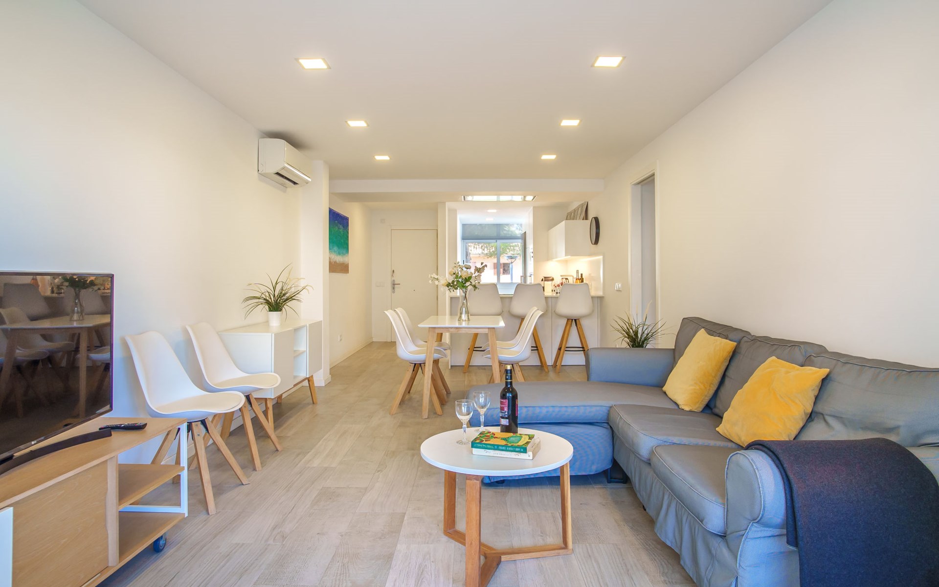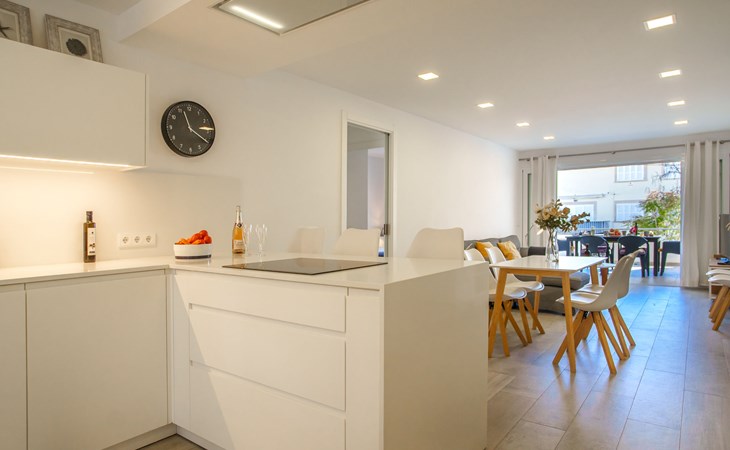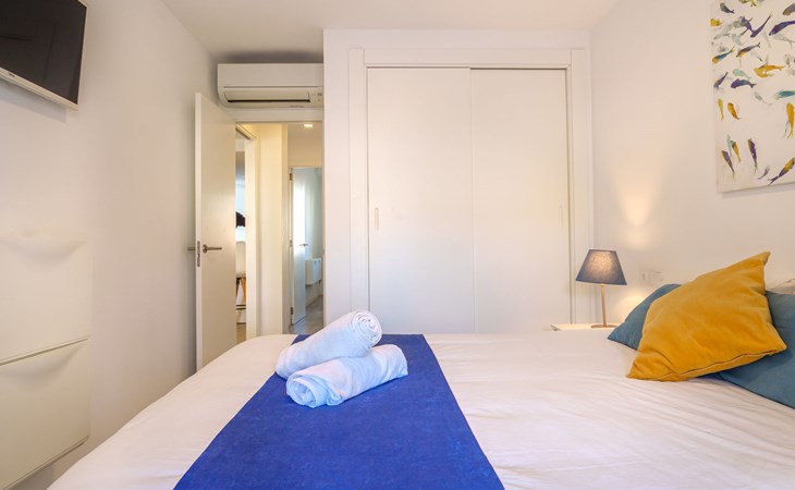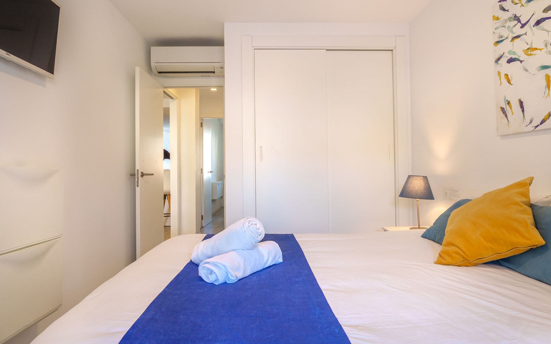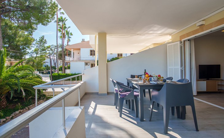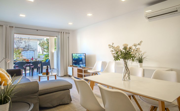 Very modern, comfortable apartment block "Bon Sol 100m Sandy Beach", renovated. In the resort 2 km from the centre of Port d'Alcúdia, excellent location: right in the centre but still quiet, 1.5 km from the edge of the forest, 60 m from the sea, 60 m from the beach, road to cross. For shared use: outdoor shower, parking at the house on the premises. Parking space or garage only for small to medium-sized cars. Dimension: height 180 cm. Shop, grocery 500 m, supermarket 900 m, restaurant, bar 100 m, 20 minute walk to the centre, bus stop "Ciutat Blanca 1 (3060)" 400 m, ferry "Port d'Alcúdia" 3.2 km, sandy beach "Playa de Alcúdia" 60 m. Sports harbour 2.5 km, marina 2.5 km, golf course (18 hole) 5.6 km, walking paths from the house 1.5 km, cycle lane 1 km. Nearby attractions: Alcúdia Old Town 3.6 km, Playa de Muro 3 km, Can Picafort 8 km, Palma City 52 km, Playa y Faro de Formentor 25 km, Mallorca Fashion Outlet & Cinemas 43 km. Well-known lakes can easily be reached: Lago Mayor. Hiking paths: Puig de Sant Martí, Albufera de Mallorca, Atalaya de Alcúdia. Please note: no lift. Object suitable for 4 adults. The owner does not accept any youth groups. Airfield 60 km from the property. Additional accommodations can be booked. Property ref. ES8356.171.1 is situated on the same property. Neighbourhood highly sensitive to noise. Quietness and good behaviour expected.