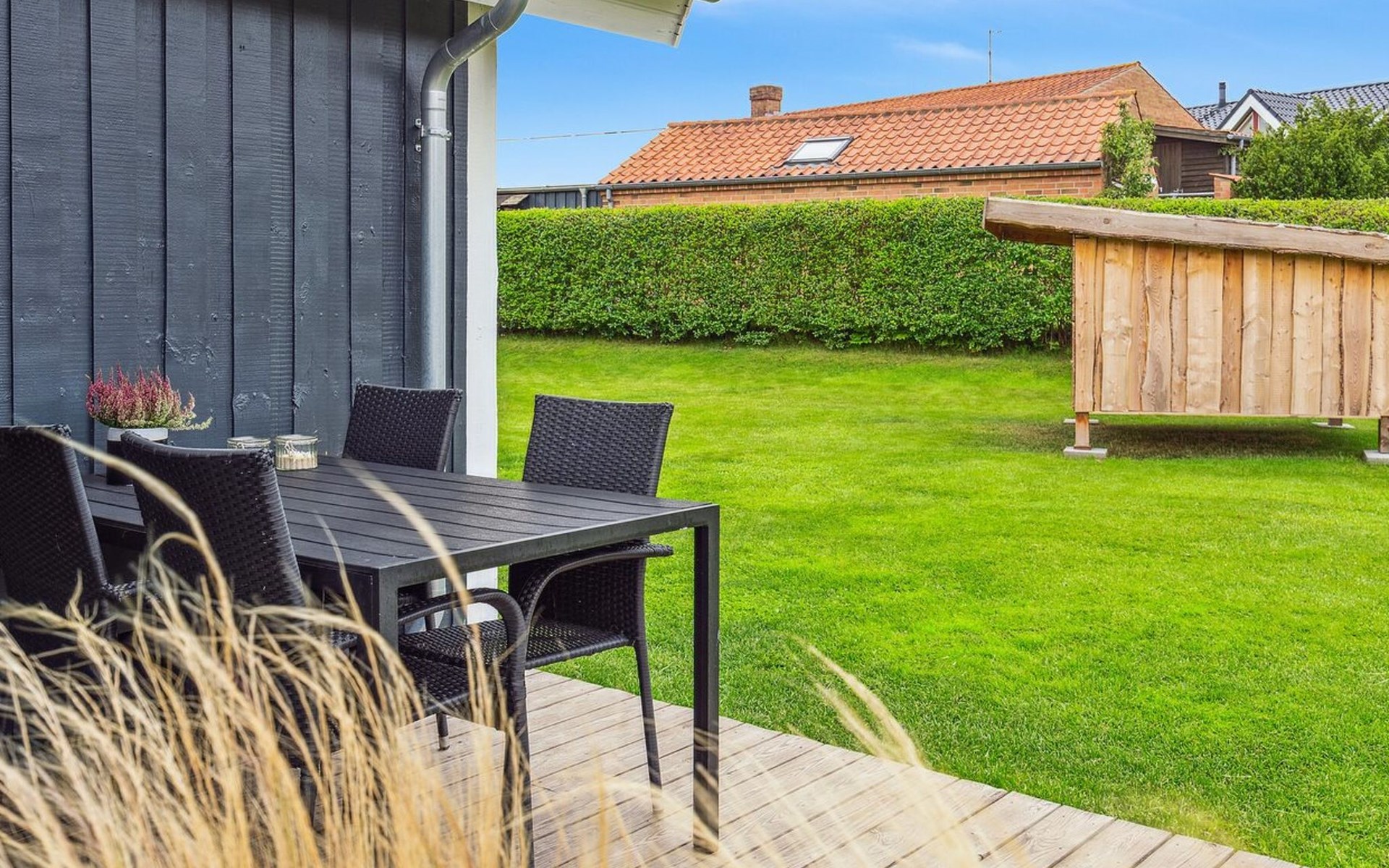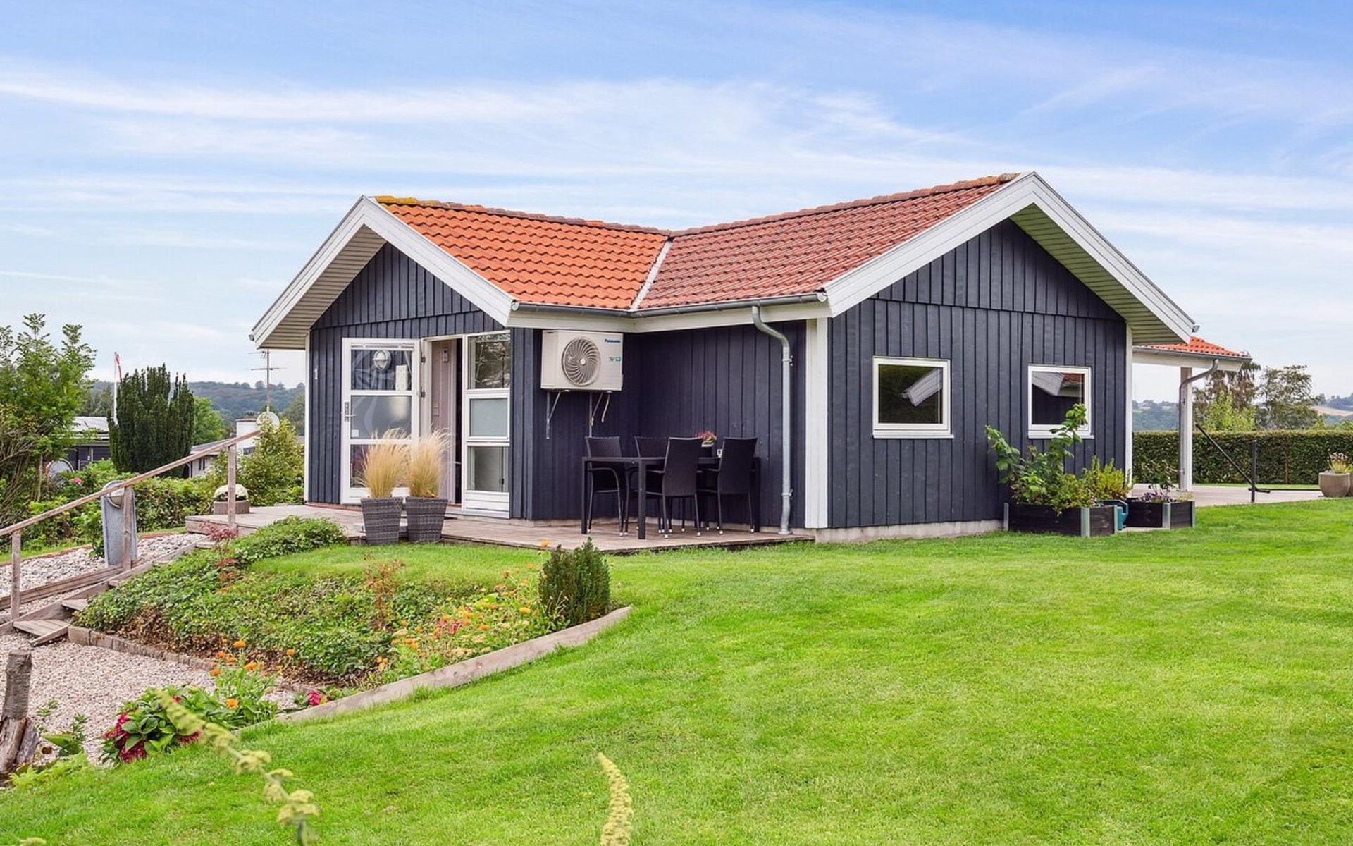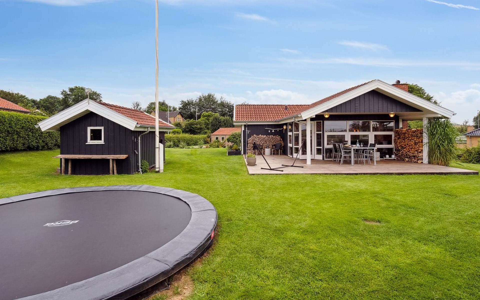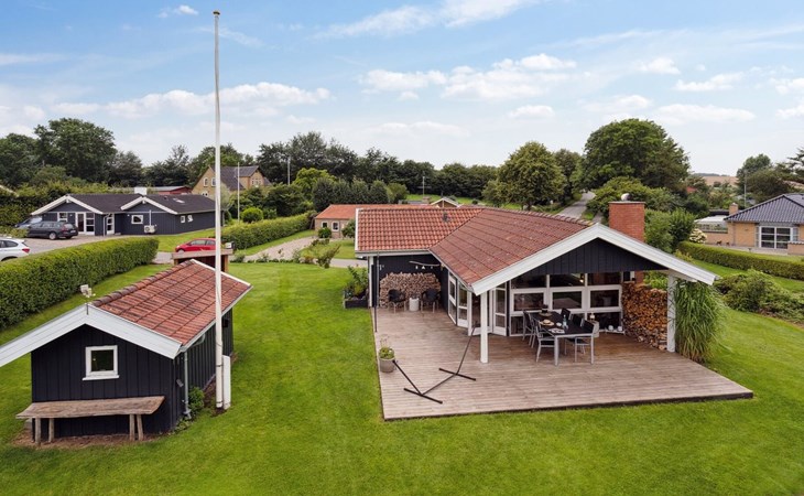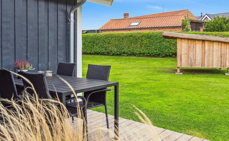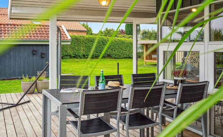 Single-family house, built in 1994. 300 m from the sea. Private: property 874 m2, well-kept garden. Barbecue. In the house: trampoline, washing machine. Parking at the house. Grocery 3 km. Golf course 12 km. The owner does not accept any youth groups.