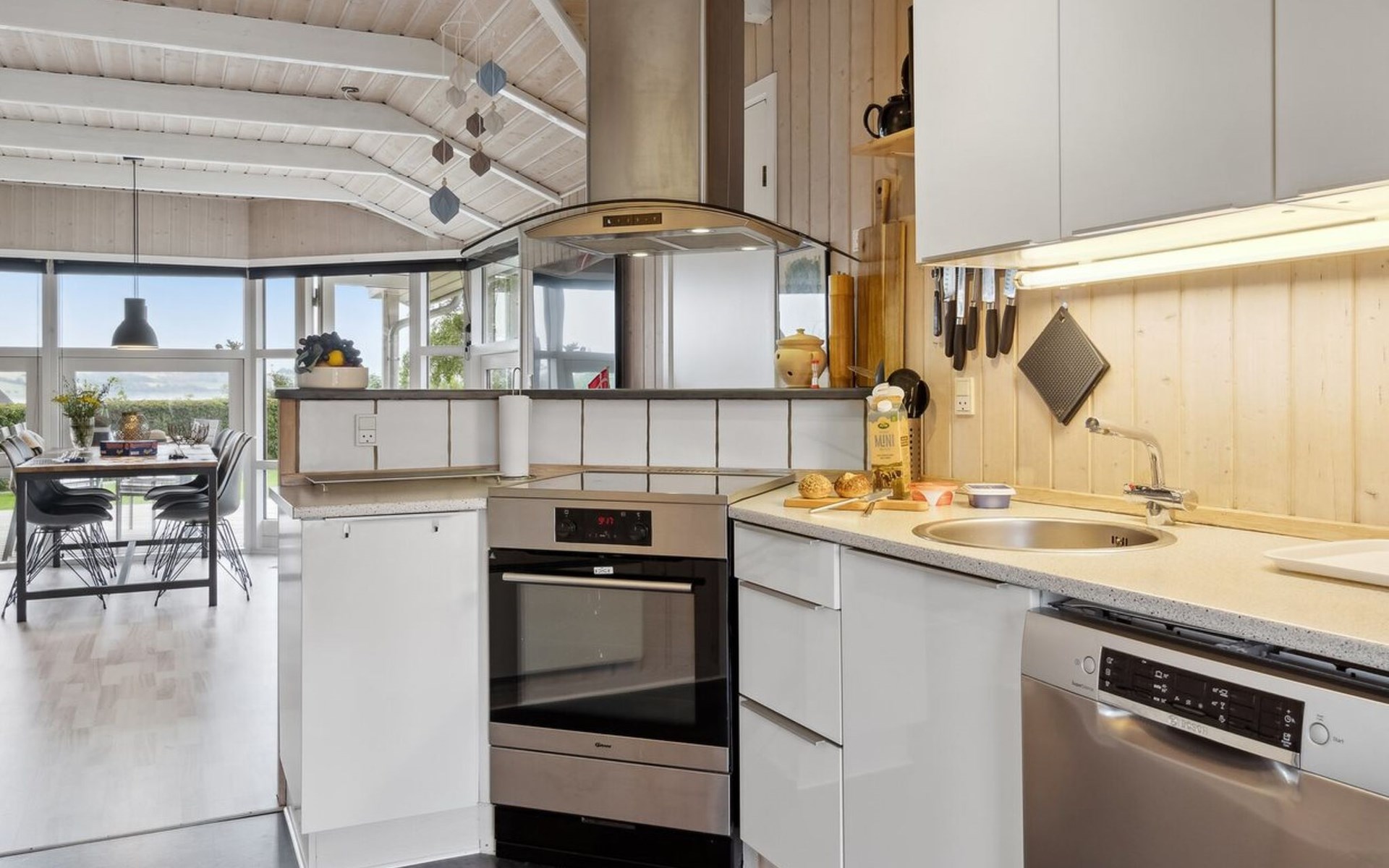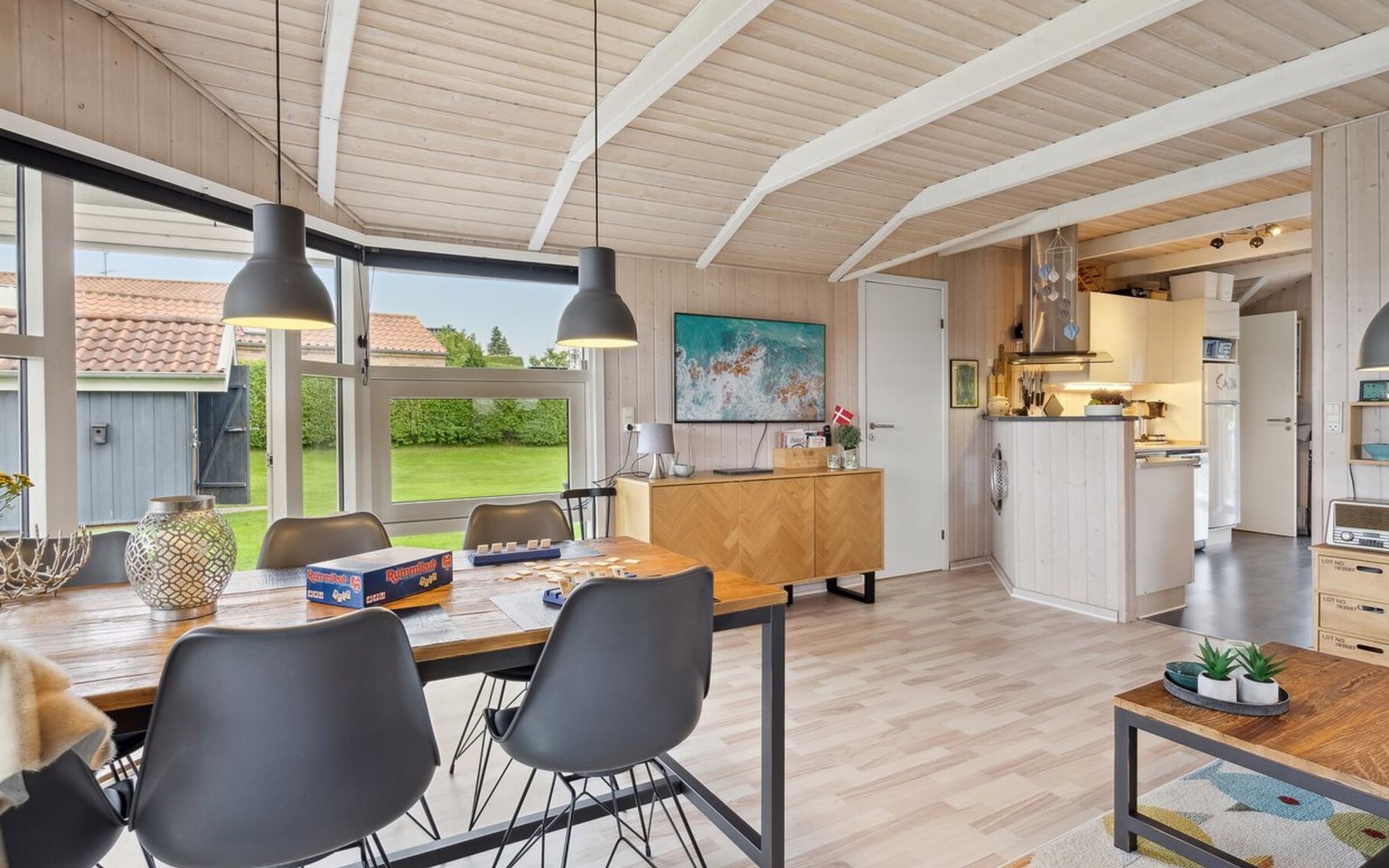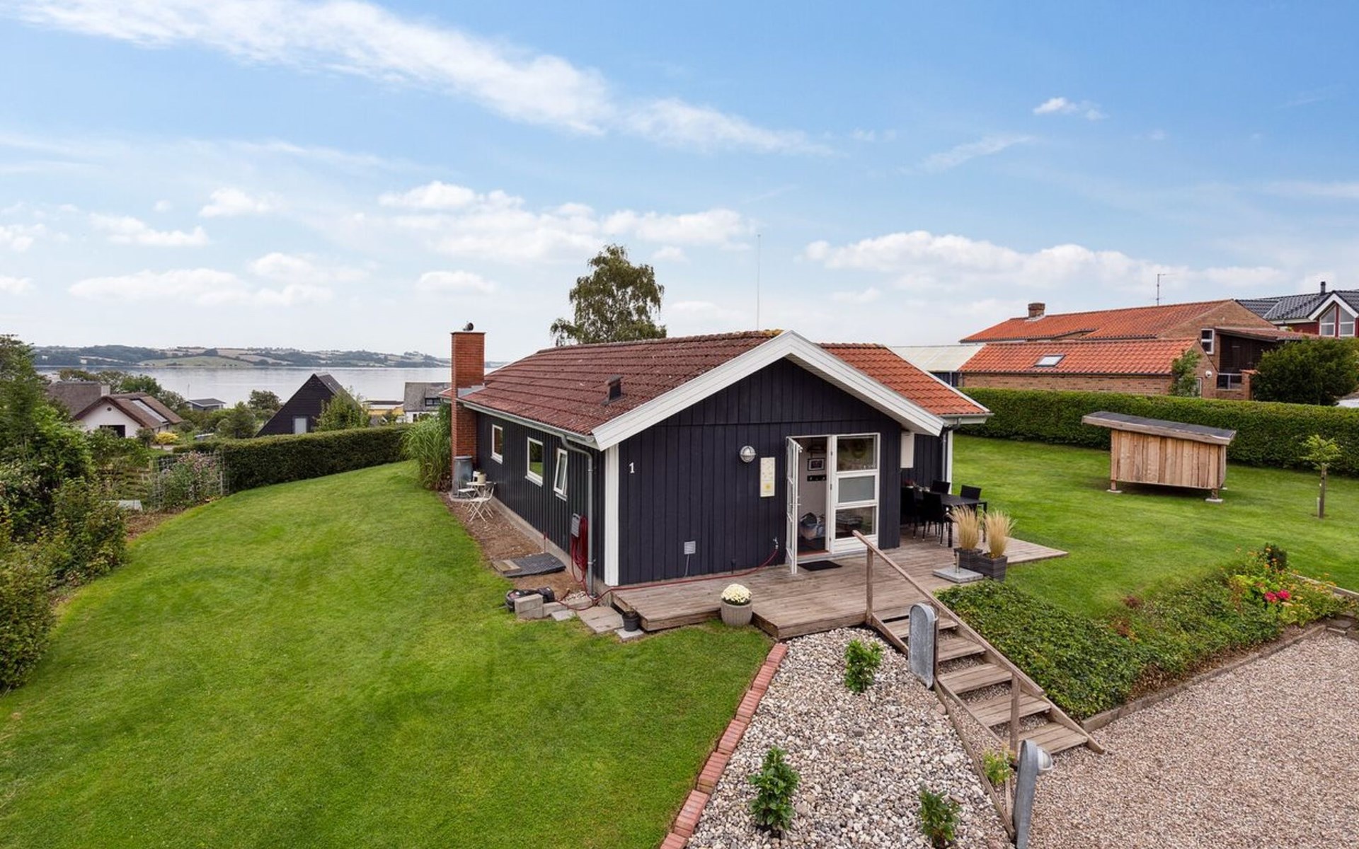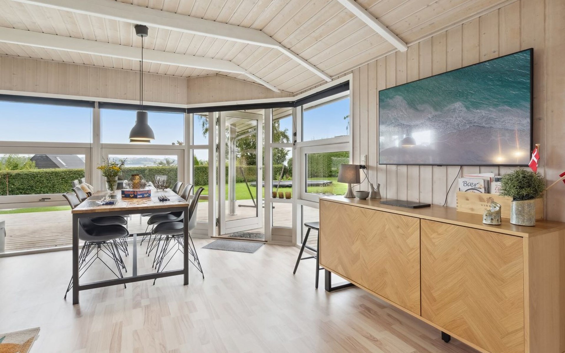 Single-family house, built in 1994. 300 m from the sea. Private: property 874 m2, well-kept garden. Barbecue. In the house: trampoline, washing machine. Parking at the house. Grocery 3 km. Golf course 12 km. The owner does not accept any youth groups.