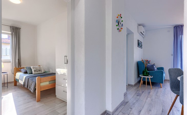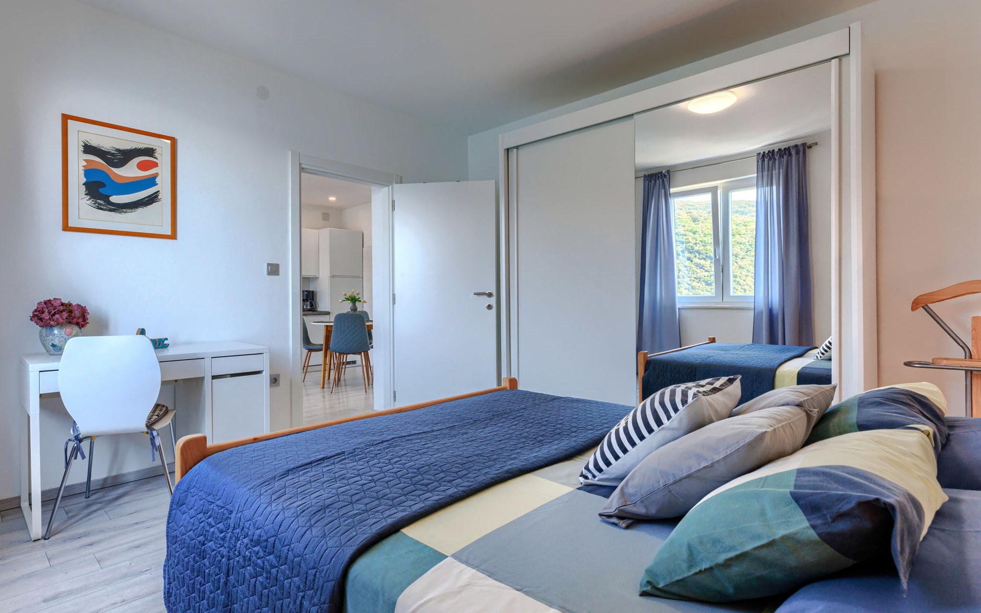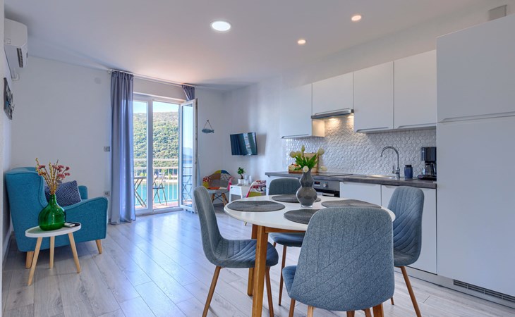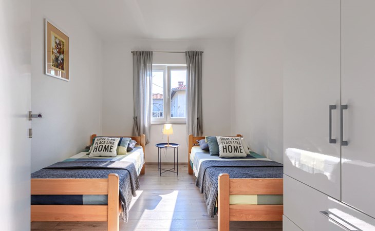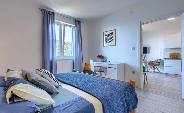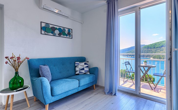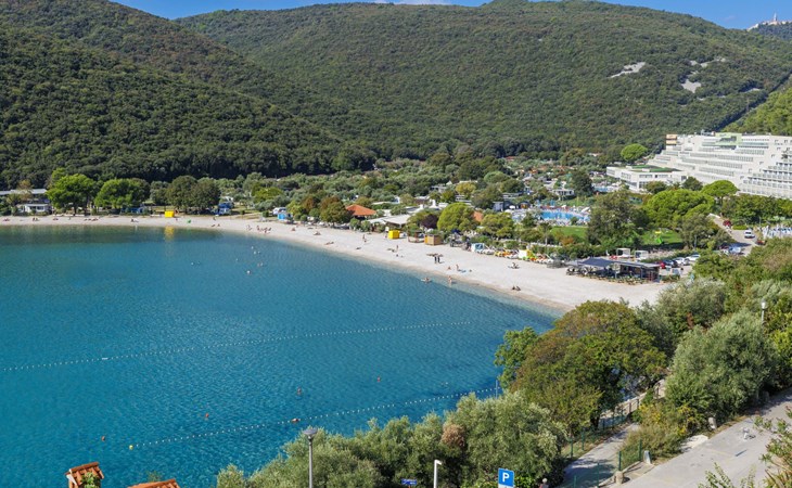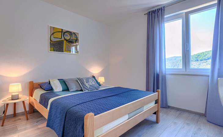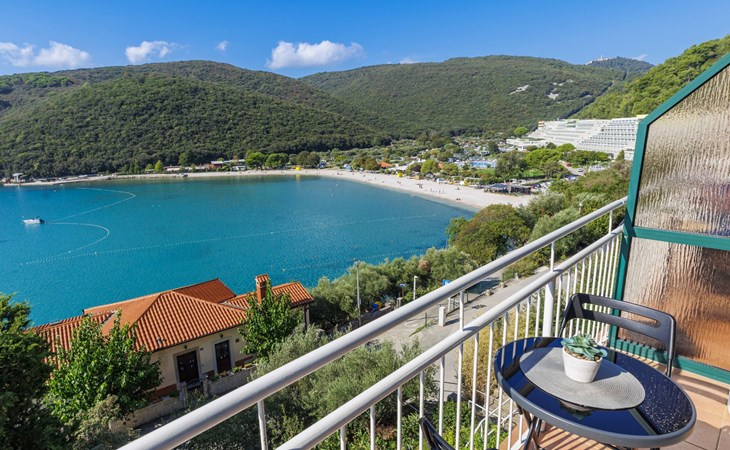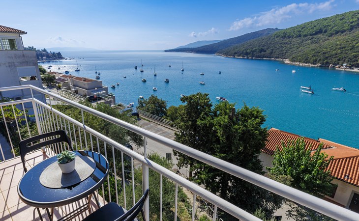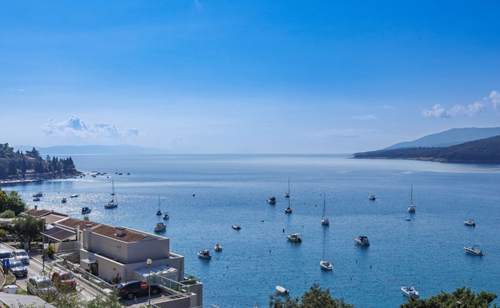 House "Boris". 250 m from the centre of Rabac, 5 km from the centre of Labin, on a slope, 40 m from the sea. For shared use: property 600 m2 with trees, public parking on the road. Shop 100 m, bus stop 550 m, pebble beach 150 m.