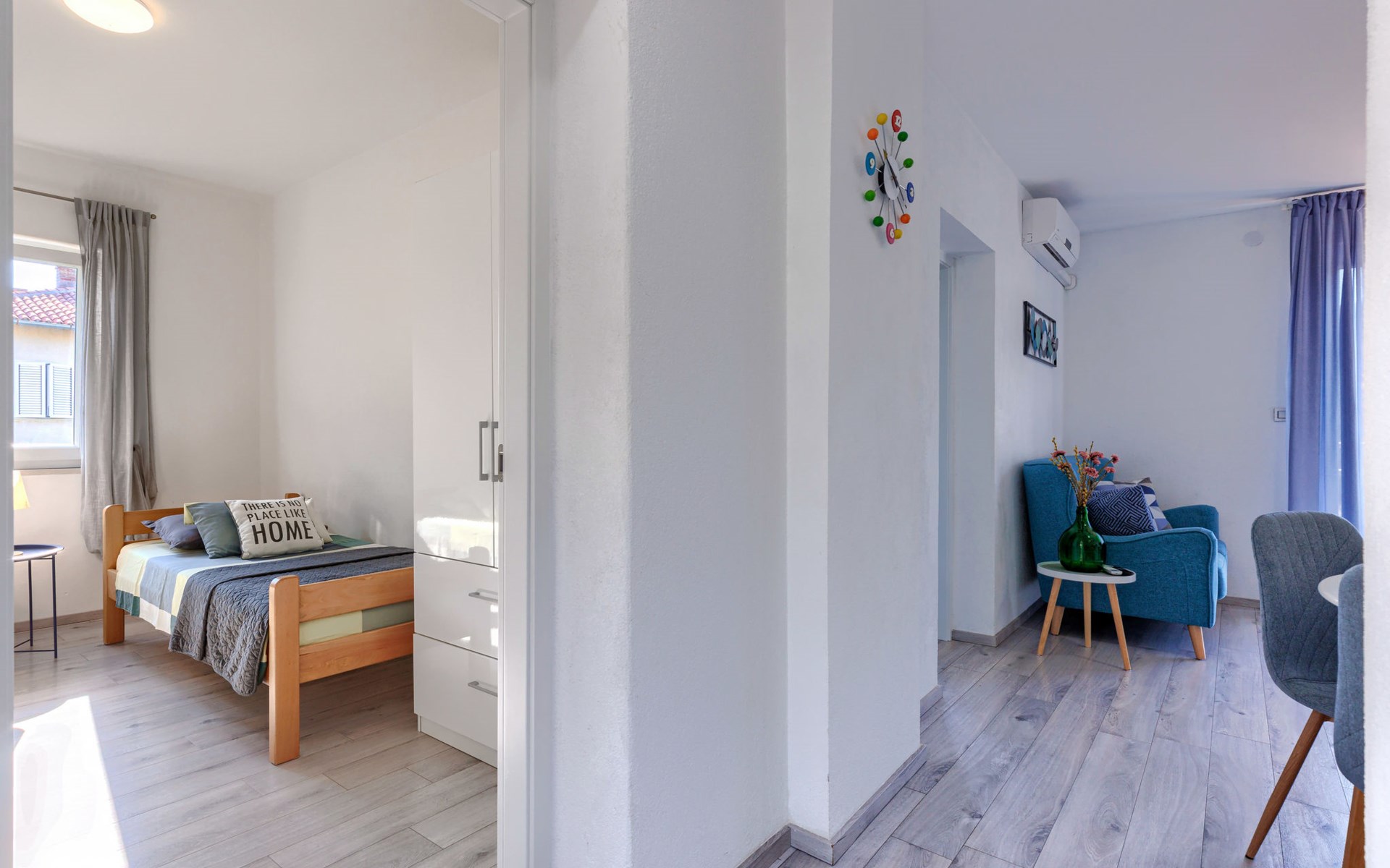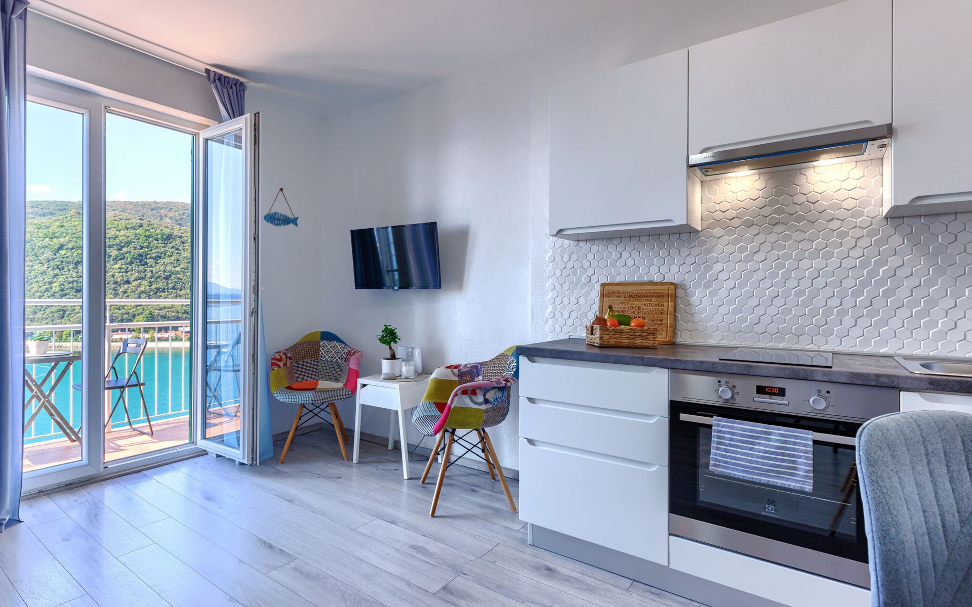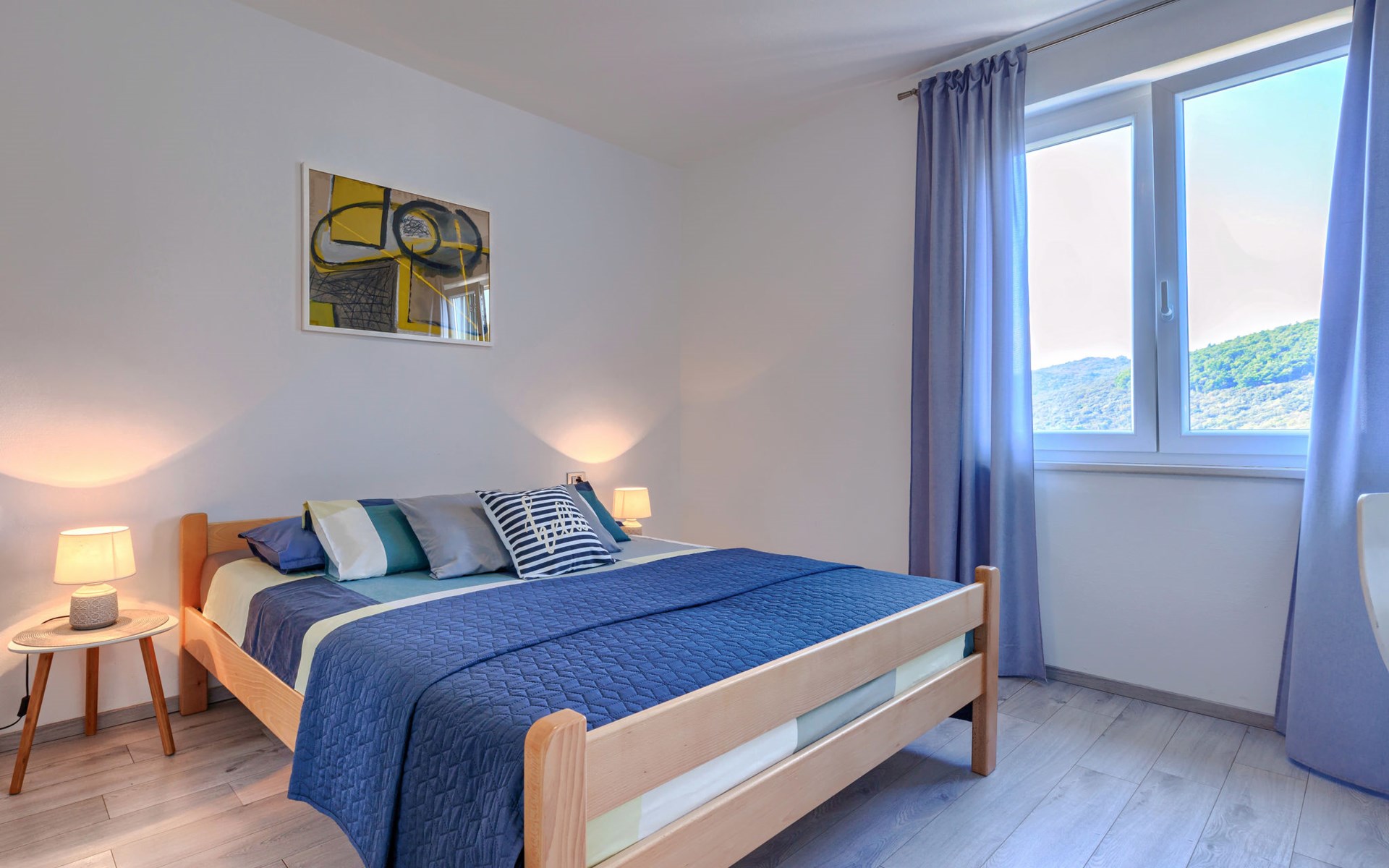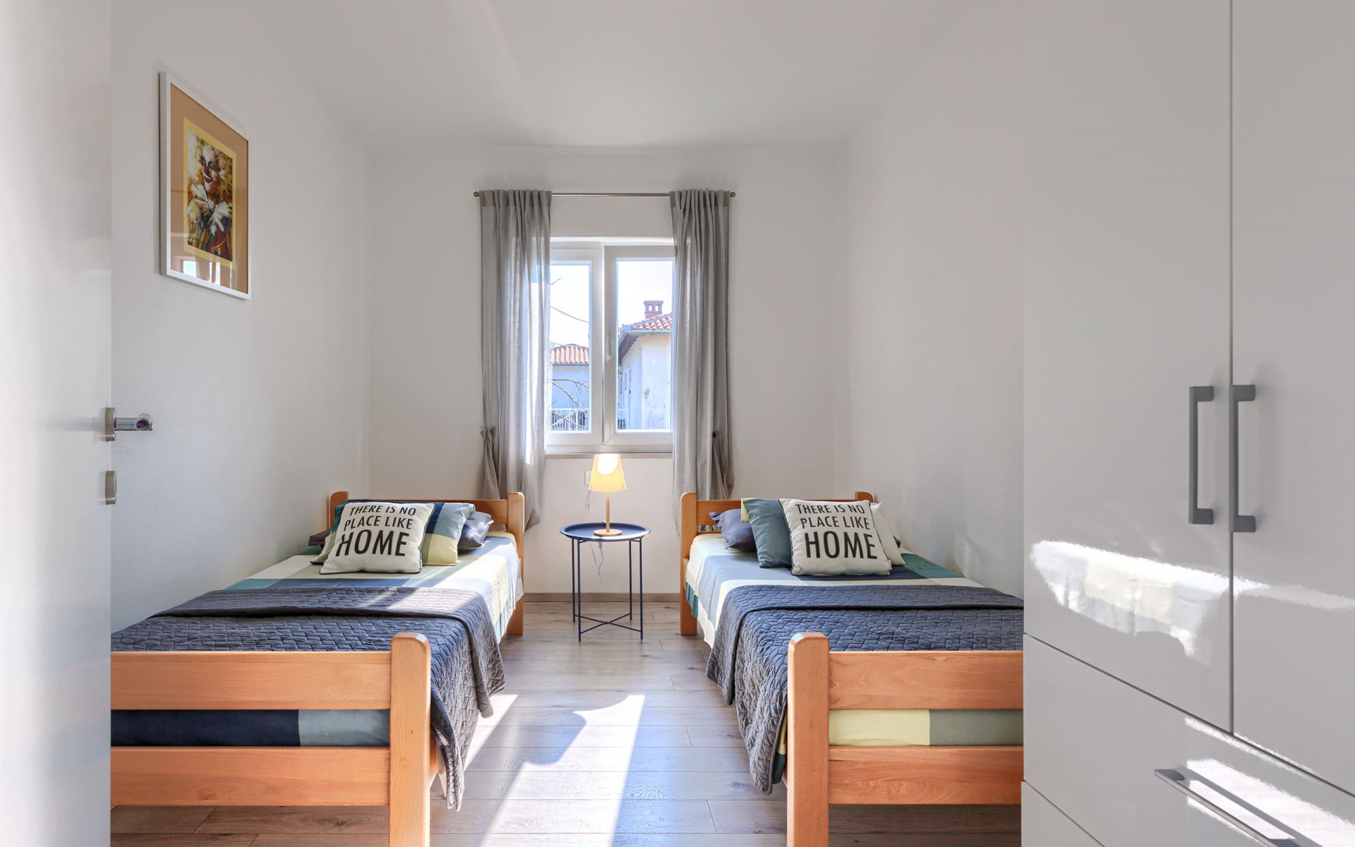 House "Boris". 250 m from the centre of Rabac, 5 km from the centre of Labin, on a slope, 40 m from the sea. For shared use: property 600 m2 with trees, public parking on the road. Shop 100 m, bus stop 550 m, pebble beach 150 m.
