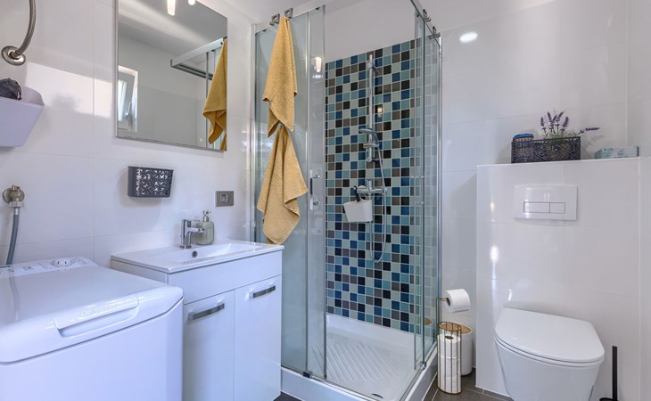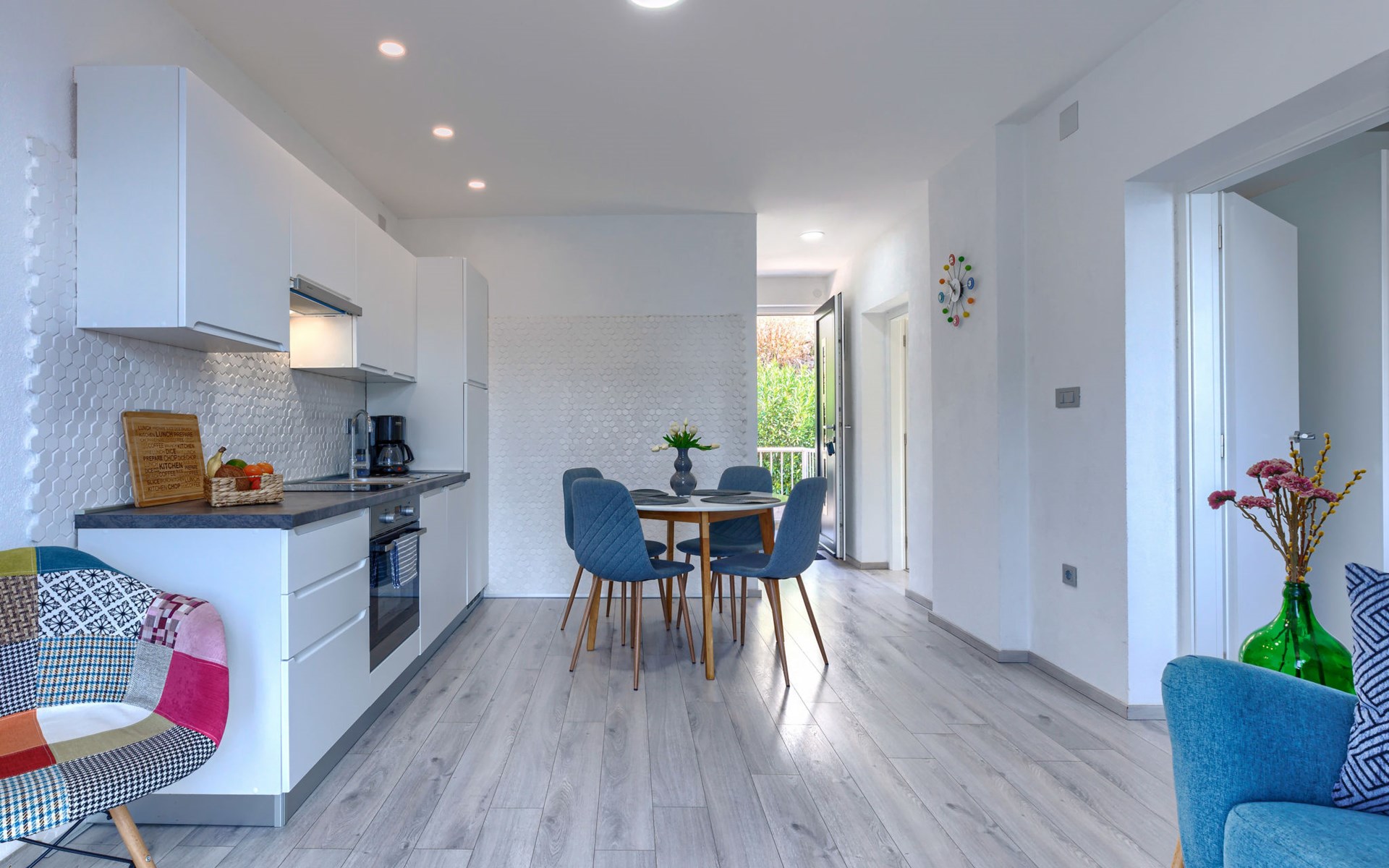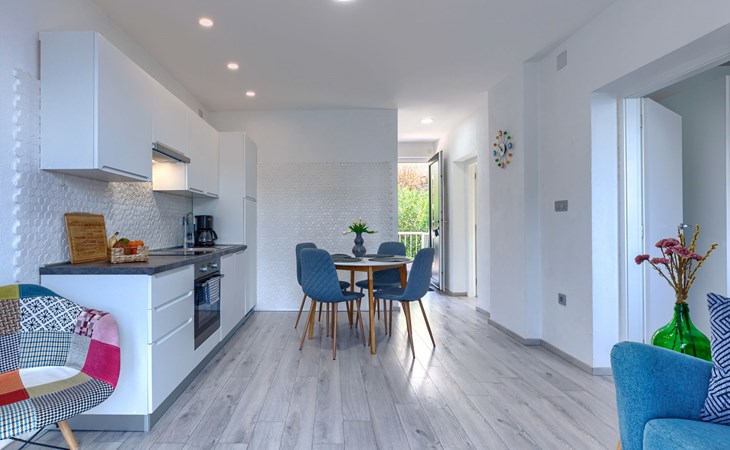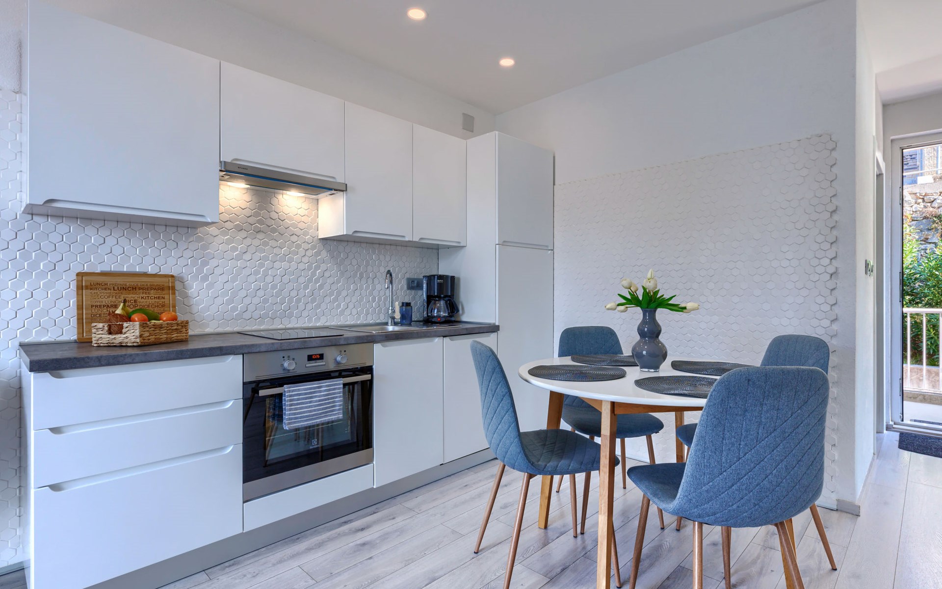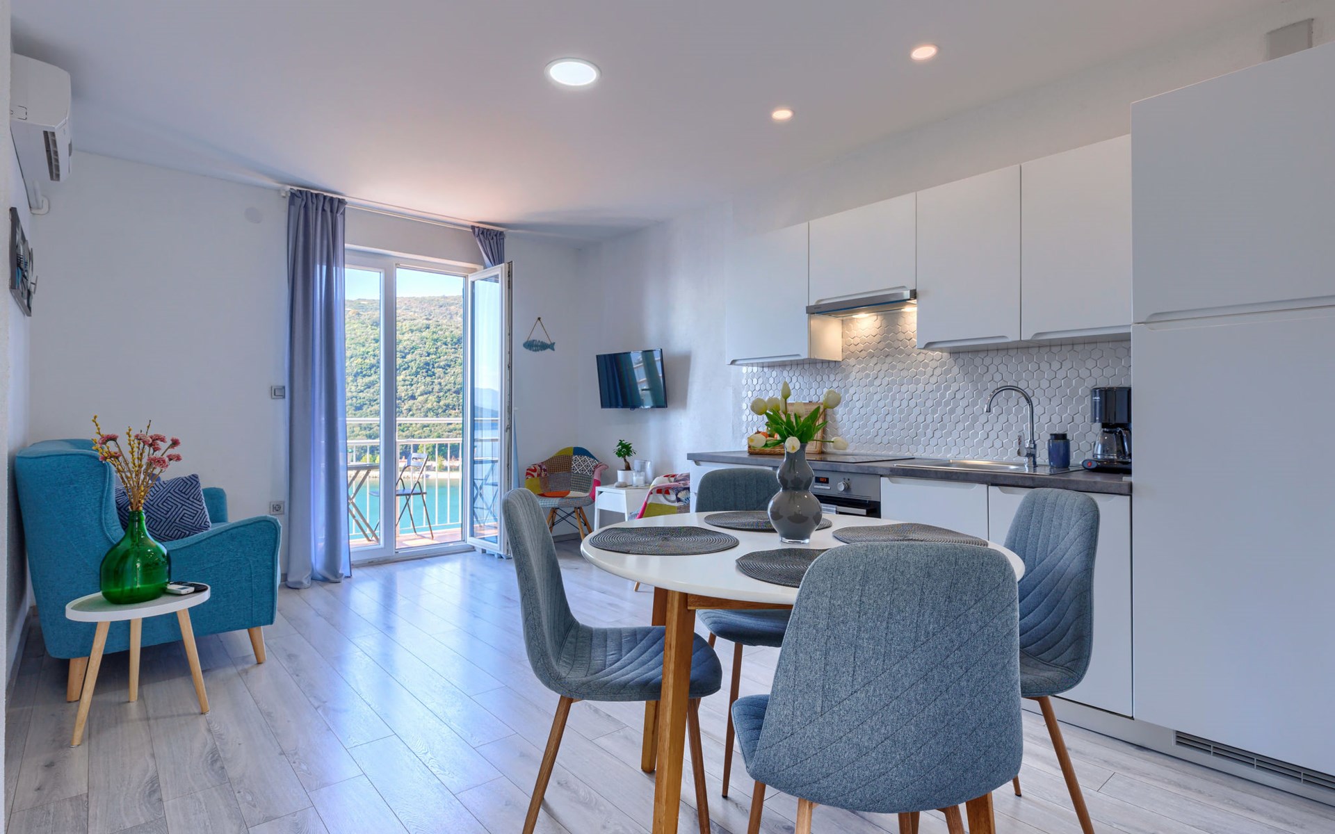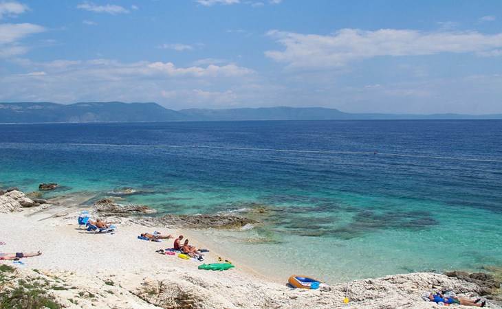 House "Boris". 250 m from the centre of Rabac, 5 km from the centre of Labin, on a slope, 40 m from the sea. For shared use: property 600 m2 with trees, public parking on the road. Shop 100 m, bus stop 550 m, pebble beach 150 m.