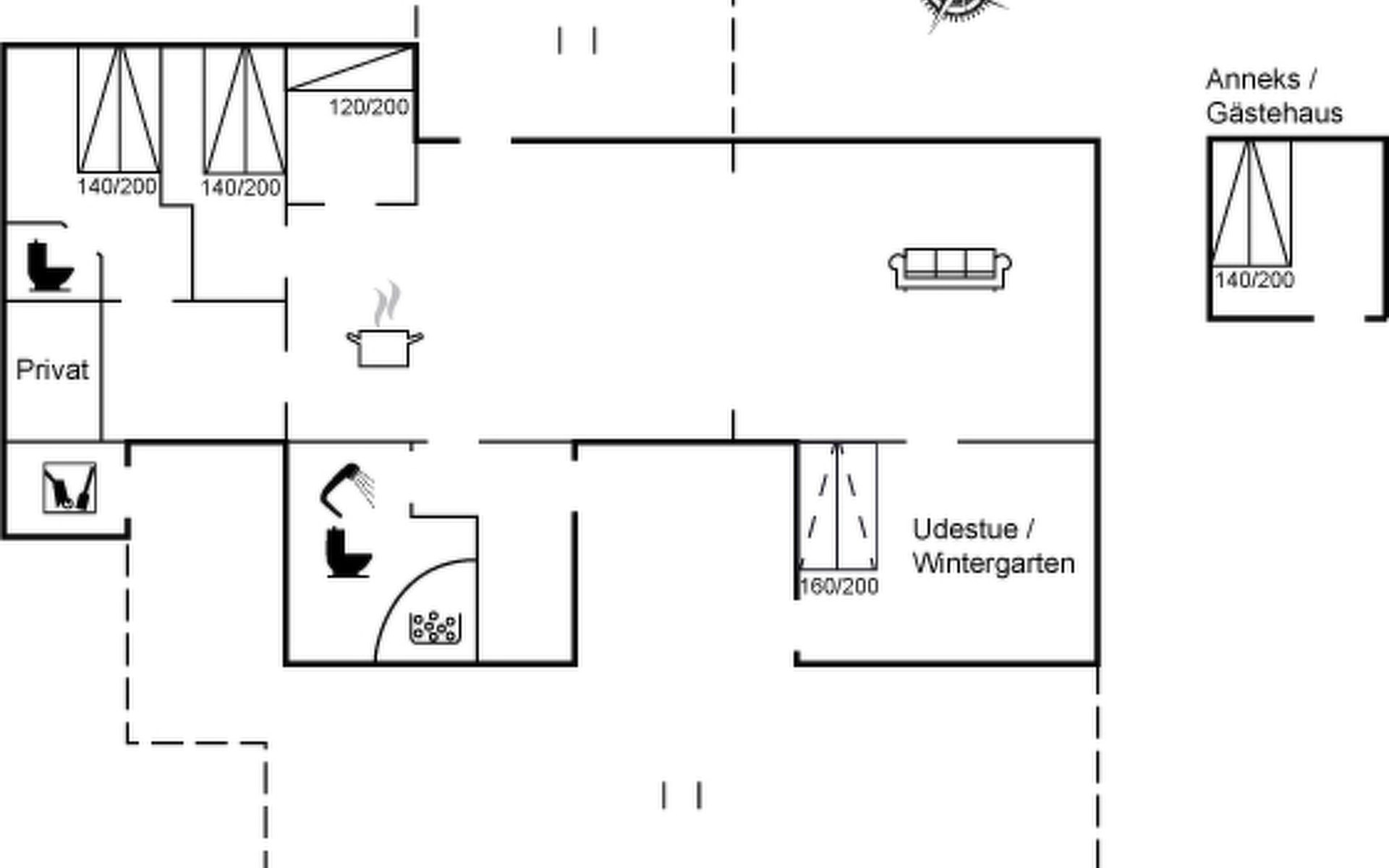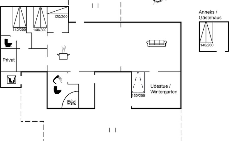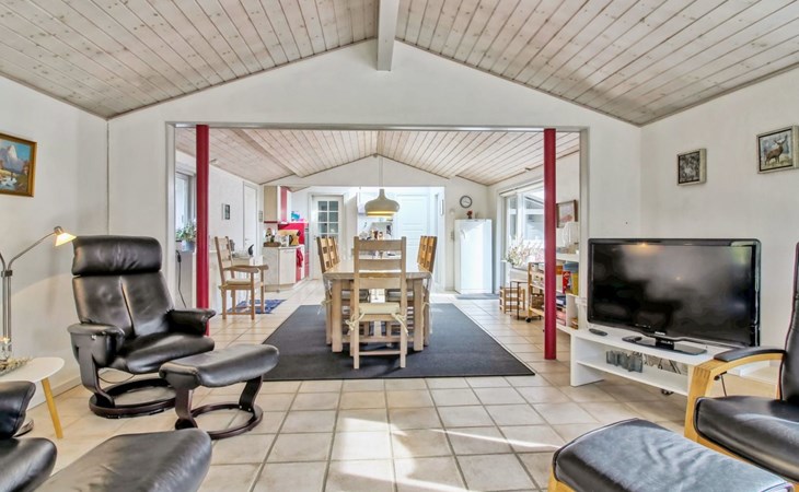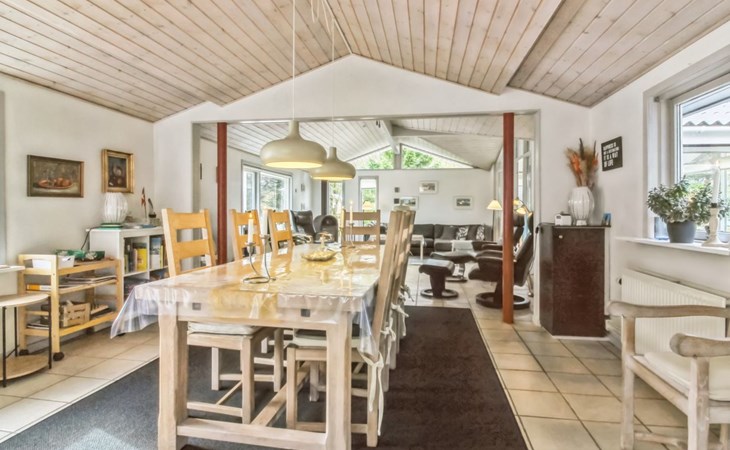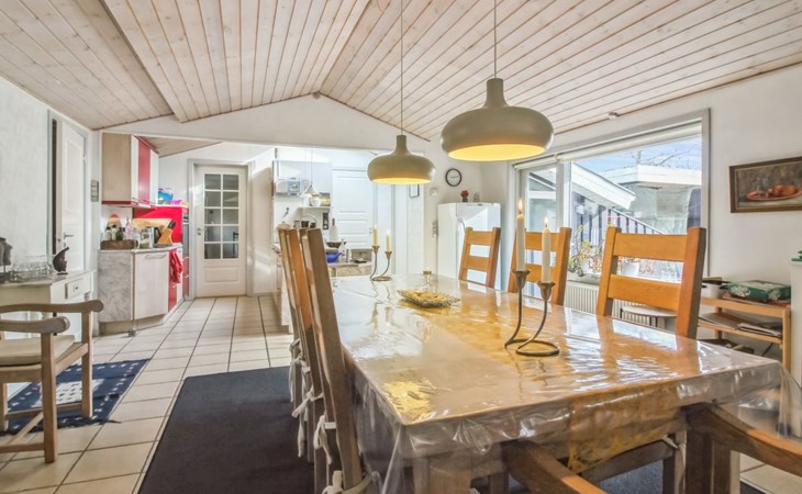 Single-family house, built in 1968. 850 m from the sea. For shared use: garden. Private: natural state property 2'511 m2, garden (fenced). Terrace (100 m2), children's playground. In the house: washing machine. Parking at the house. Carport. Grocery 5 km. The owner does not accept any youth groups.