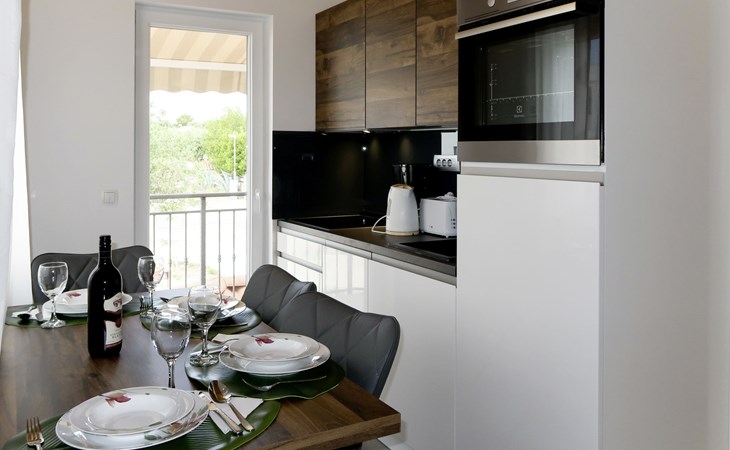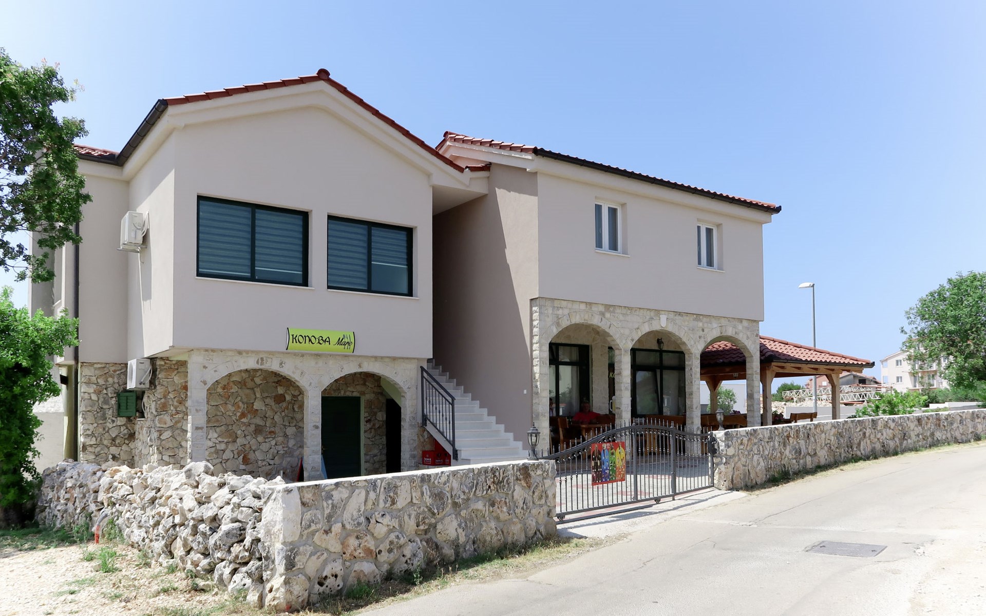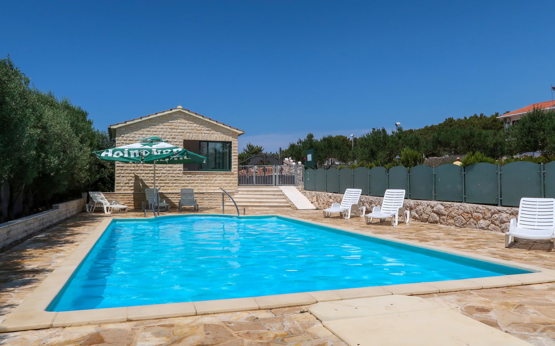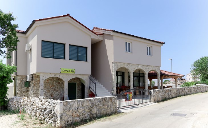 Holiday development "Camp Marko". 1 km from the centre of Rogoznica, 300 m from the sea, 300 m from the beach. For shared use: property 6'000 m2, swimming pool (10 x 5 m, depth 180 cm, seasonal availability: 21.May. - 01.Oct. pool opening hours: 10:00-18:00). Outdoor shower, barbecue. In the complex: restaurant, washing machine (for shared use). Parking on the premises. Shop 1 km, bus stop "Rogoznica" 2.4 km, rocky beach 300 m.