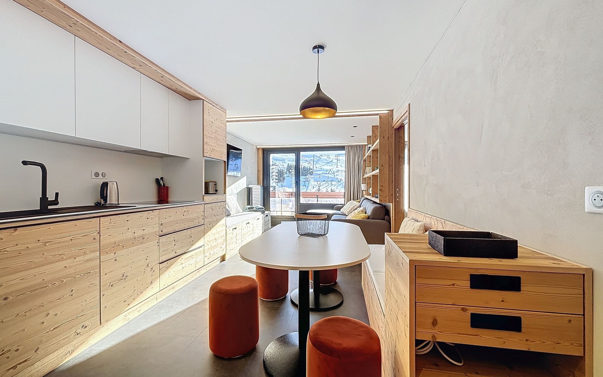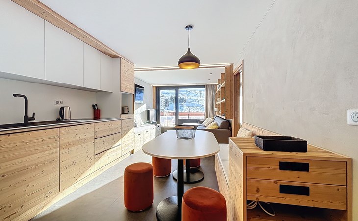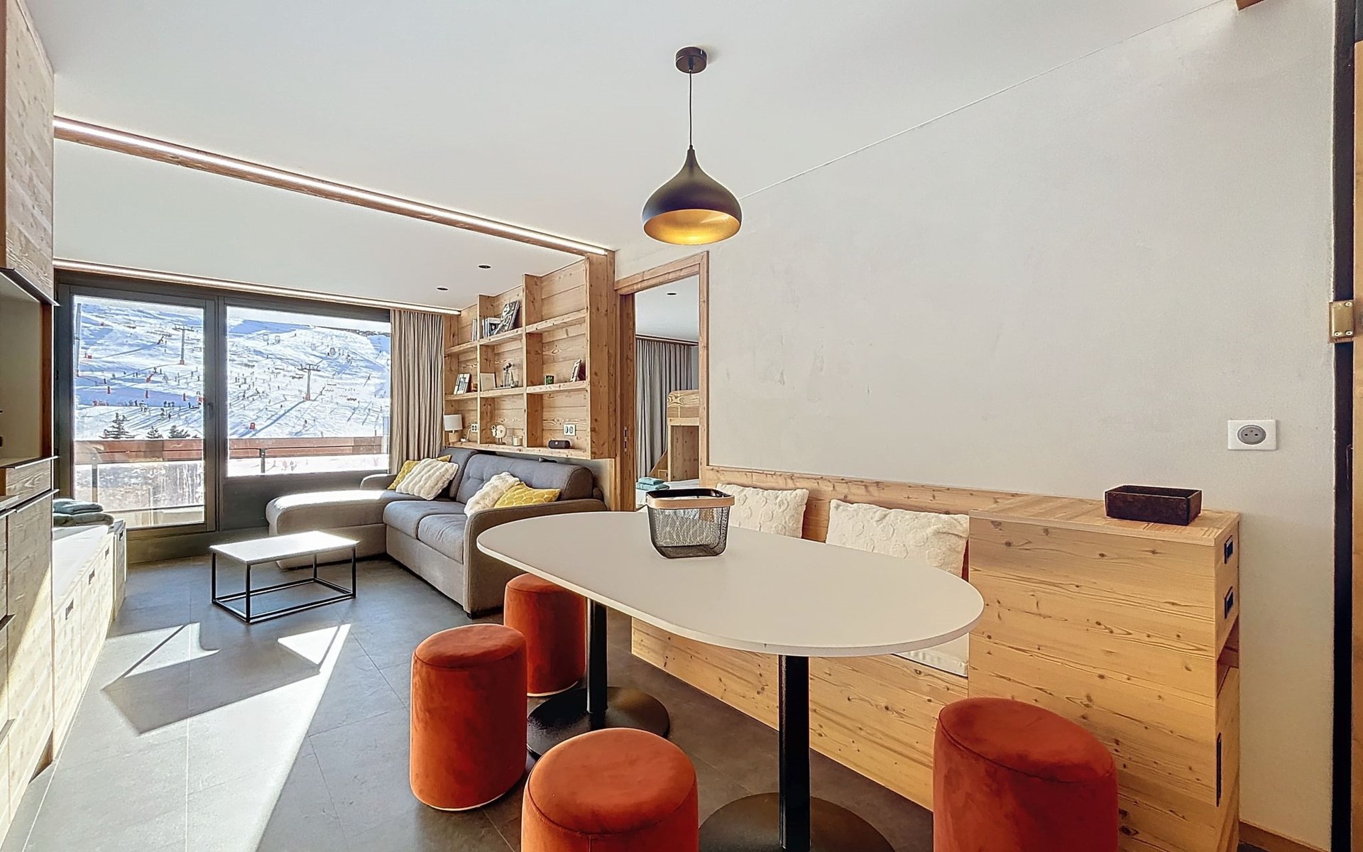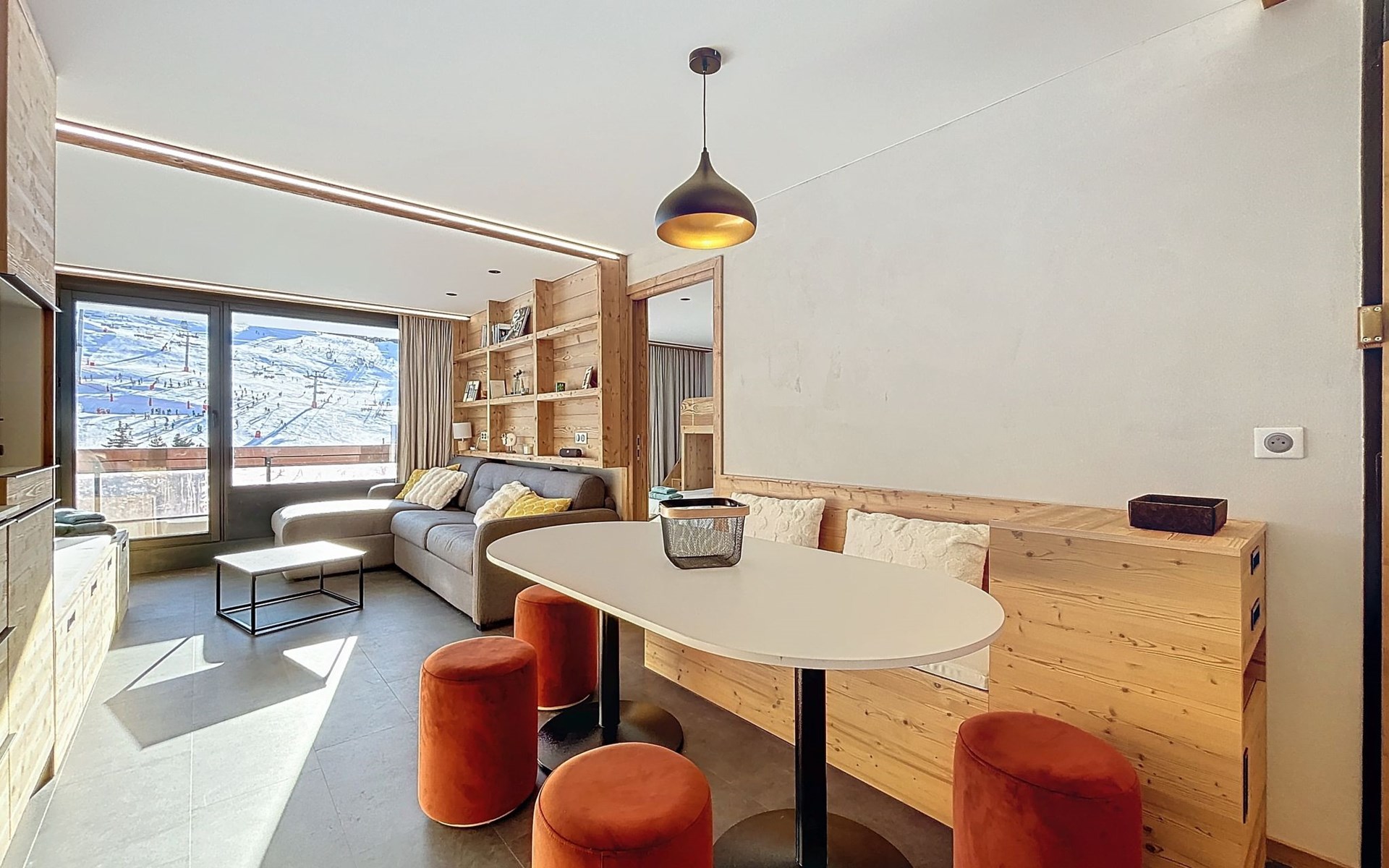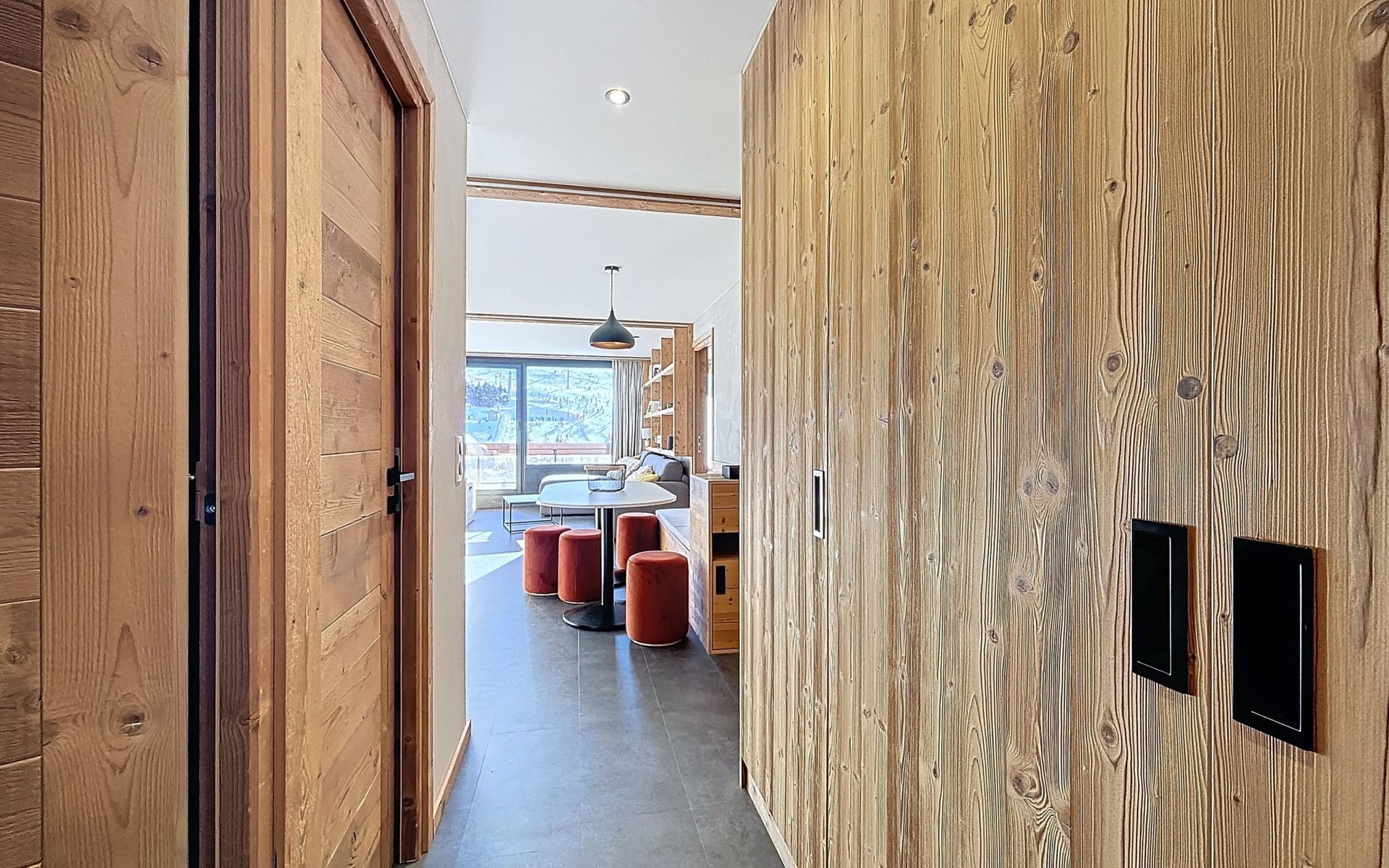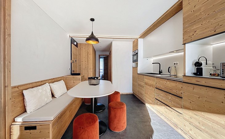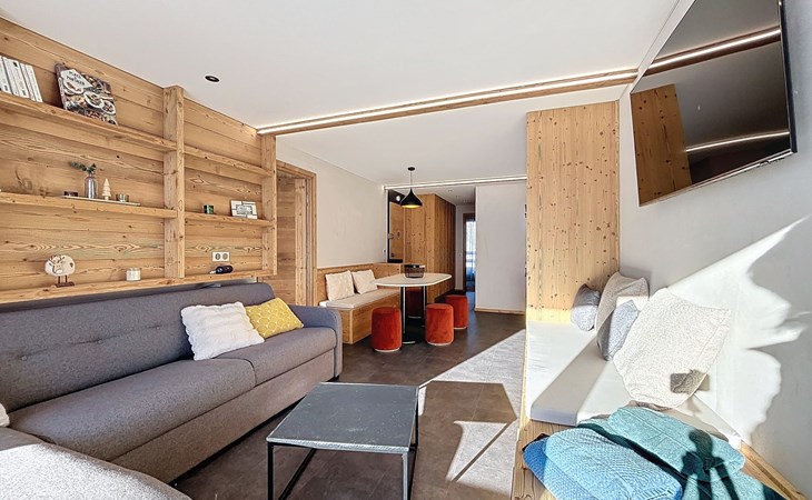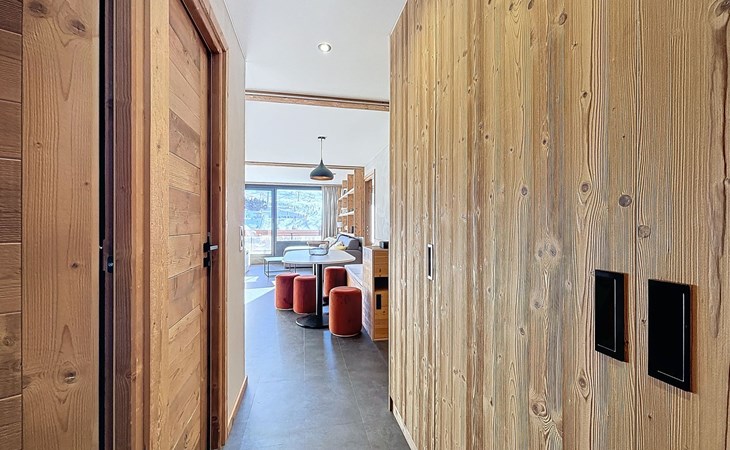 Small residence "Péclet La Croisette", 4 storeys. In the centre of La Croisette, in a central, busy position, directly by the skiing area. In the complex: lift, storage room for skis, central heating system. Shop, supermarket, shopping centre, restaurant, bakery 10 m, bus stop "Gare routière Les Menuires" 10 m. Sports centre 30 m, skisport facilities, slopes, ski rental, ski school 10 m, ski-kindergarten 50 m. Well-known ski regions can easily be reached: 3 Vallées 10 m.