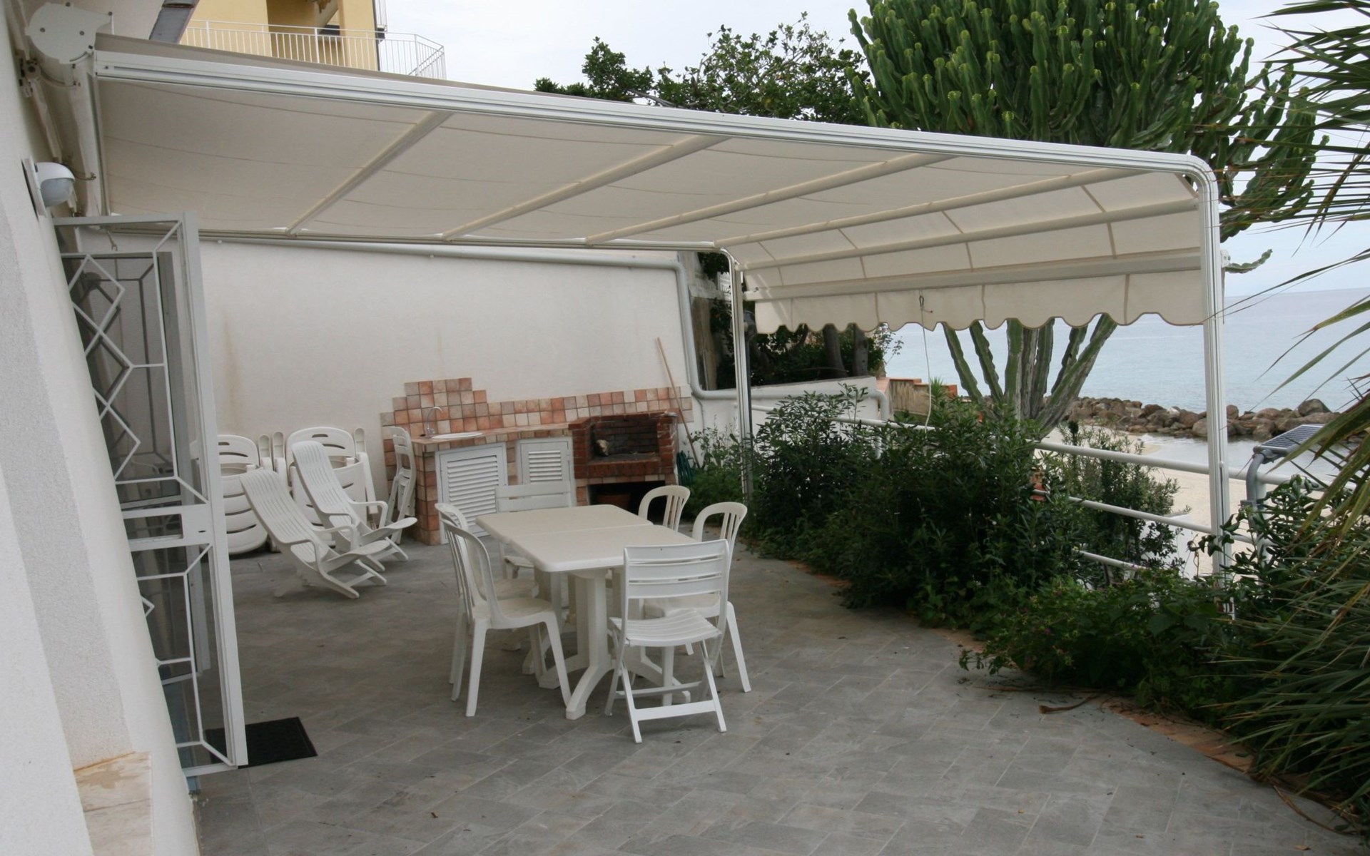 Another terrace, directly on the beach, shared with the other flats, equipped as a solarium with shower.
