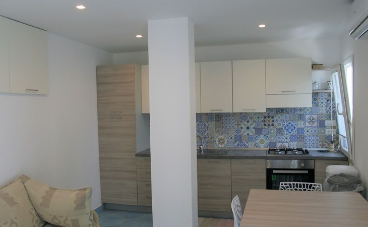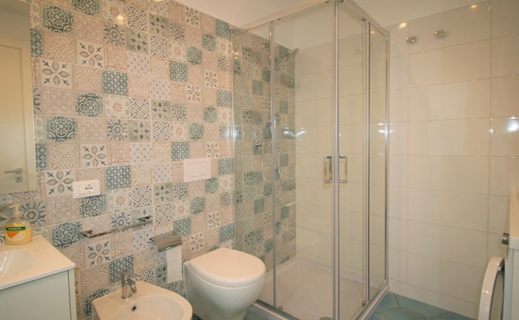 Also available, shared with the other flats, is a second terrace closer to the sea, equipped as a solarium and with a shower for after bathing and the possibility of storing bathing equipment.