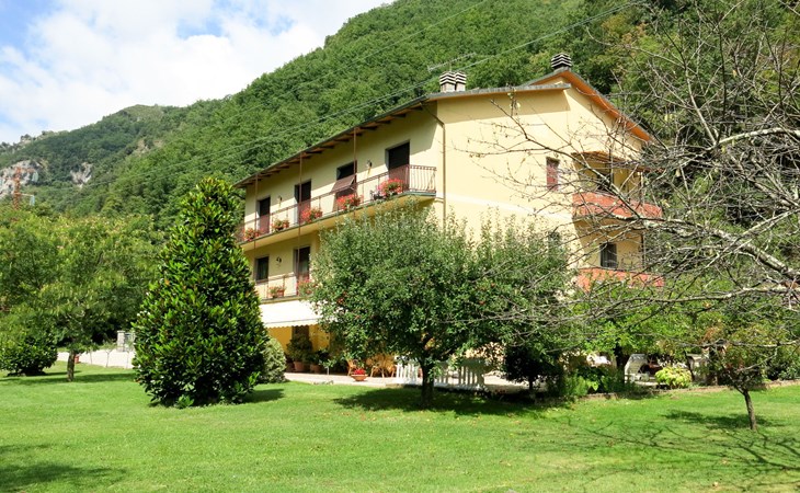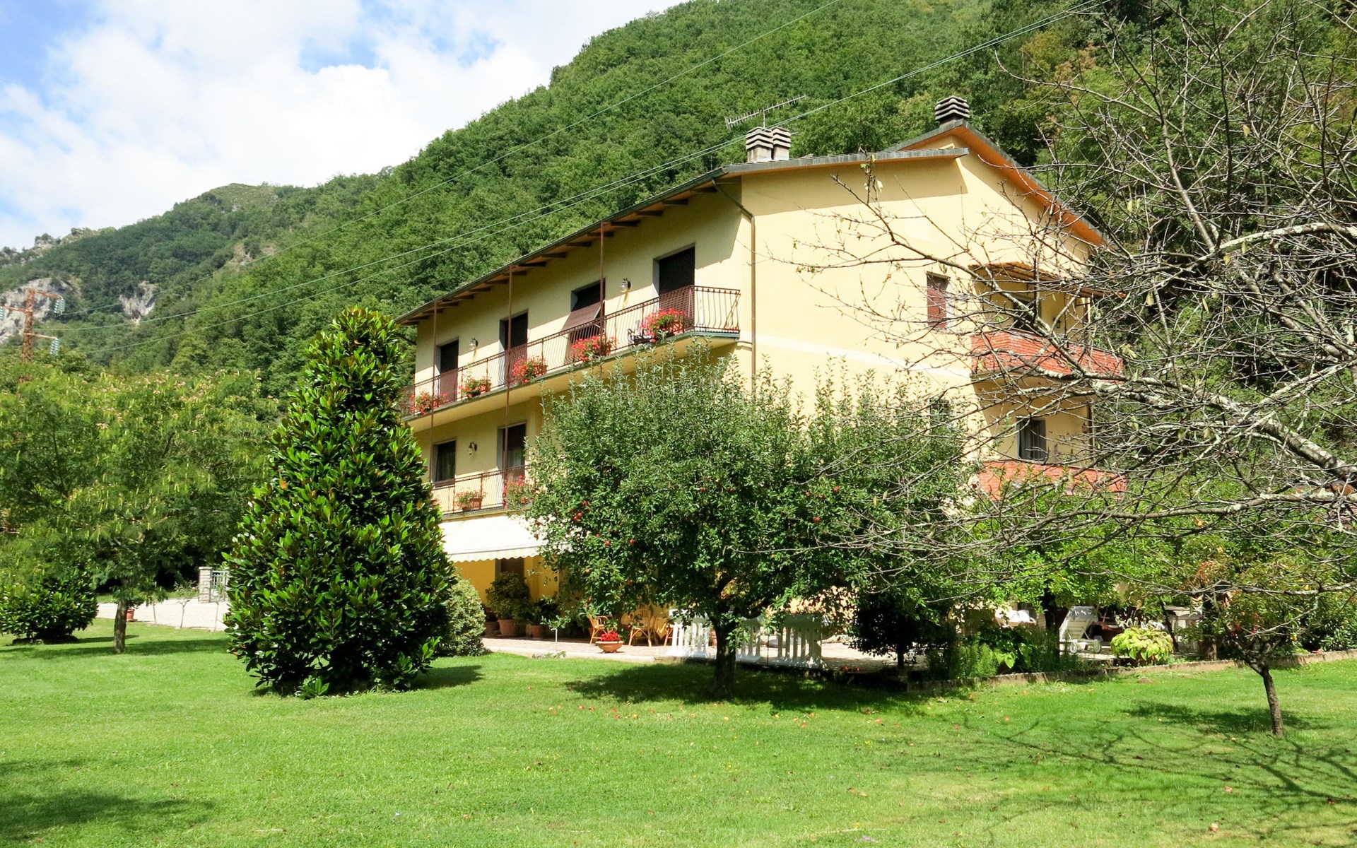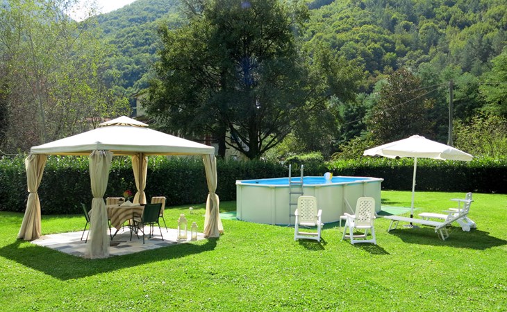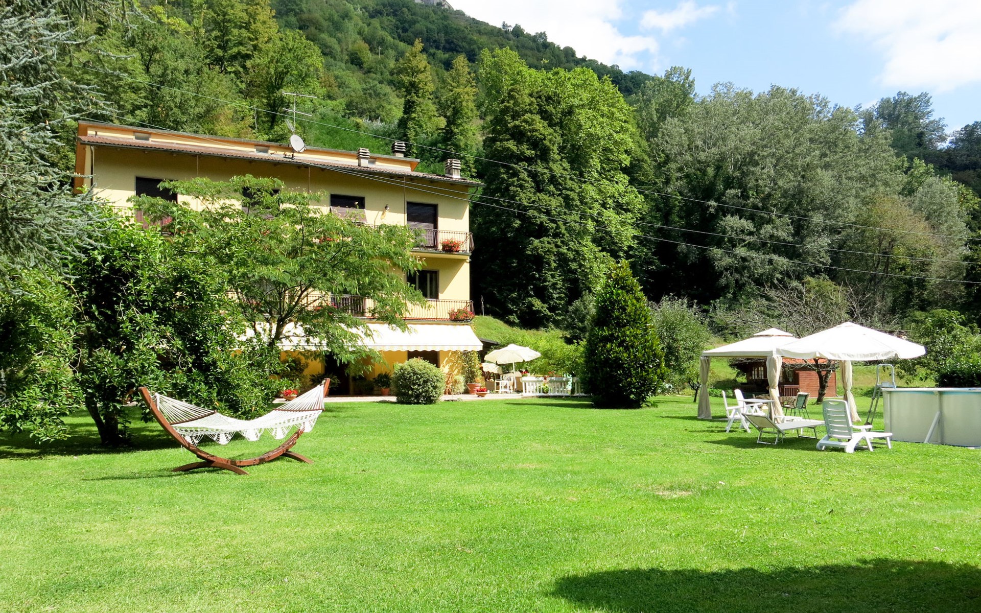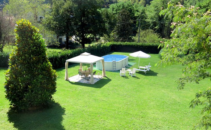 3-family house "Natalie", 250 m a.s.l.. 11 km from the centre of Bagni di Lucca, 40 km from the centre of Lucca, 56 km from the centre of Pisa, 64 km from the sea. For shared use: property 1 ha (fenced) with plants and trees, lawn for sunbathing, swimming pool (above ground) (6 x 3 m, depth 120 cm, seasonal availability: 15.May. - 20.Sep.). Pergola, garden furniture, barbecue, pool maintenance by the owner/gardener. Stepped path (20 steps) to the house. Parking on the premises. Shop 500 m, supermarket 11 km, bus stop 10 m. Please note: the owner lives in the same residence.