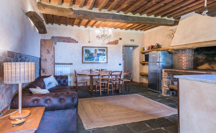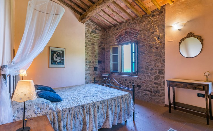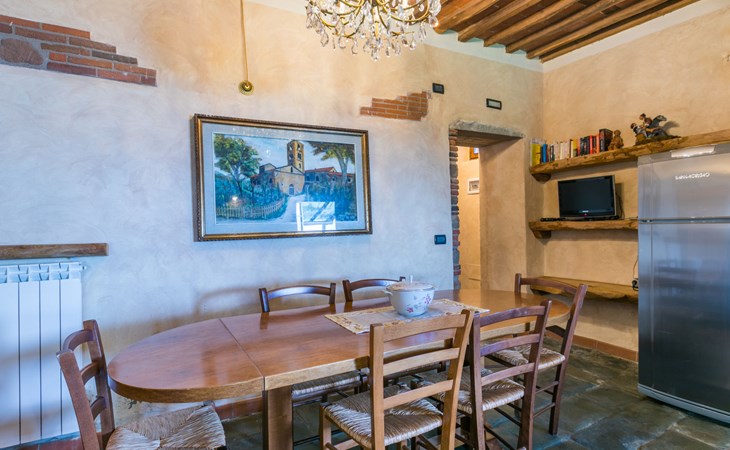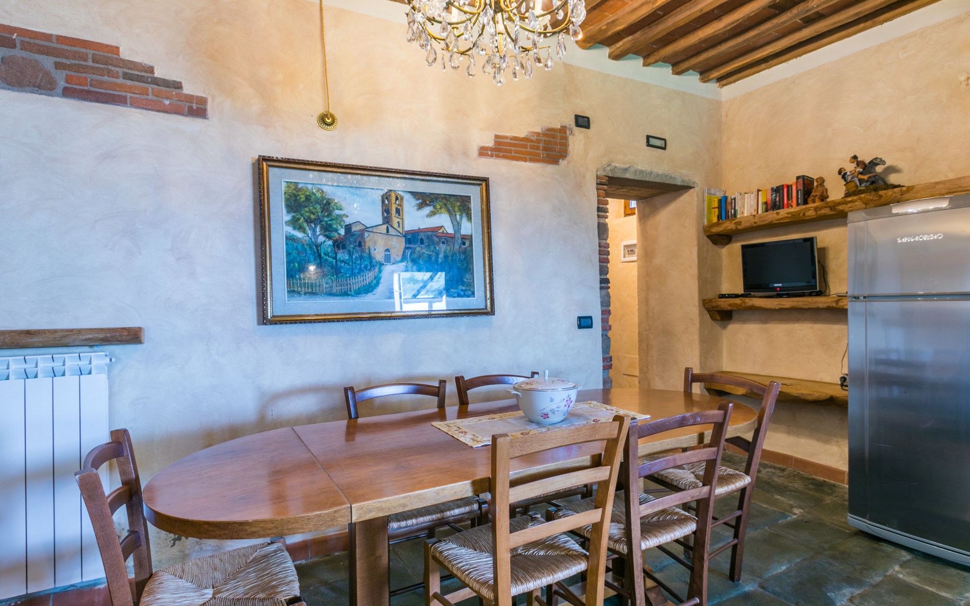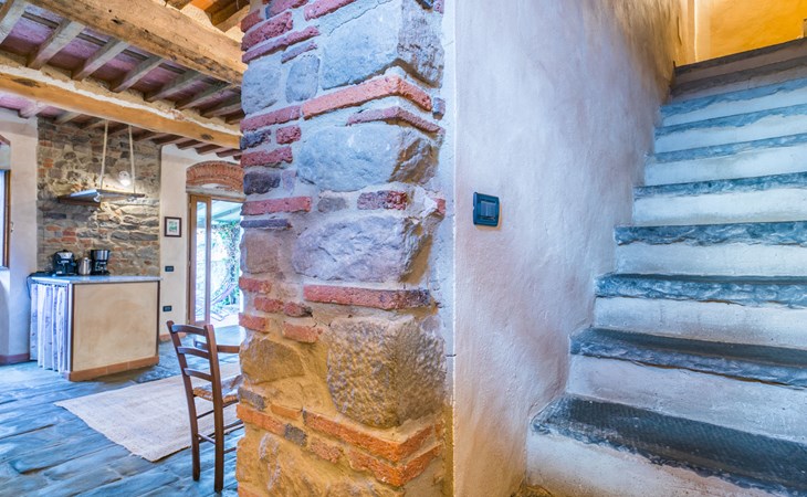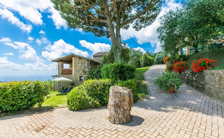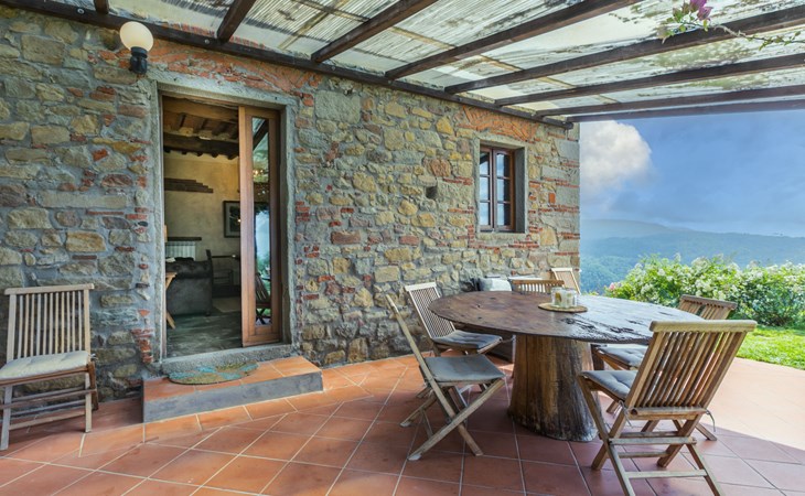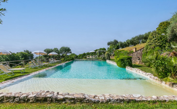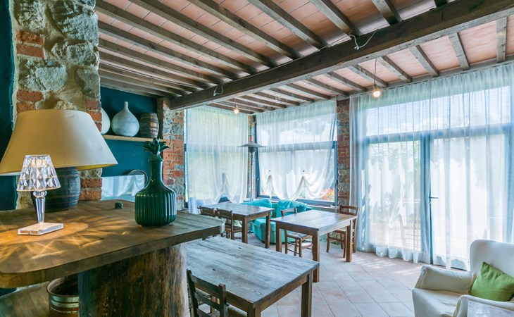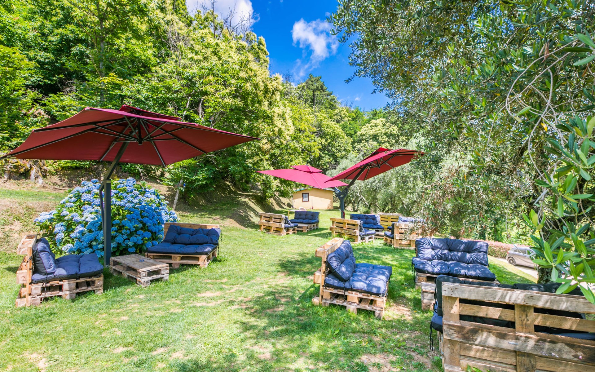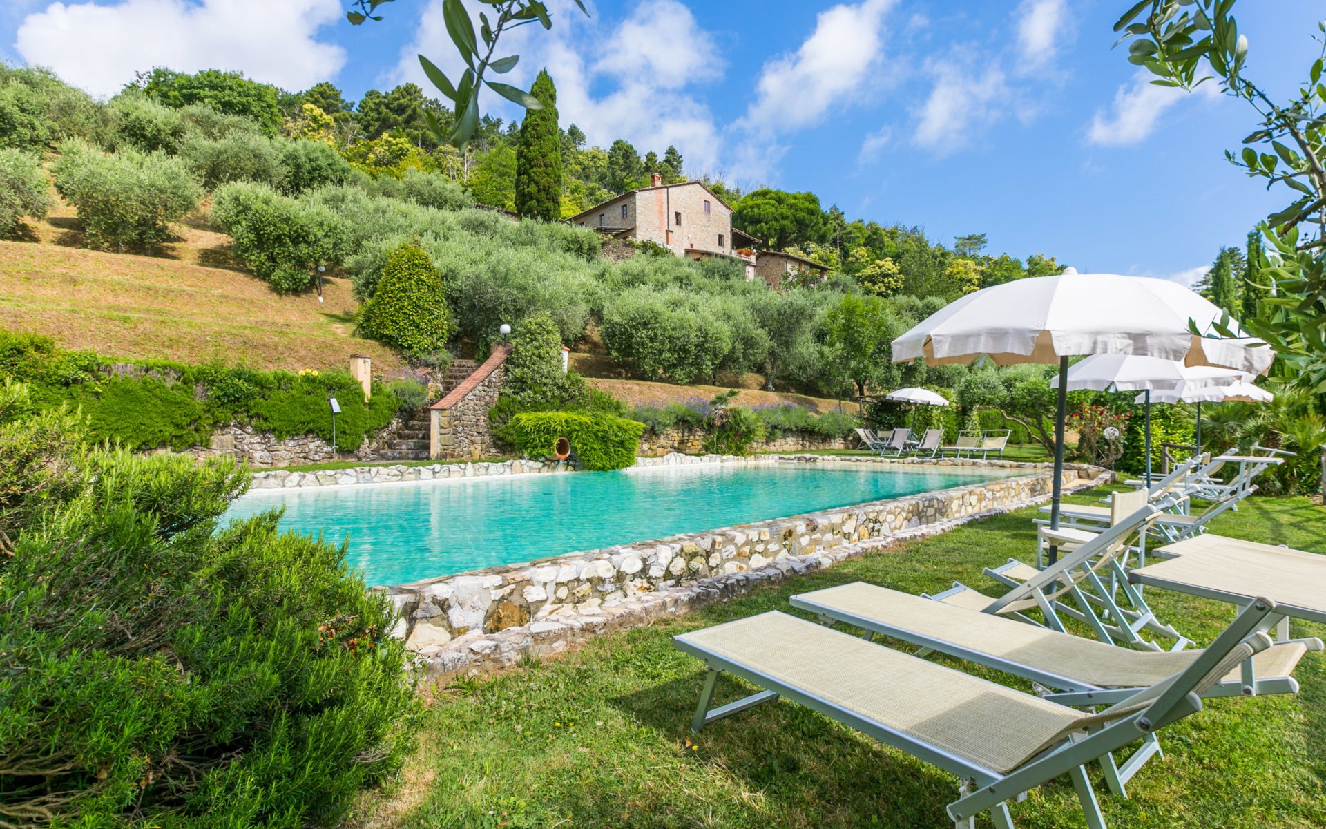 Agriturismo "La Cupola", 500 m a.s.l., surrounded by trees and vineyards. 3 houses in the residence. 4 apartments in the residence. 5.5 km from the centre of Pescia, 20 km from the centre of Lucca, 45 km from the centre of Pisa, in a secluded position on a slope, 57 km from the sea, in the countryside. For shared use: property 40'000 m2, terraced garden (not fenced) with plants, meadow, swimming pool (19 x 8 m, depth 120 - 160 cm, seasonal availability: 26.Apr. - 27.Sep.). Children's pool, pergola, garden furniture, barbecue. In the house: WiFi, central heating system, washing machine (for shared use), heating to be paid on the spot, heating available only from 01.Nov. - 30.Mar.. 600 m long steep motor access (via unmade road). Parking on the premises. E-charging station. Supermarket 5.5 km, bus stop 3 km, sandy beach "Viareggio" 57 km. Golf course (18 hole) 14 km. Nearby attractions: Collodi 9 km, Montecarlo 11 km, Montecatini Terme 13 km, Vinci, Pistoia 32 km, San Miniato 38 km. Residence with electric gates.