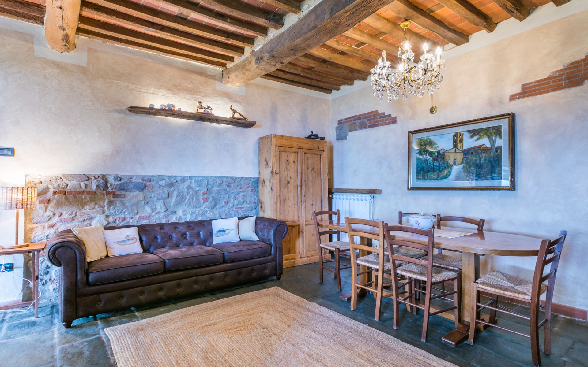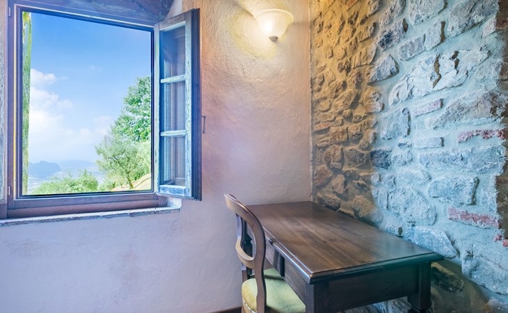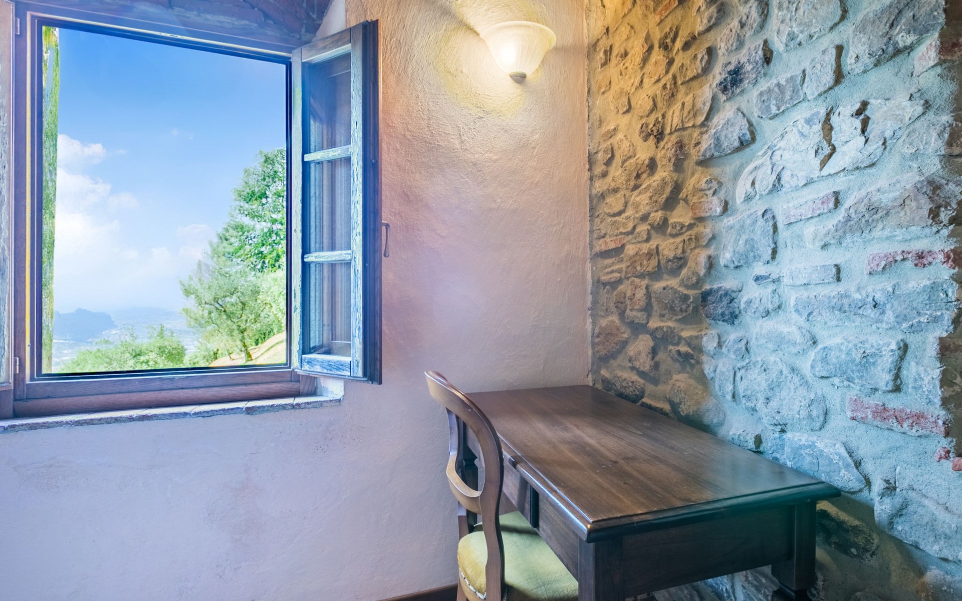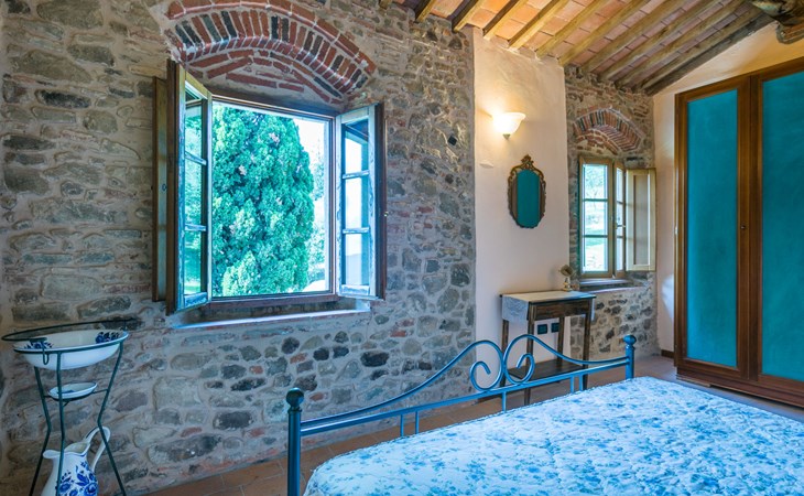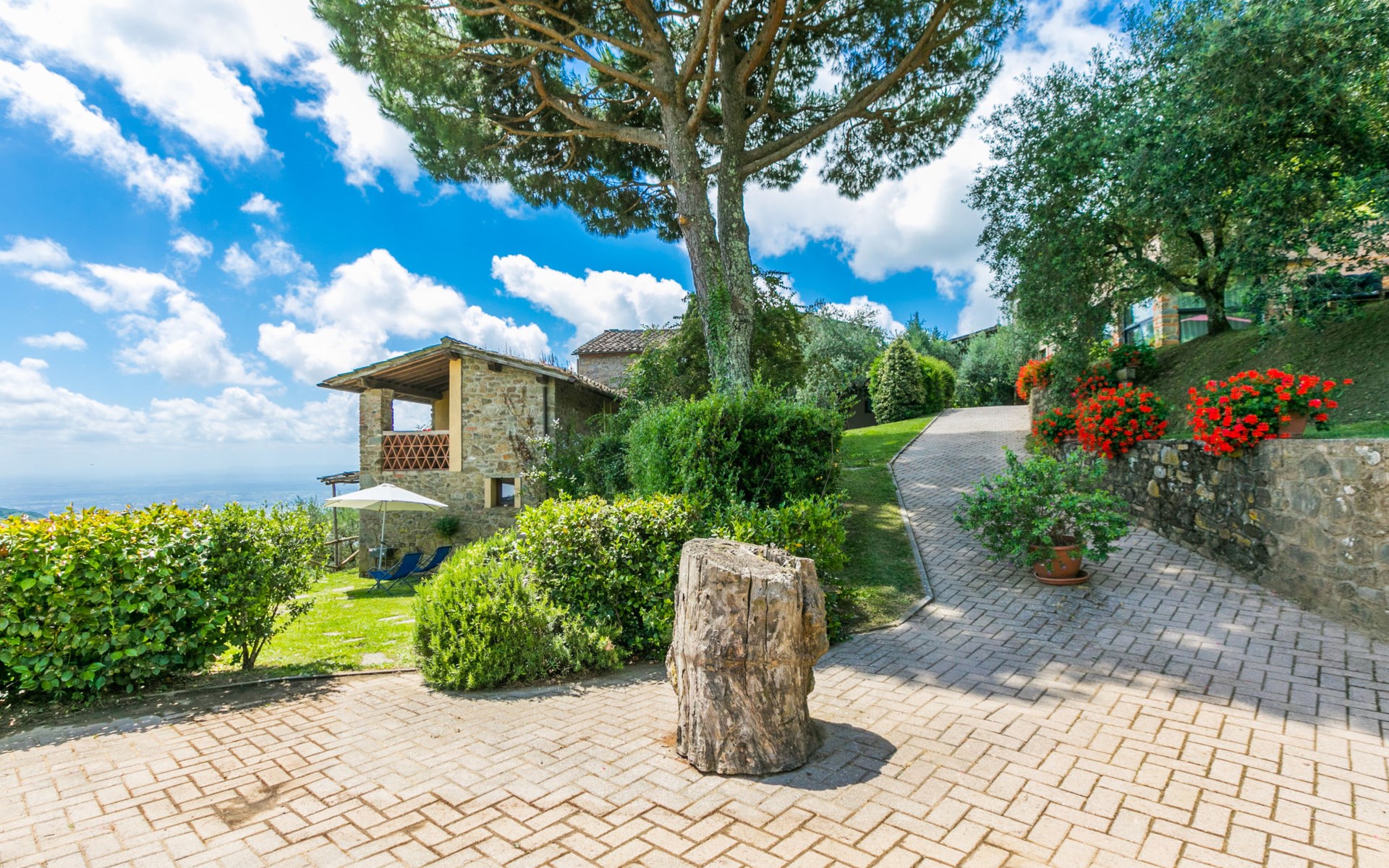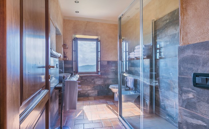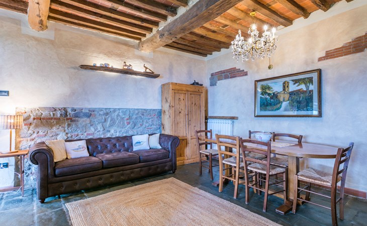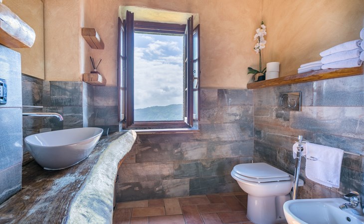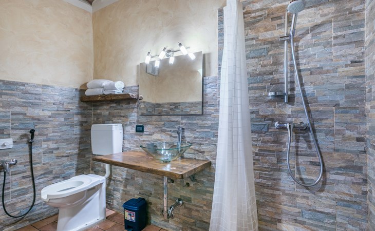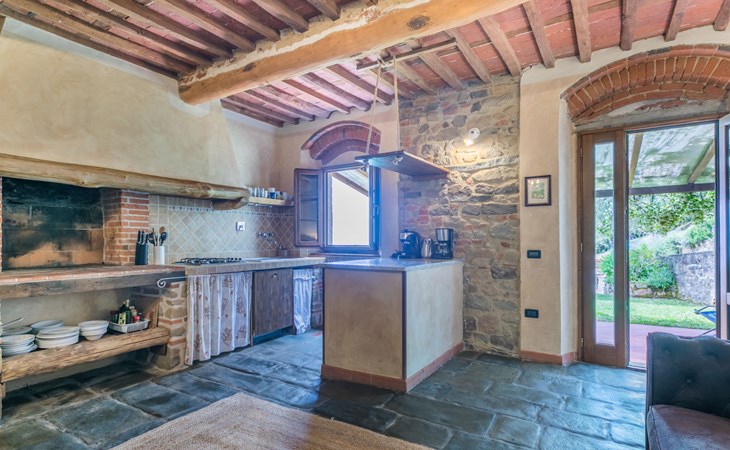 Agriturismo "La Cupola", 500 m a.s.l., surrounded by trees and vineyards. 3 houses in the residence. 4 apartments in the residence. 5.5 km from the centre of Pescia, 20 km from the centre of Lucca, 45 km from the centre of Pisa, in a secluded position on a slope, 57 km from the sea, in the countryside. For shared use: property 40'000 m2, terraced garden (not fenced) with plants, meadow, swimming pool (19 x 8 m, depth 120 - 160 cm, seasonal availability: 26.Apr. - 27.Sep.). Children's pool, pergola, garden furniture, barbecue. In the house: WiFi, central heating system, washing machine (for shared use), heating to be paid on the spot, heating available only from 01.Nov. - 30.Mar.. 600 m long steep motor access (via unmade road). Parking on the premises. E-charging station. Supermarket 5.5 km, bus stop 3 km, sandy beach "Viareggio" 57 km. Golf course (18 hole) 14 km. Nearby attractions: Collodi 9 km, Montecarlo 11 km, Montecatini Terme 13 km, Vinci, Pistoia 32 km, San Miniato 38 km. Residence with electric gates.