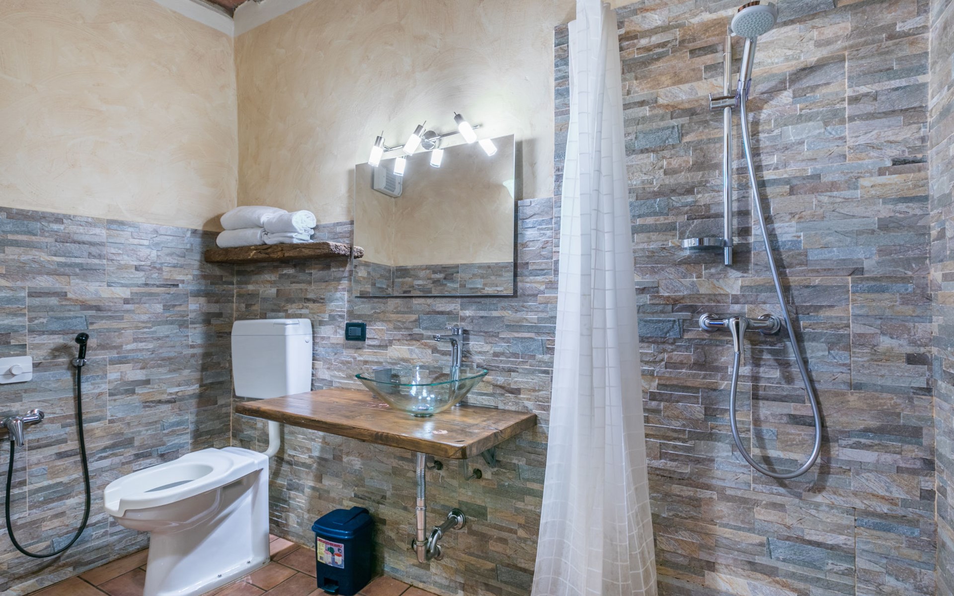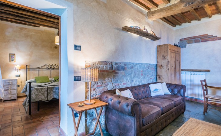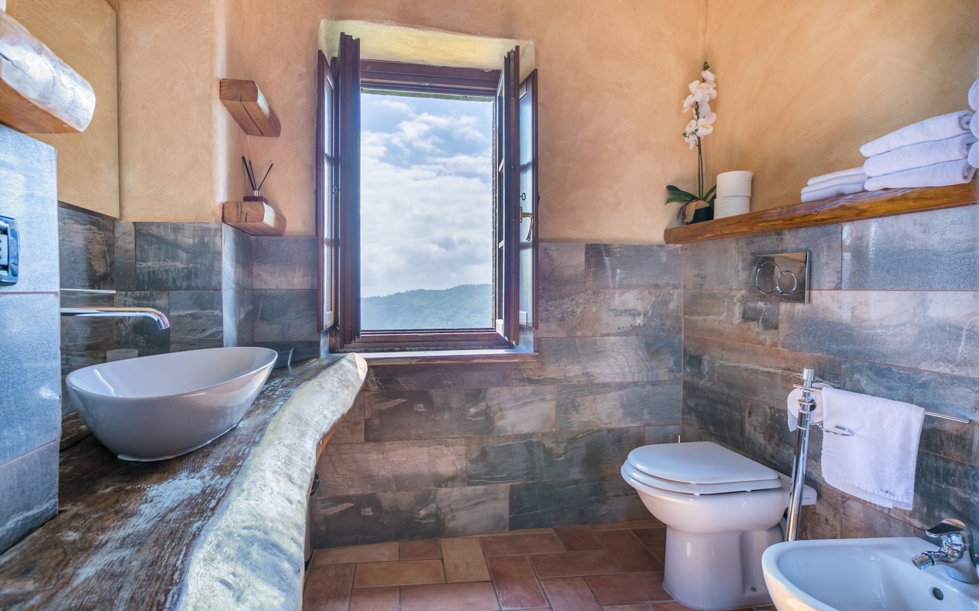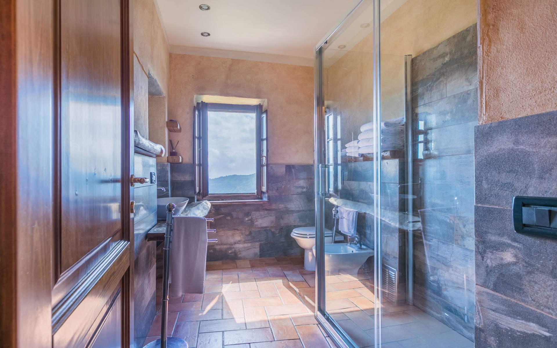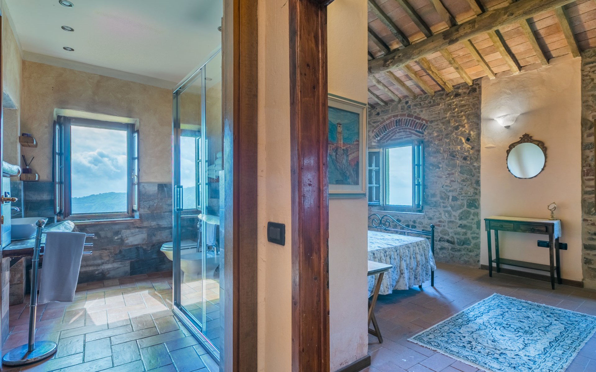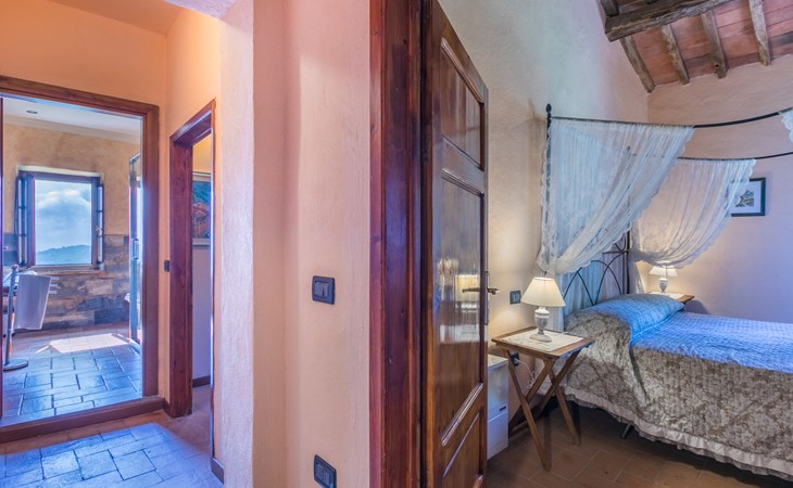 Agriturismo "La Cupola", 500 m a.s.l., surrounded by trees and vineyards. 3 houses in the residence. 4 apartments in the residence. 5.5 km from the centre of Pescia, 20 km from the centre of Lucca, 45 km from the centre of Pisa, in a secluded position on a slope, 57 km from the sea, in the countryside. For shared use: property 40'000 m2, terraced garden (not fenced) with plants, meadow, swimming pool (19 x 8 m, depth 120 - 160 cm, seasonal availability: 26.Apr. - 27.Sep.). Children's pool, pergola, garden furniture, barbecue. In the house: WiFi, central heating system, washing machine (for shared use), heating to be paid on the spot, heating available only from 01.Nov. - 30.Mar.. 600 m long steep motor access (via unmade road). Parking on the premises. E-charging station. Supermarket 5.5 km, bus stop 3 km, sandy beach "Viareggio" 57 km. Golf course (18 hole) 14 km. Nearby attractions: Collodi 9 km, Montecarlo 11 km, Montecatini Terme 13 km, Vinci, Pistoia 32 km, San Miniato 38 km. Residence with electric gates.