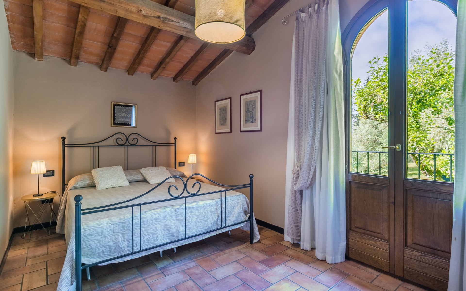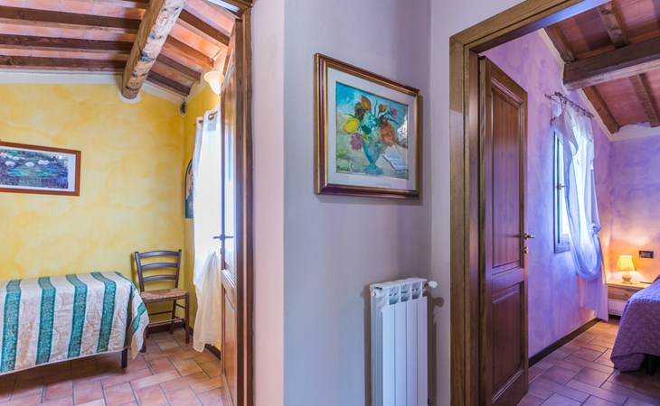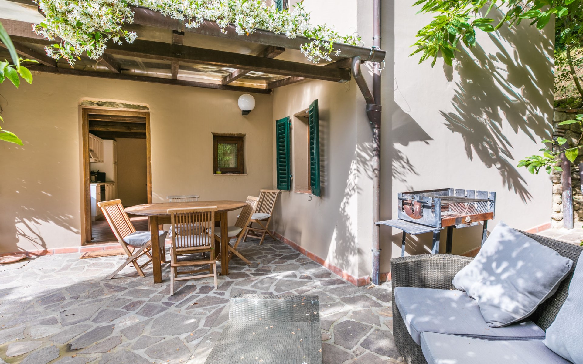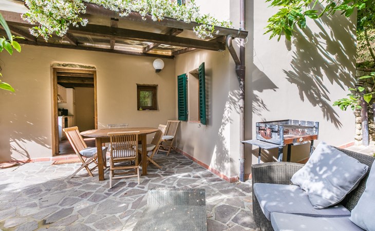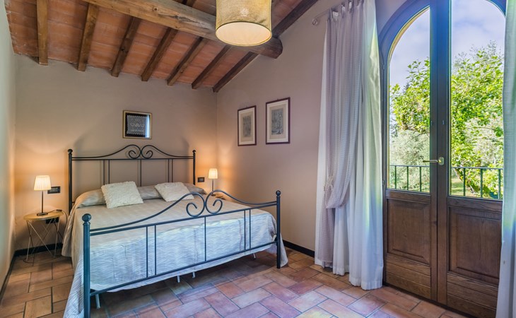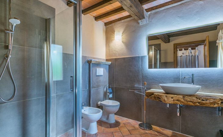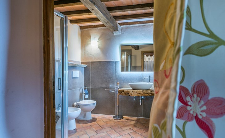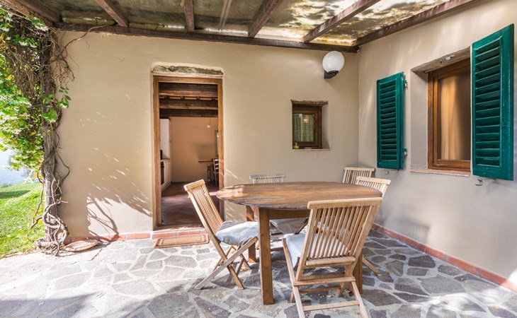 Agriturismo "La Cupola", 500 m a.s.l., surrounded by trees and vineyards. 3 houses in the residence. 4 apartments in the residence. 5.5 km from the centre of Pescia, 20 km from the centre of Lucca, 45 km from the centre of Pisa, in a secluded position on a slope, 57 km from the sea, in the countryside. For shared use: property 40'000 m2, terraced garden (not fenced) with plants, meadow, swimming pool (19 x 8 m, depth 120 - 160 cm, seasonal availability: 26.Apr. - 27.Sep.). Children's pool, pergola, garden furniture, barbecue. In the house: WiFi, central heating system, washing machine (for shared use), heating to be paid on the spot, heating available only from 01.Nov. - 30.Mar.. 600 m long steep motor access (via unmade road). Parking on the premises. E-charging station. Supermarket 5.5 km, bus stop 3 km, sandy beach "Viareggio" 57 km. Golf course (18 hole) 14 km. Nearby attractions: Collodi 9 km, Montecarlo 11 km, Montecatini Terme 13 km, Vinci, Pistoia 32 km, San Miniato 38 km. Residence with electric gates.