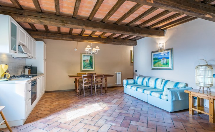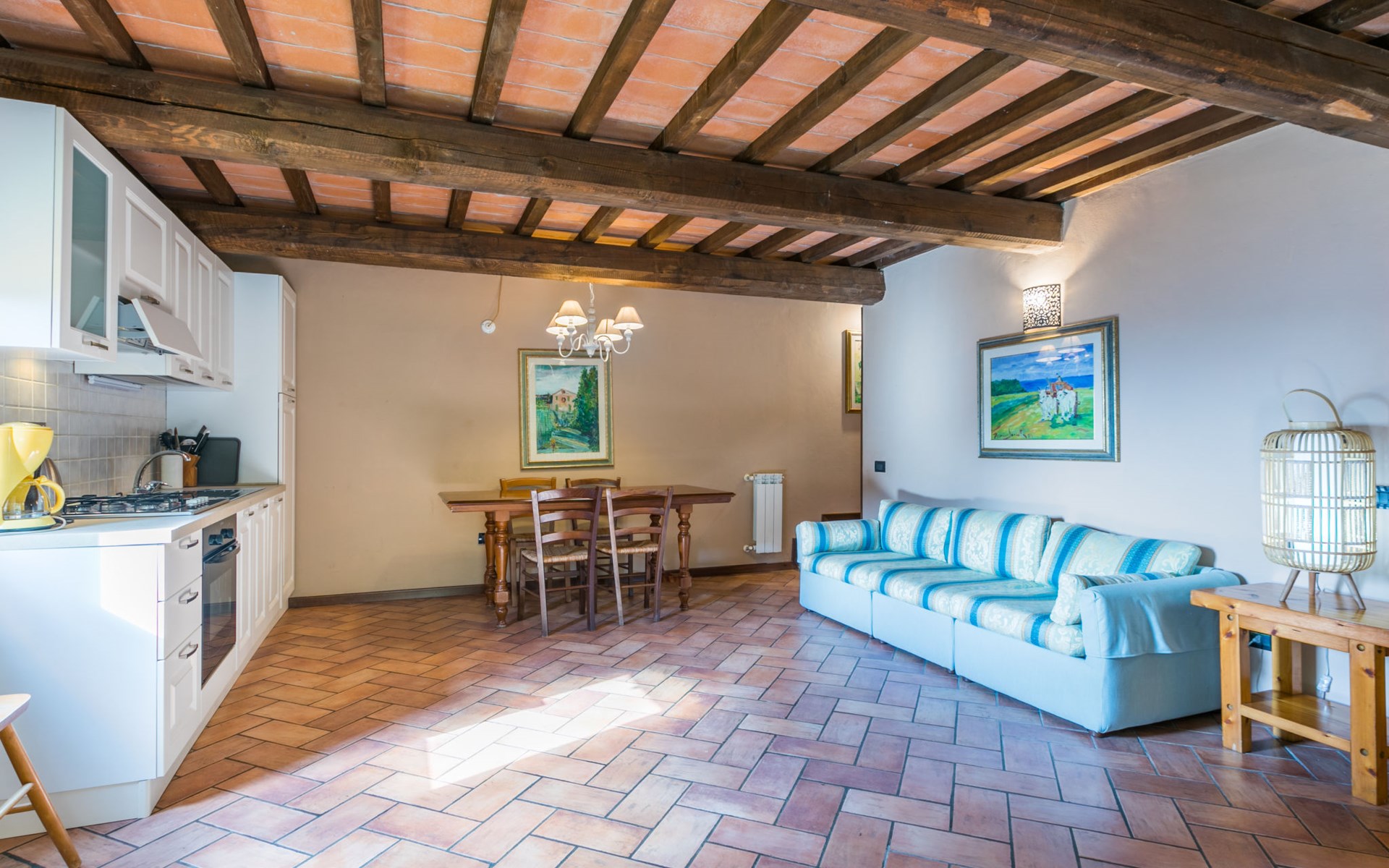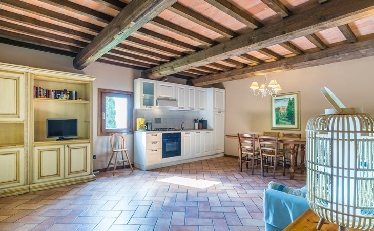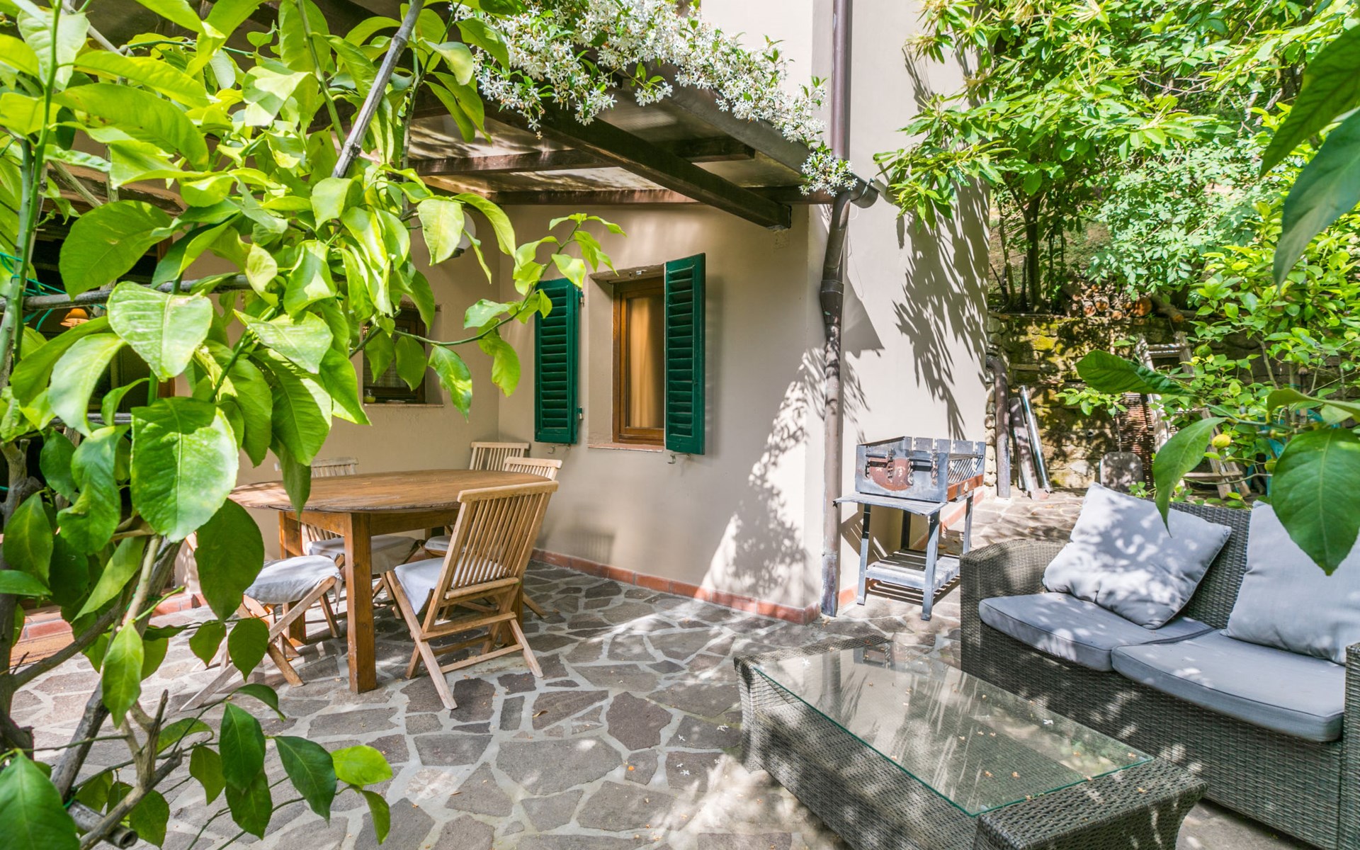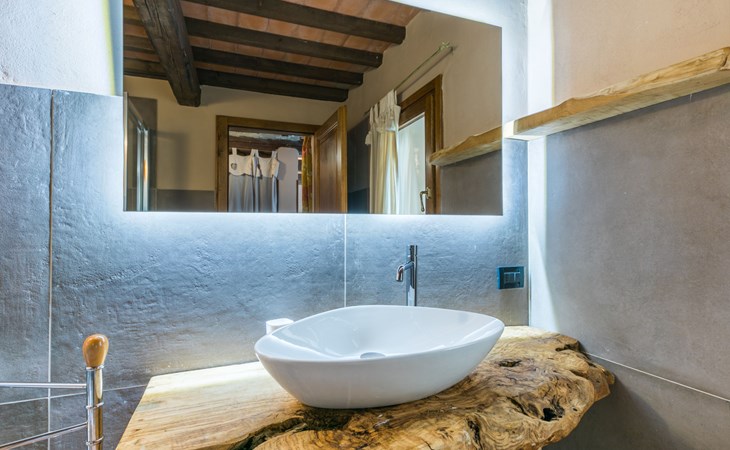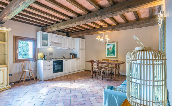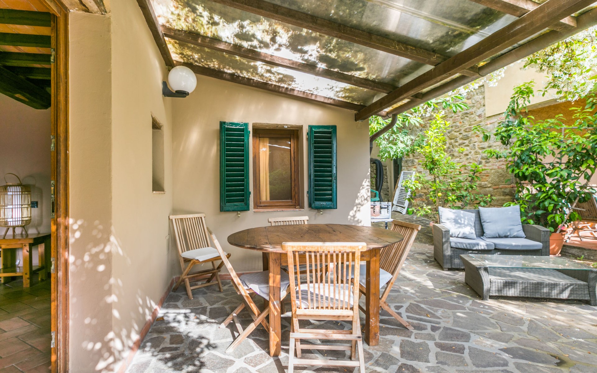 Agriturismo "La Cupola", 500 m a.s.l., surrounded by trees and vineyards. 3 houses in the residence. 4 apartments in the residence. 5.5 km from the centre of Pescia, 20 km from the centre of Lucca, 45 km from the centre of Pisa, in a secluded position on a slope, 57 km from the sea, in the countryside. For shared use: property 40'000 m2, terraced garden (not fenced) with plants, meadow, swimming pool (19 x 8 m, depth 120 - 160 cm, seasonal availability: 26.Apr. - 27.Sep.). Children's pool, pergola, garden furniture, barbecue. In the house: WiFi, central heating system, washing machine (for shared use), heating to be paid on the spot, heating available only from 01.Nov. - 30.Mar.. 600 m long steep motor access (via unmade road). Parking on the premises. E-charging station. Supermarket 5.5 km, bus stop 3 km, sandy beach "Viareggio" 57 km. Golf course (18 hole) 14 km. Nearby attractions: Collodi 9 km, Montecarlo 11 km, Montecatini Terme 13 km, Vinci, Pistoia 32 km, San Miniato 38 km. Residence with electric gates.