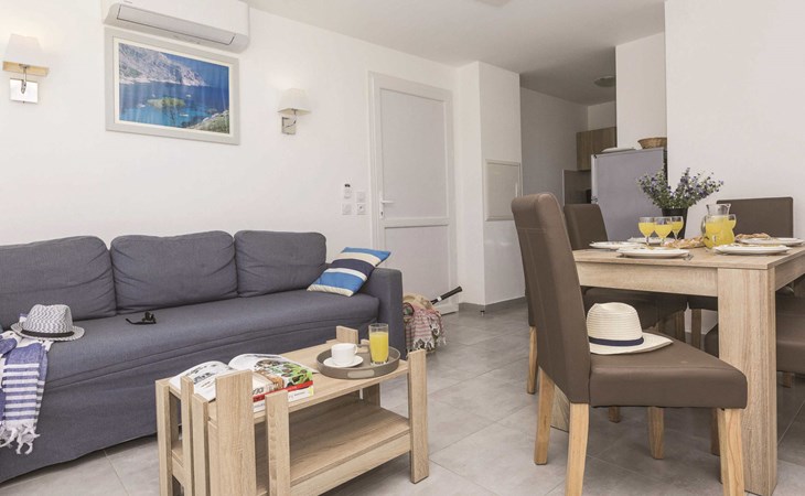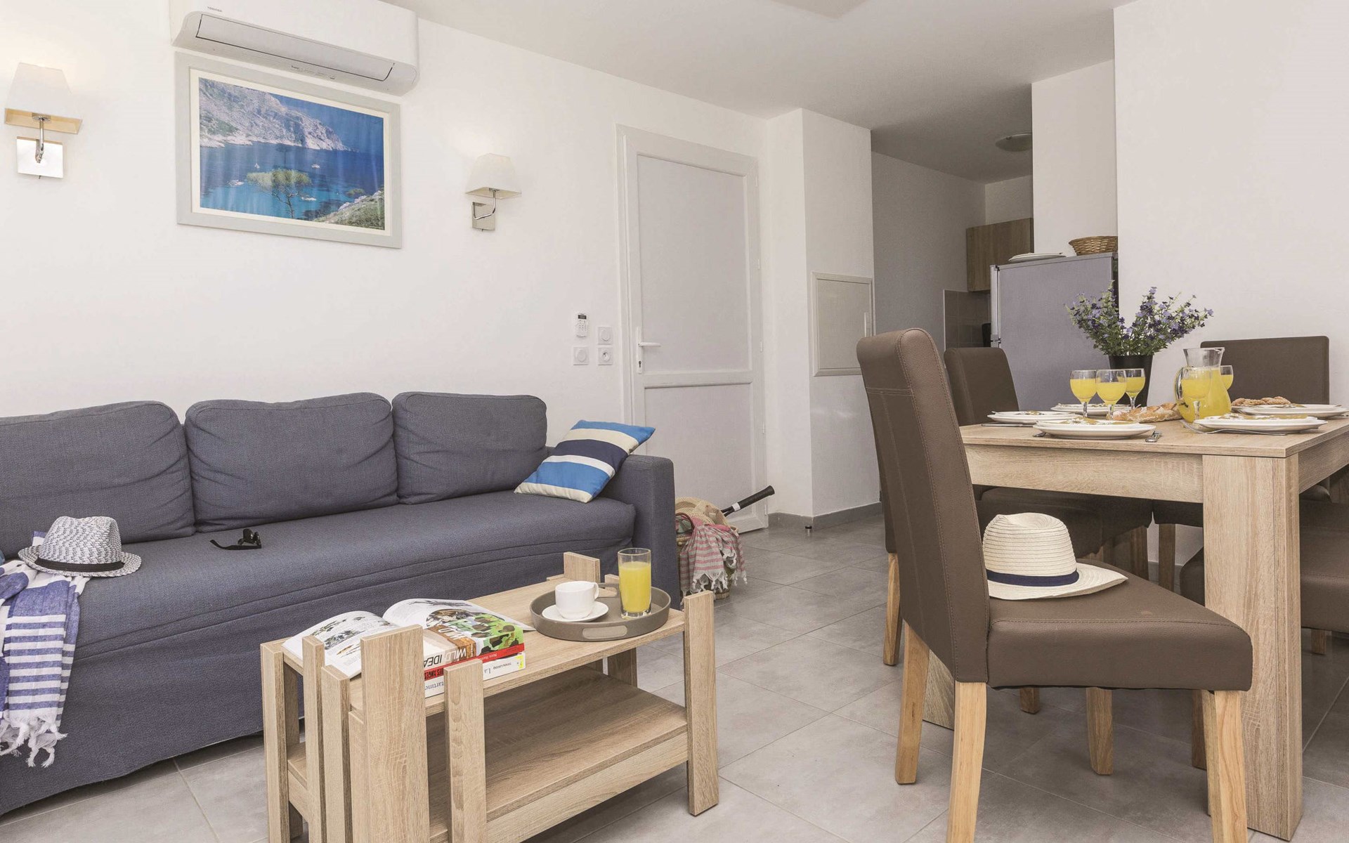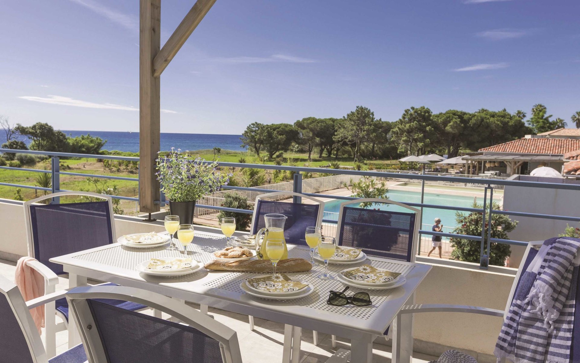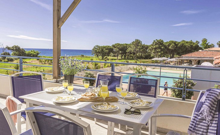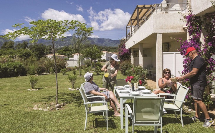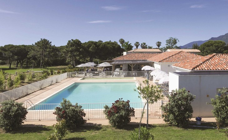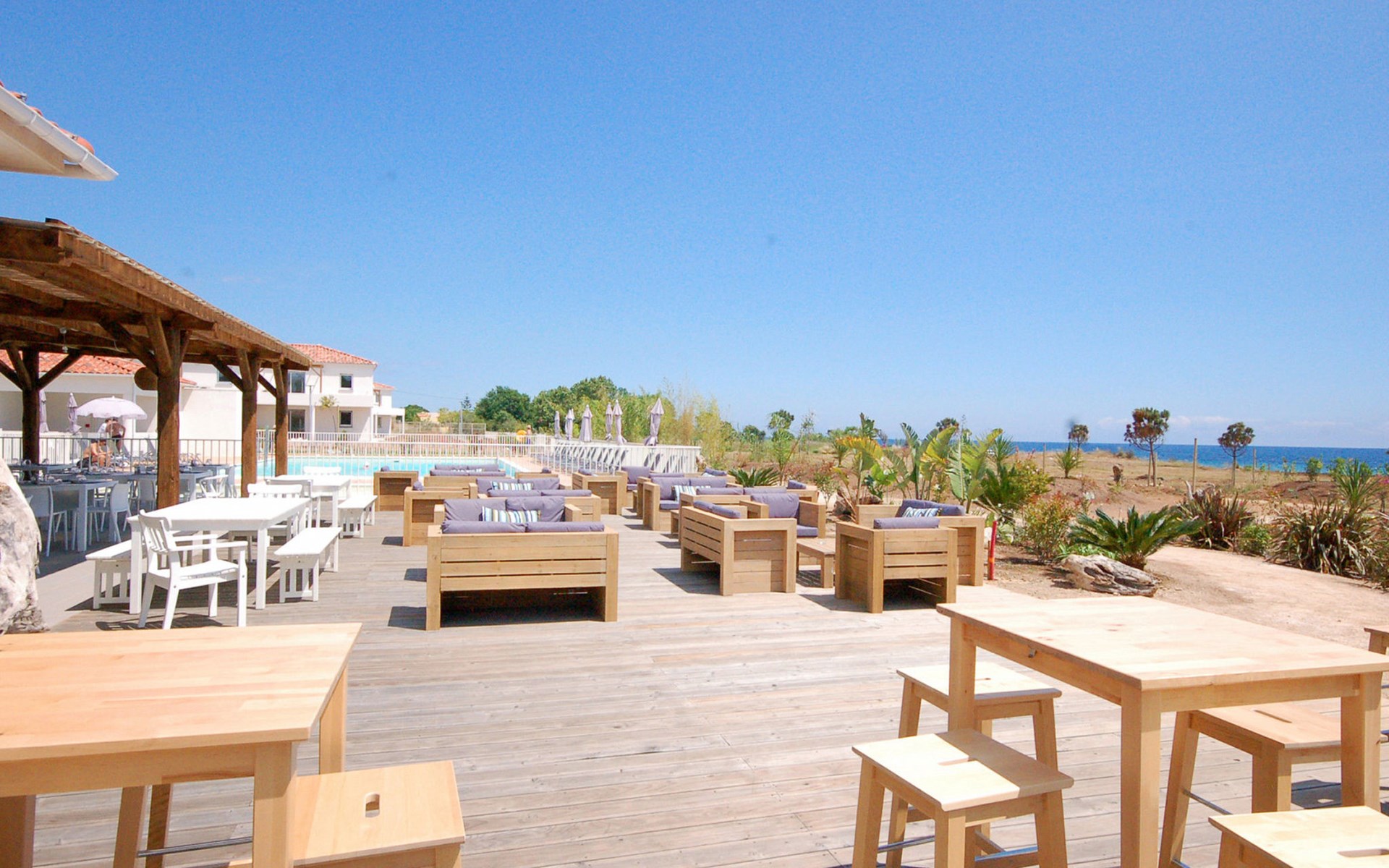 Resort "Acqua Bella/Acqua Linda", 2 storeys. 33 houses in the resort. 273 apartments in the residence. In the hamlet L'Avillanella 3 km from the centre of Moriani-Plage, on the outskirts, 8 km from the centre of Folelli, 38 km from the centre of Bastia, in the residential district, 150 m from the sea, 150 m from the beach, direct access to the beach. For shared use: large garden with lawn and plants, 2 swimming pools fenced (20 x 12 m, seasonal availability: 15.Apr. - 15.Sep.). Children's pool, boccia, children's playground. In the complex: reception, restaurant, WiFi, washing machine (for shared use, extra). Parking. Shop 6.7 km, supermarket 3 km, bus stop "Moriani, Office de Tourisme" 2.5 km, sandy beach 150 m. Golf course 21 km. Nearby attractions: Village pittoresque de Poggio Mezzana, Randonnées, Parapente, Canyoning, Activités nautiques. Please note: the photograph shows a typical example. The holiday properties may differ in living space, floorplan, equipment and furnishing. Wifi available only at the reception.