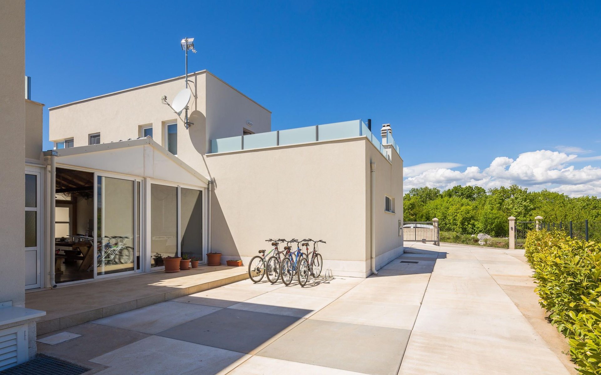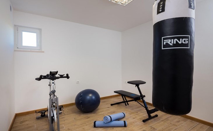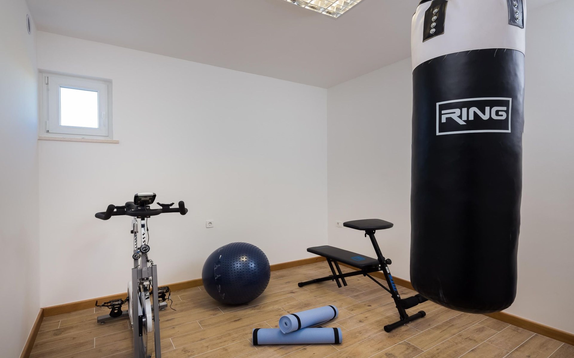 There is also a little gym. From the play room you can enter the two terraces, one with wooden floors and a jacuzzi and other is ideal for sunbathing and enjoying a view on a sunset and idyllic green hills. Respecting villas site, each space here has positioned to share unique view of the pool and nature sights. There is a large parking space for more than 8 cars.