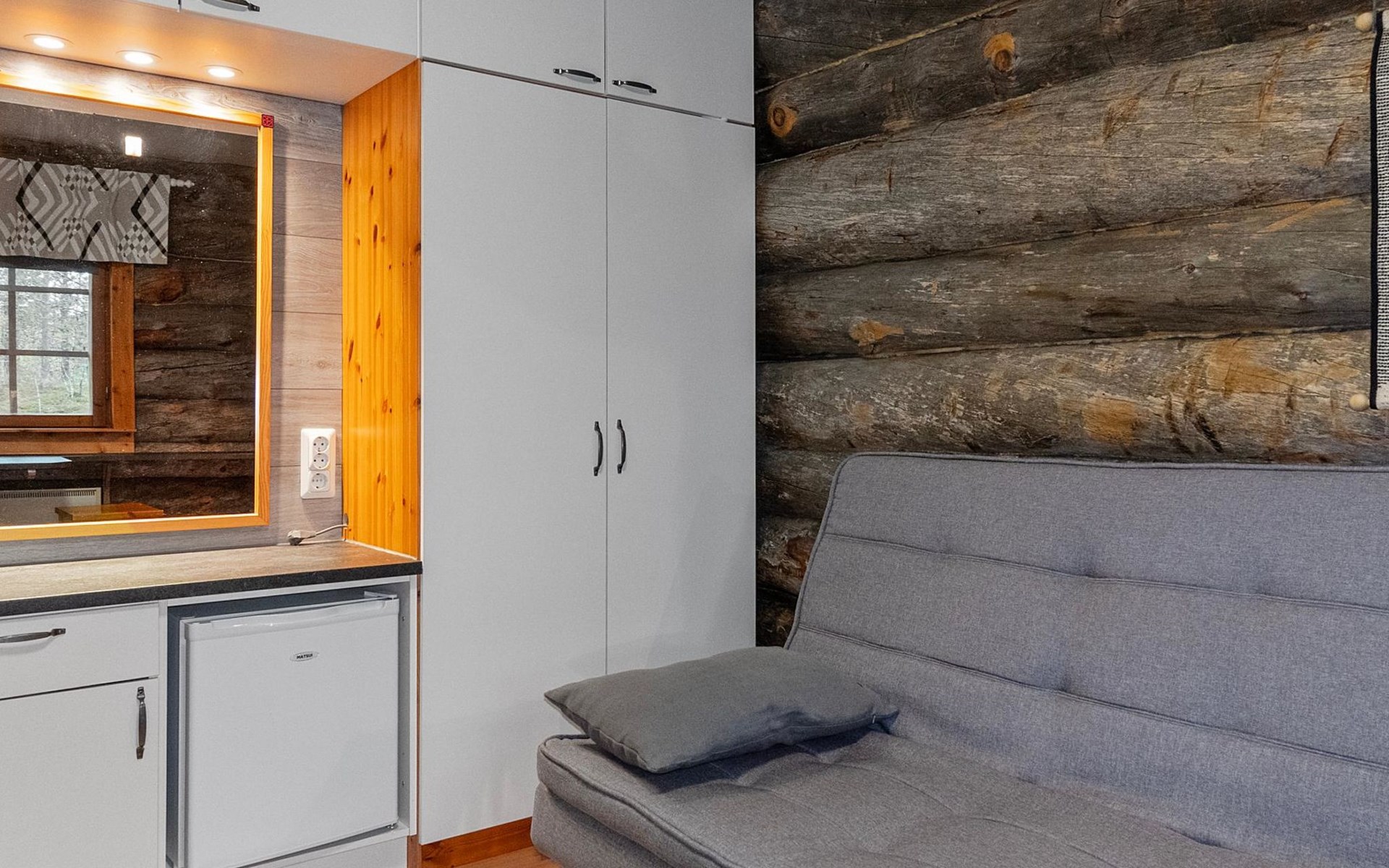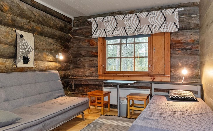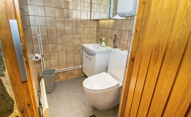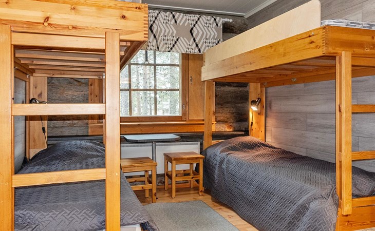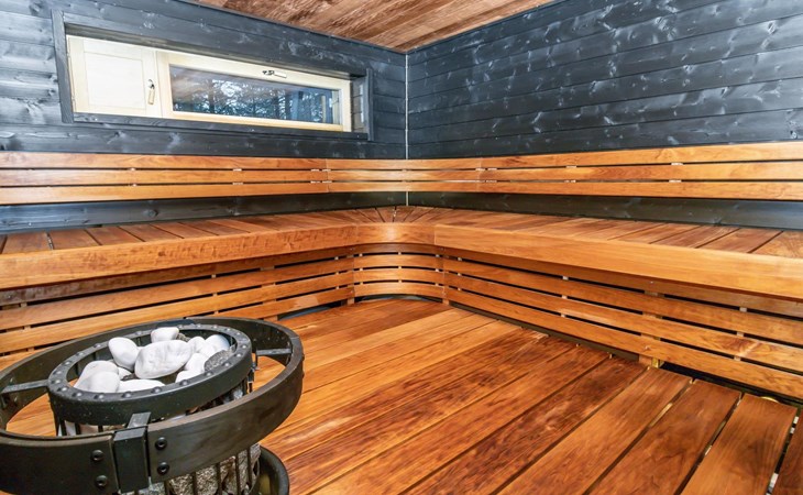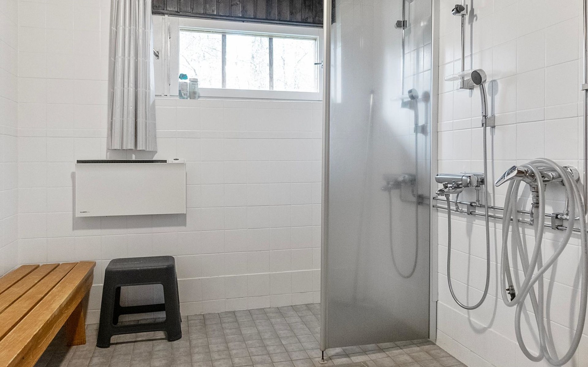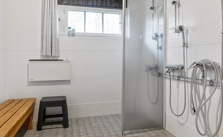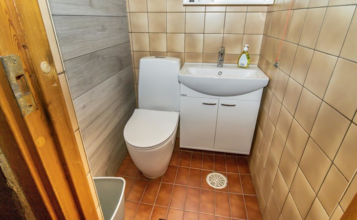 The cabin offers excellent kitchen, dining, and cold storage facilities. There are separate living and fireplace rooms, each with own fireplace and TV. Spacious sauna area with timer-controlled electric sauna stove is also available. Four WCs, one includes a shower cubicle. Technical room with two electric drying cabinets, drying rack, washing machine, and tumble dryer.
